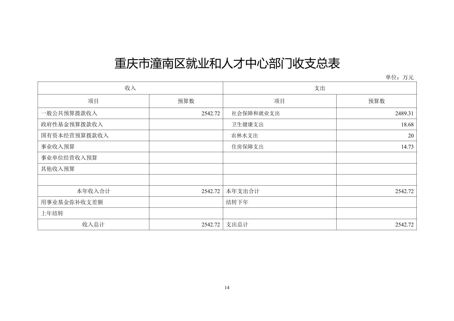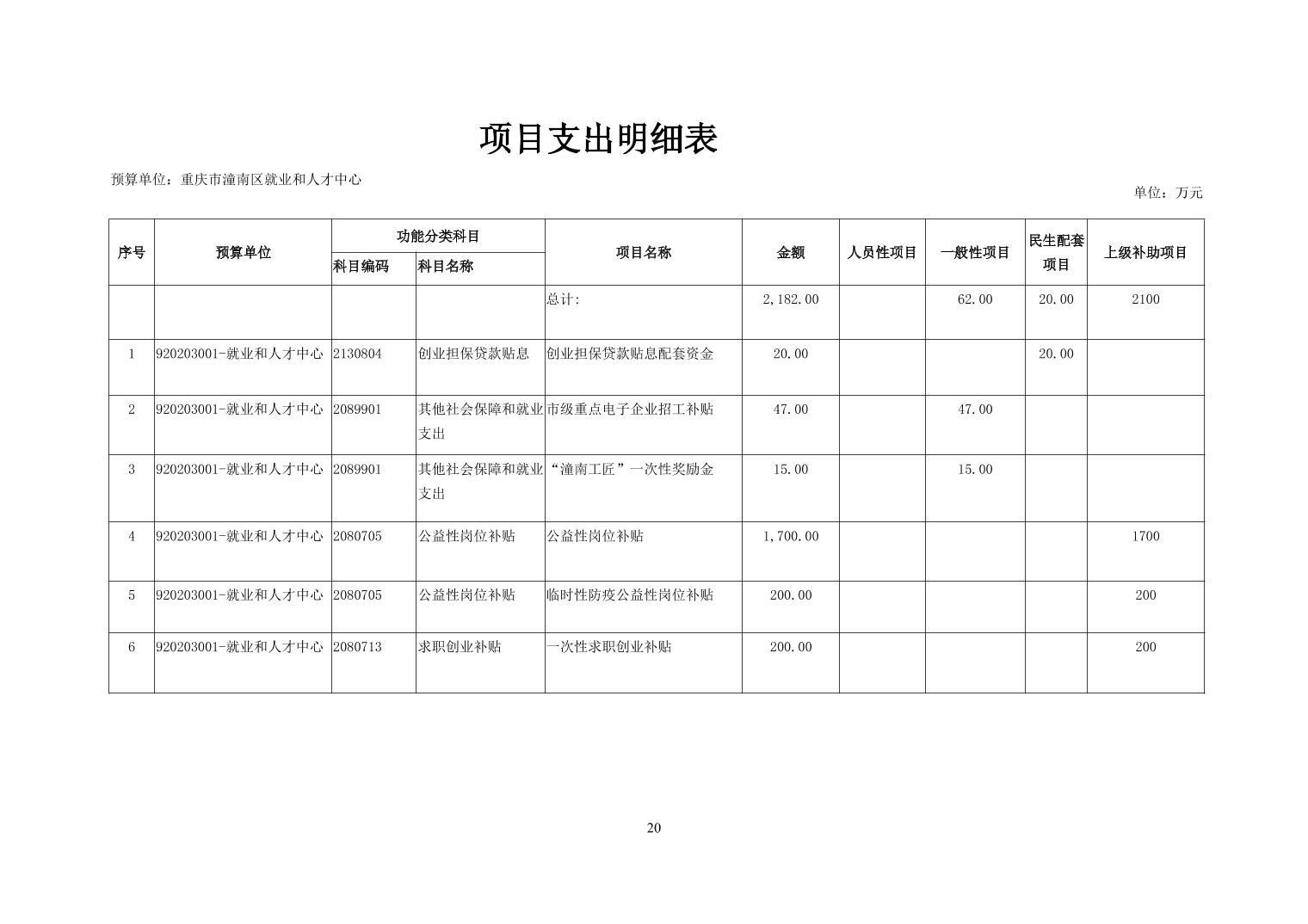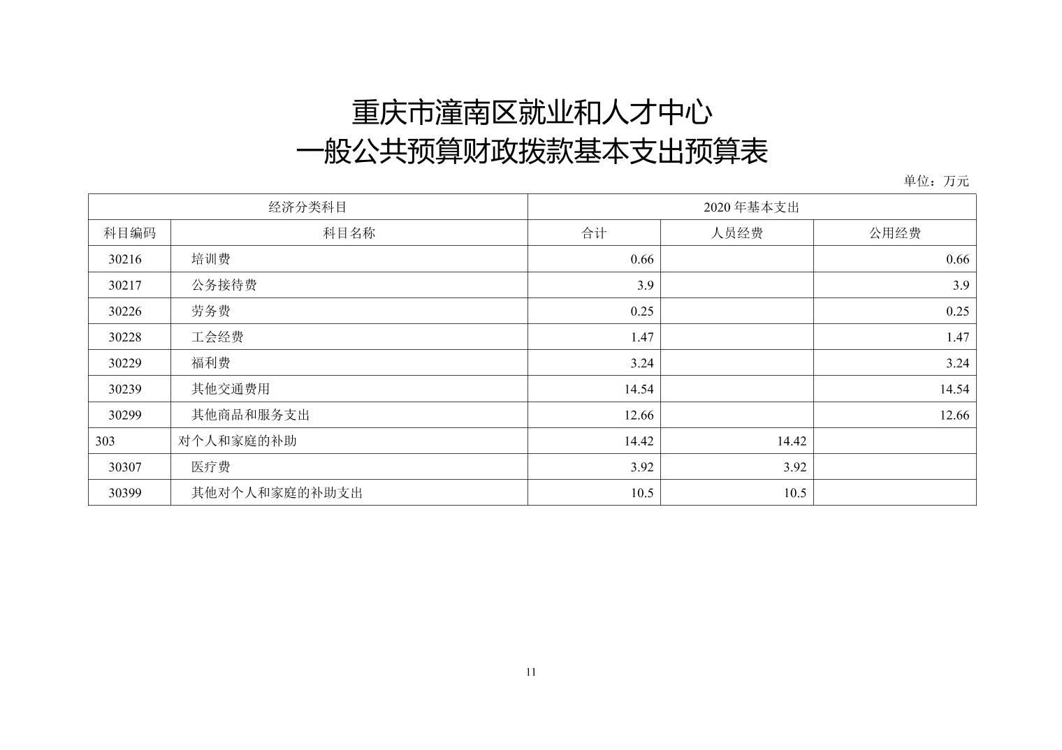 重庆市潼南区就业和人才中心2020年部门预算公开