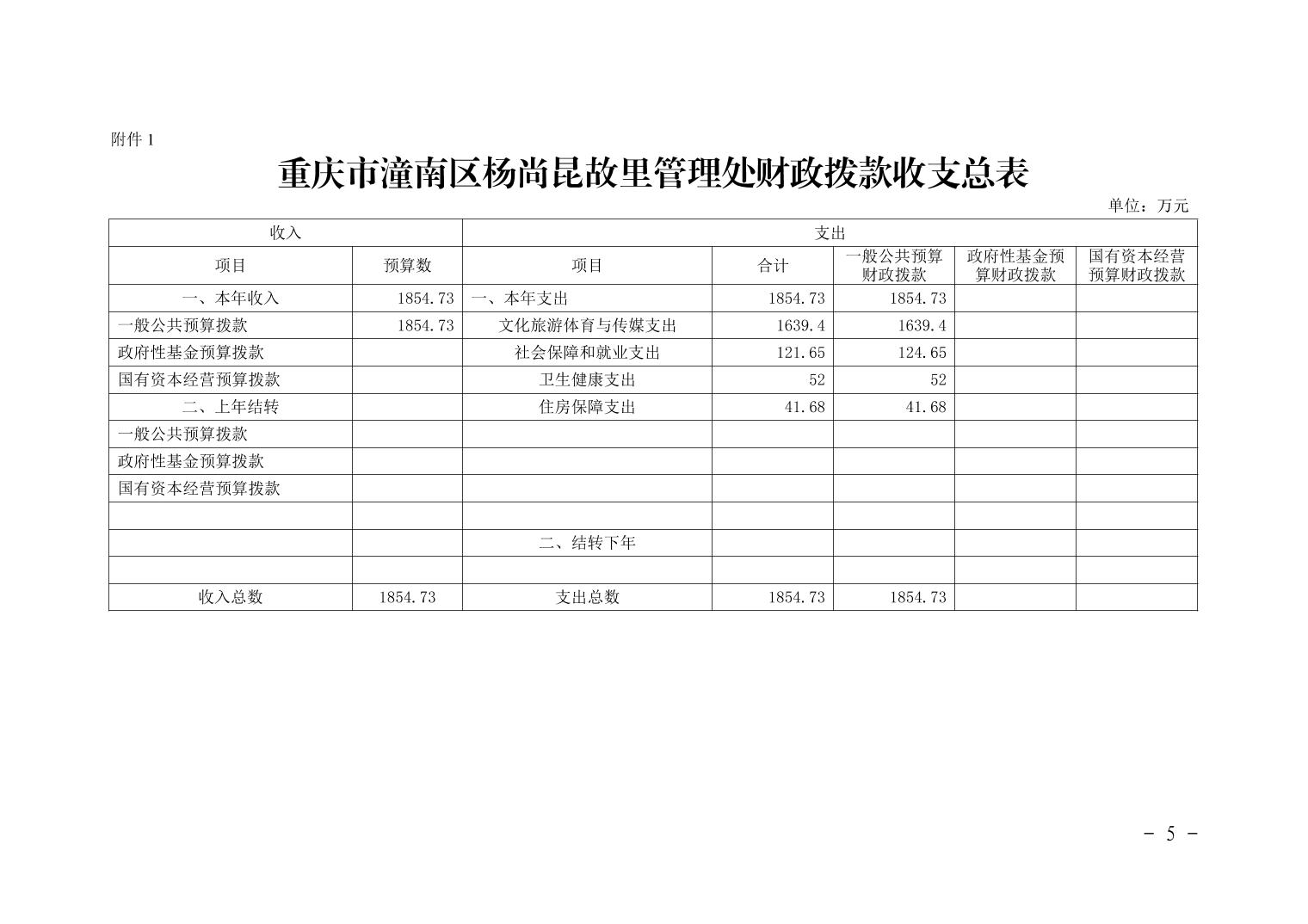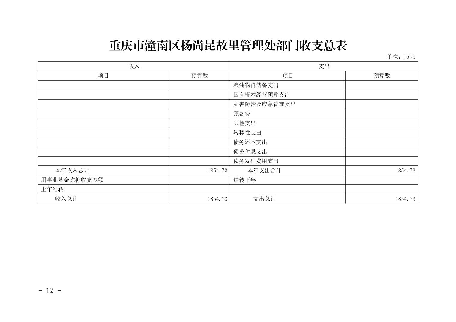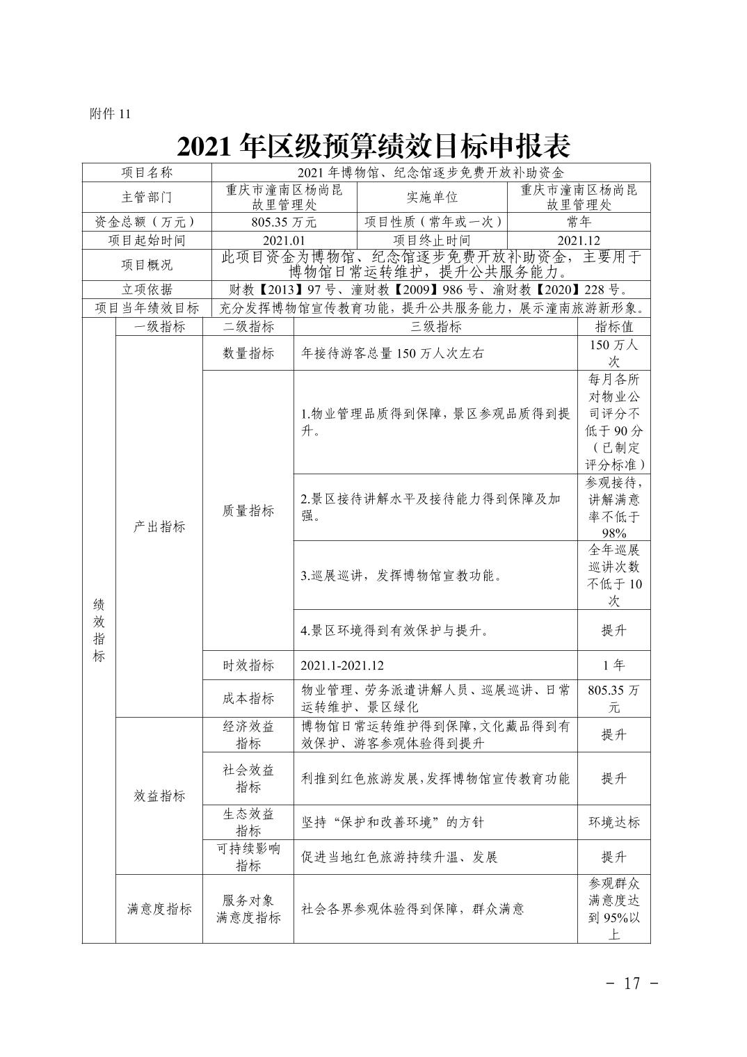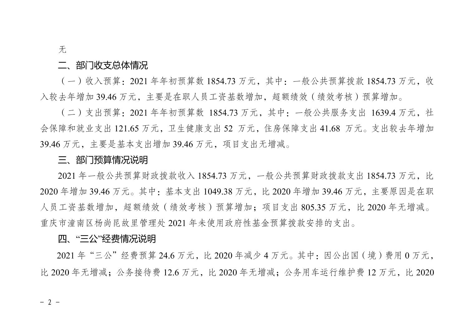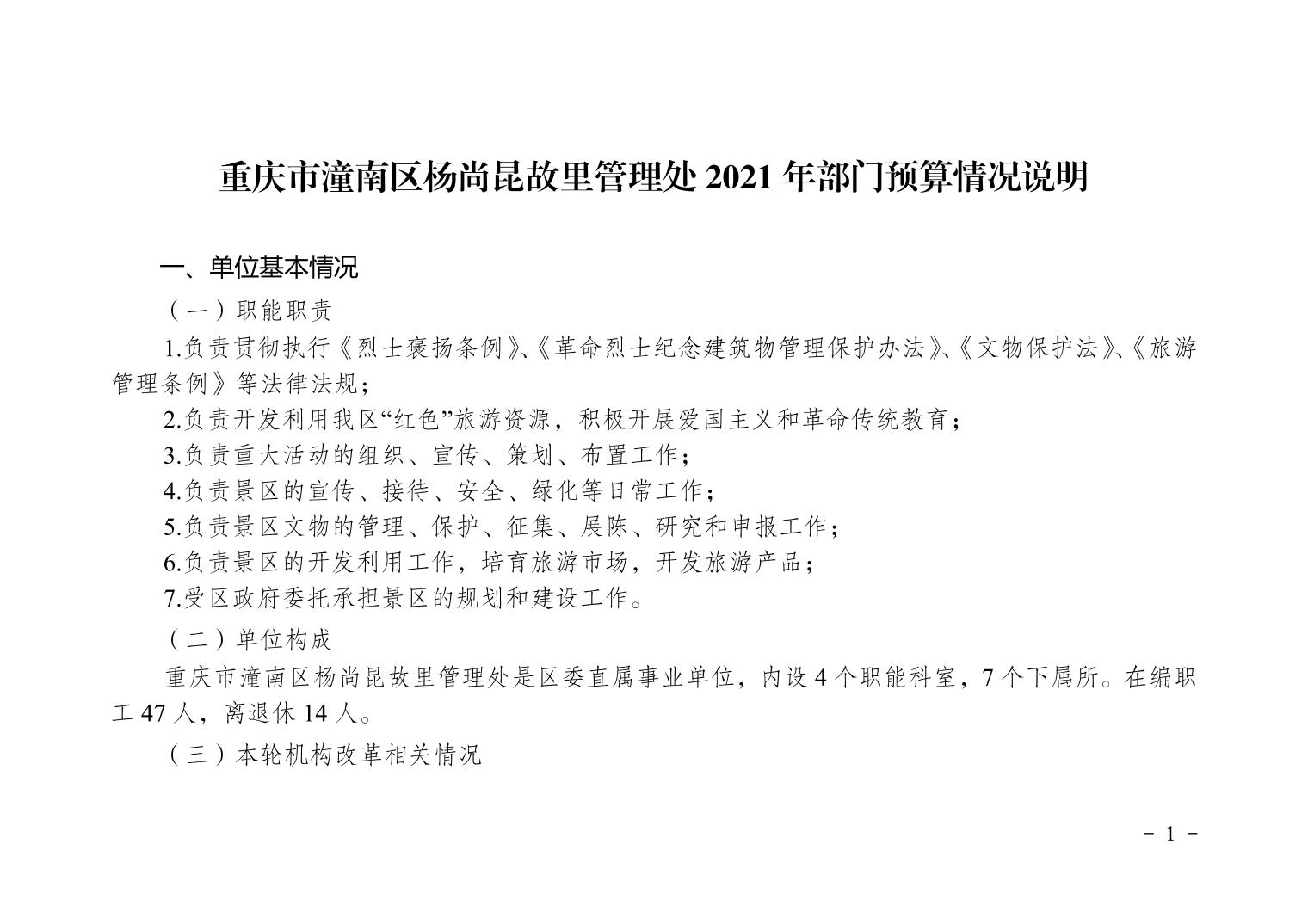 重庆市潼南区杨尚昆故里管理处2021年部门预算公开