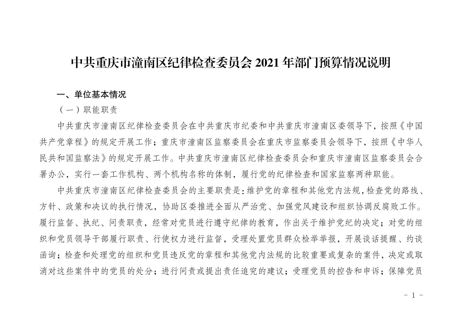 中共重庆市潼南区纪律检查委员会2021年部门预算公开
