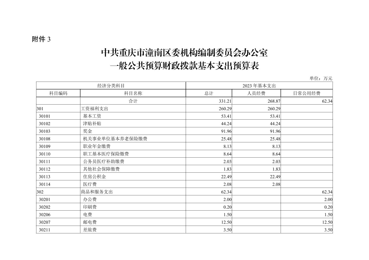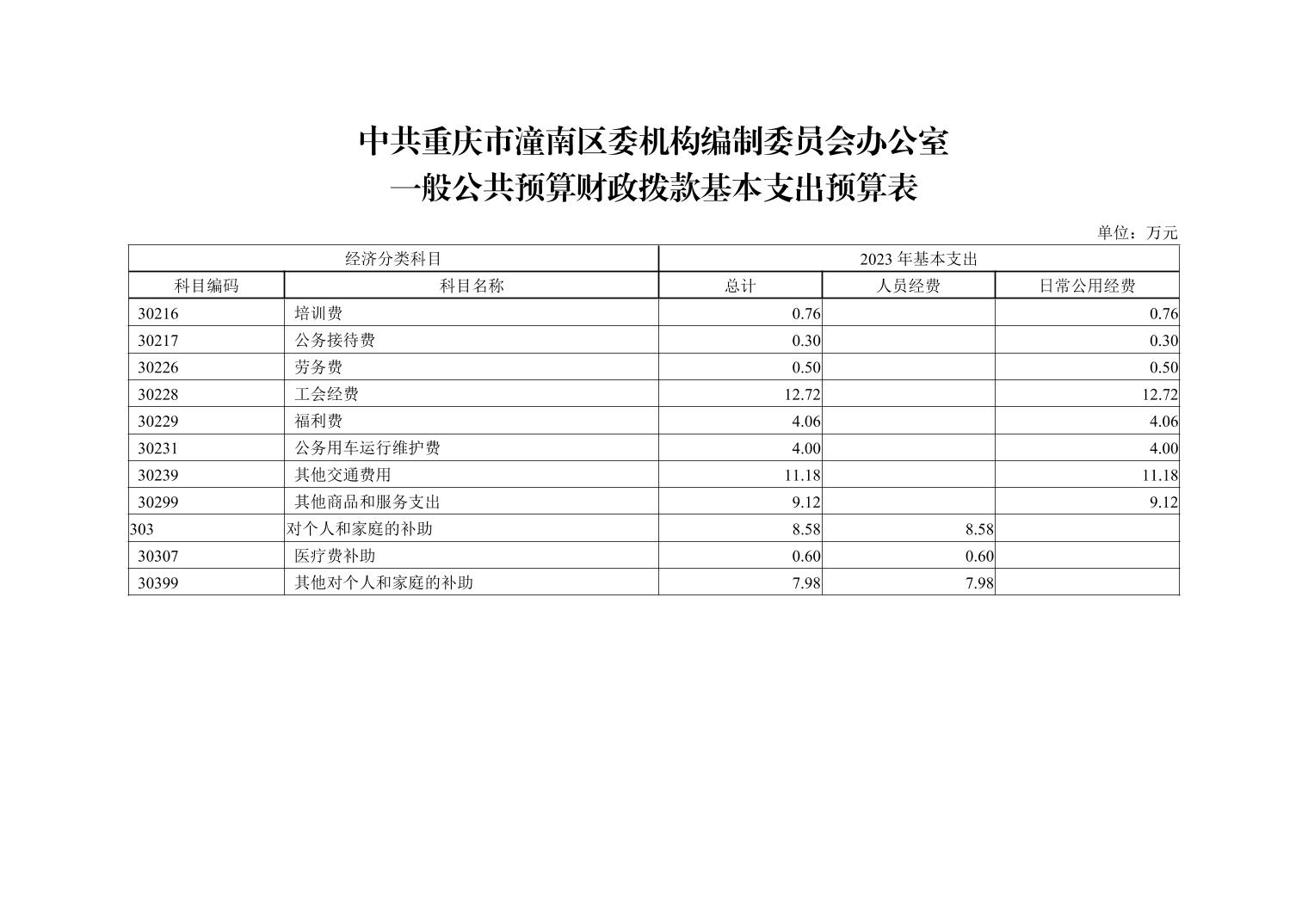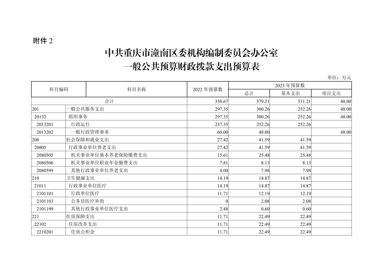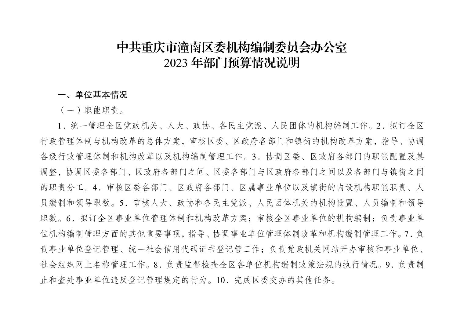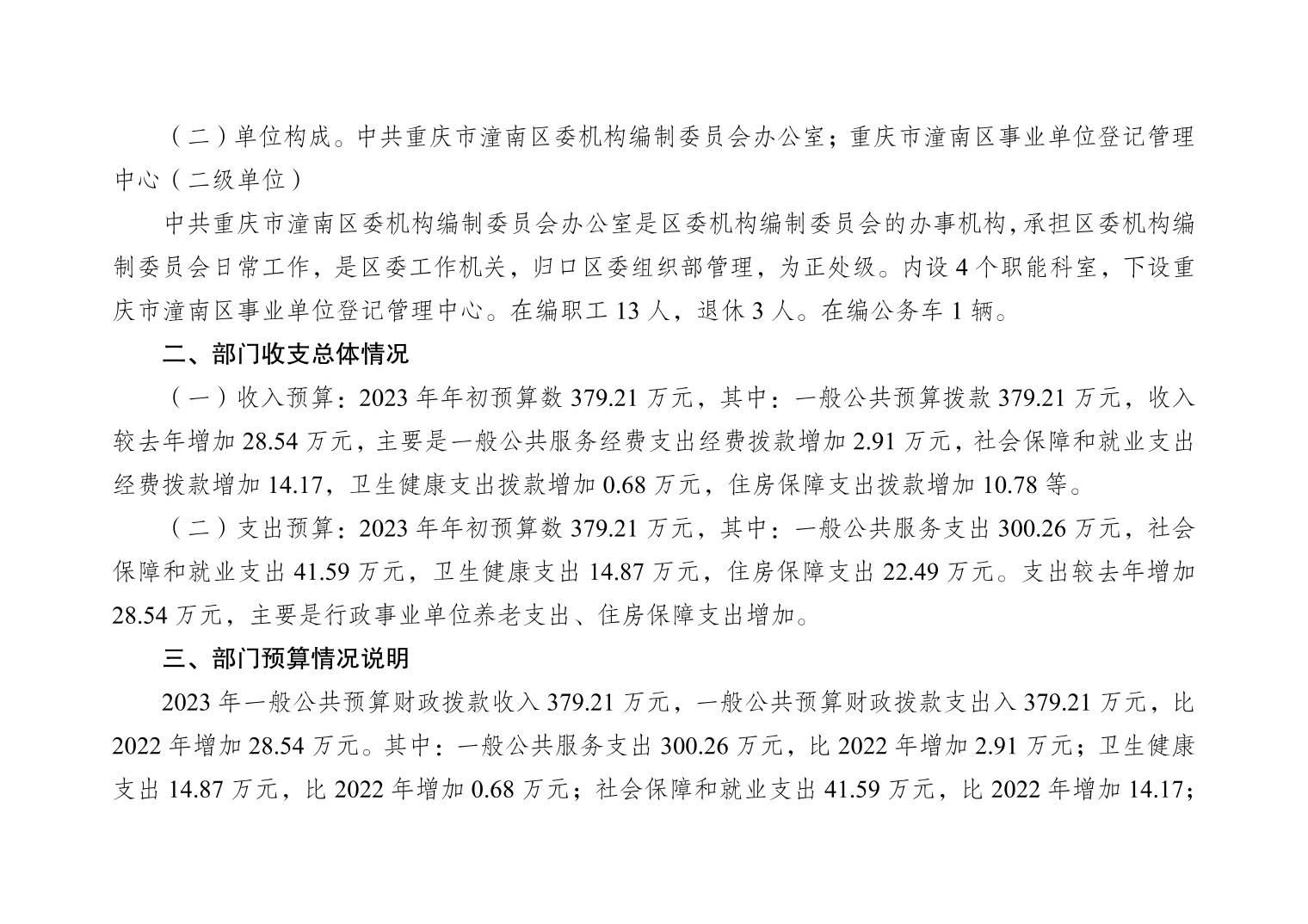 中共重庆市潼南区委机构编制委员会办公室2023预算公开