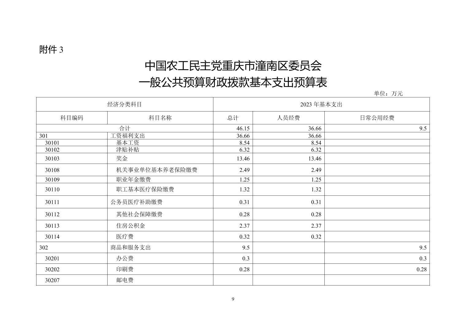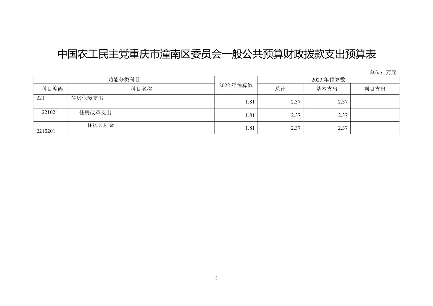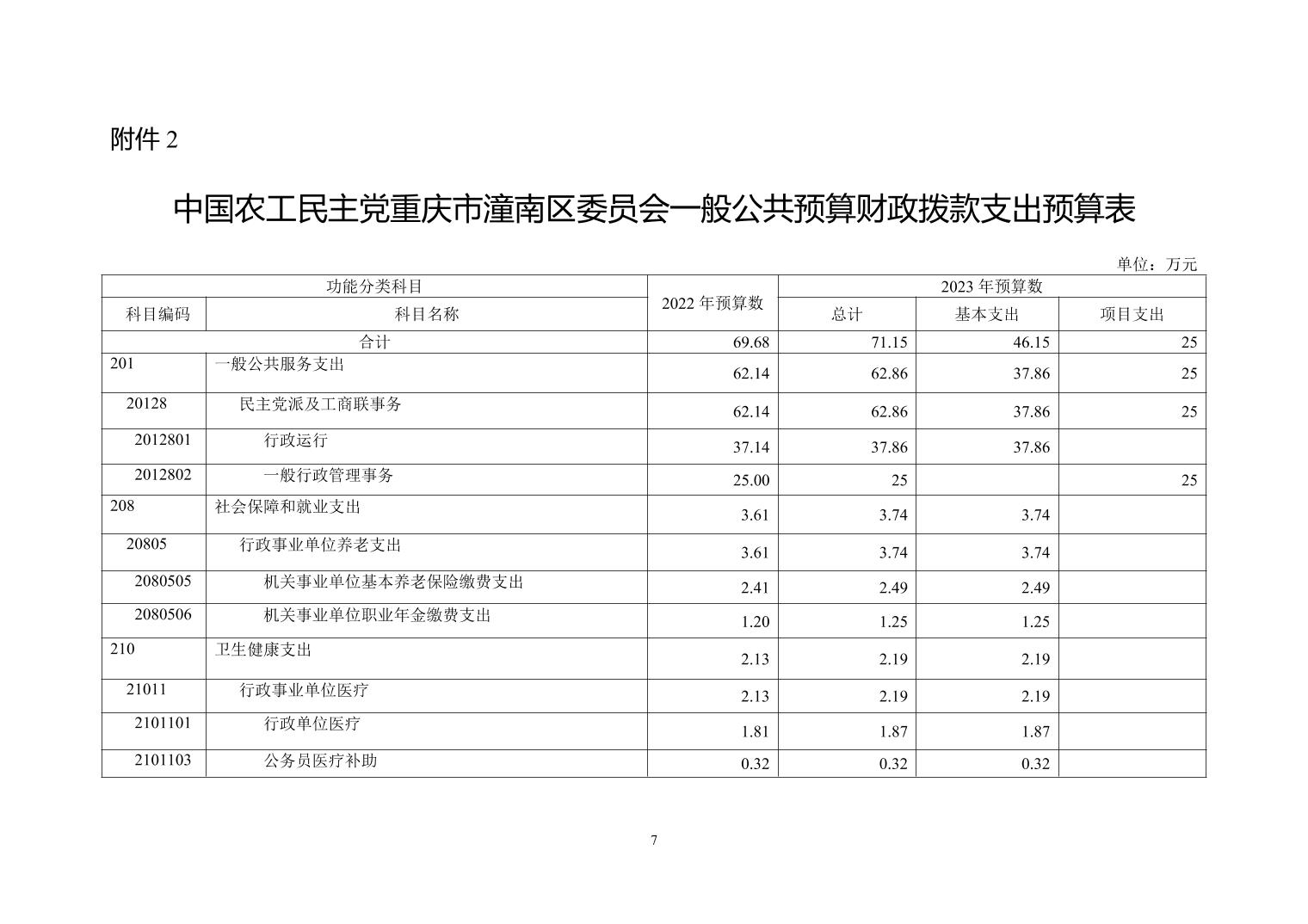 中国农工民主党重庆市潼南区委员会2023年部门预算公开