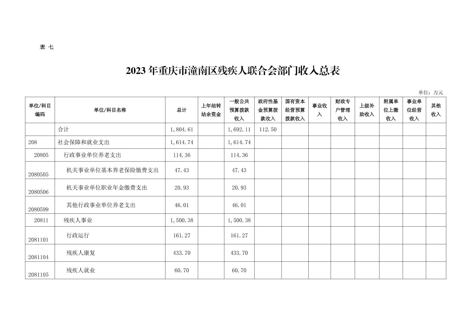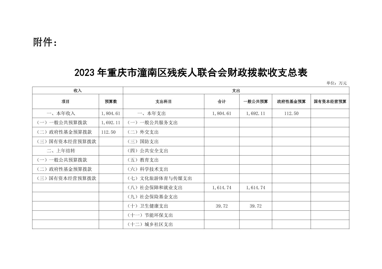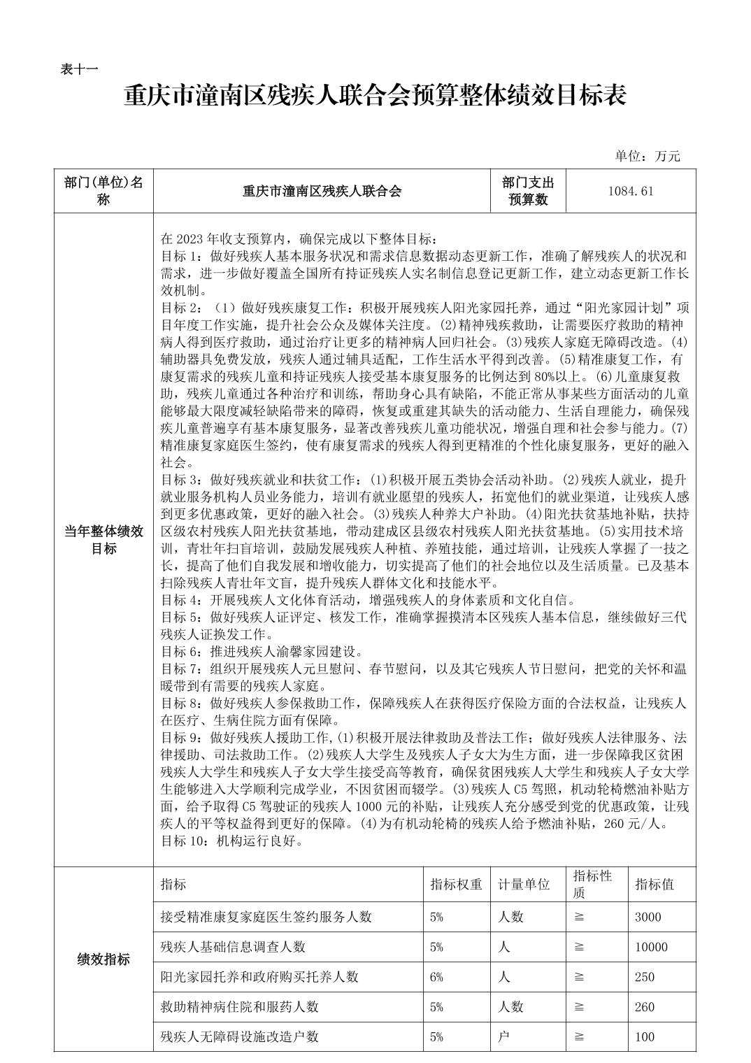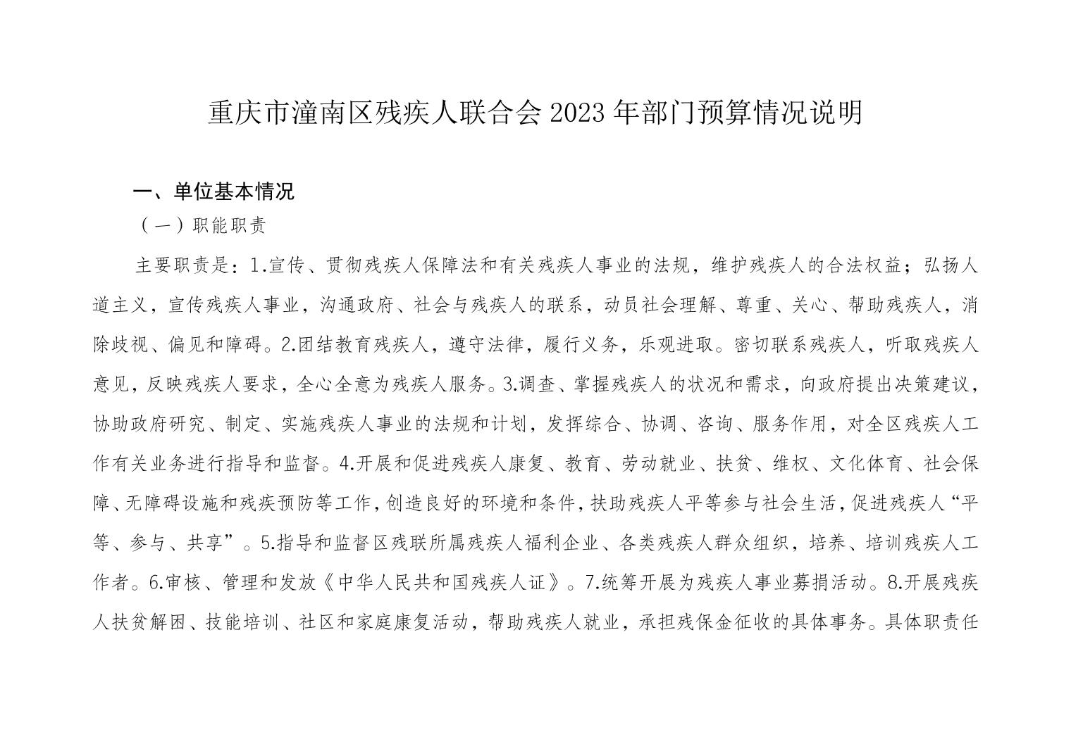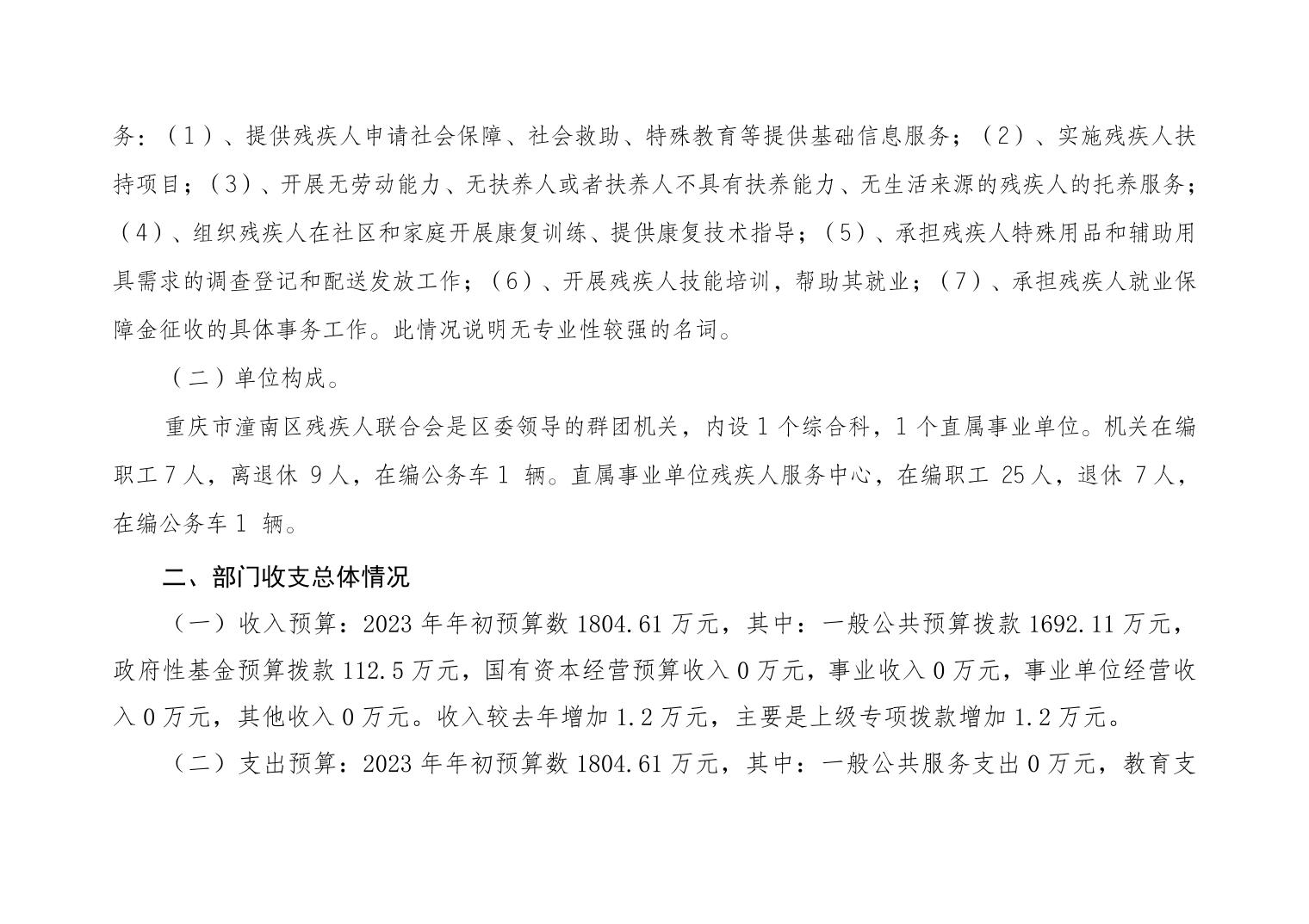 重庆市潼南区残疾人联合会2023年部门预算公开