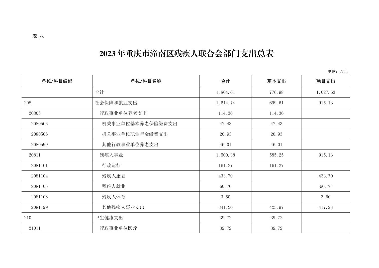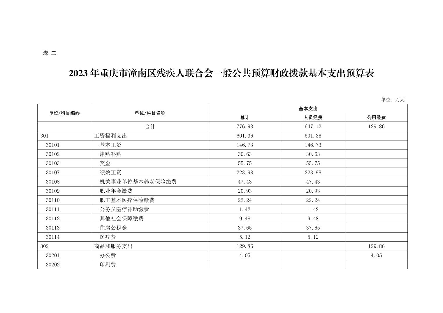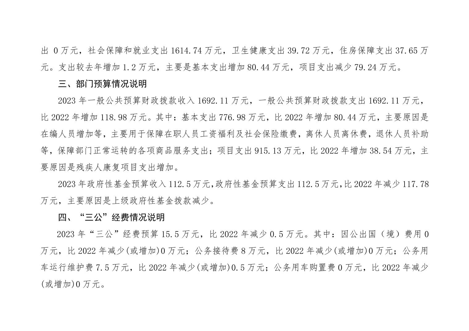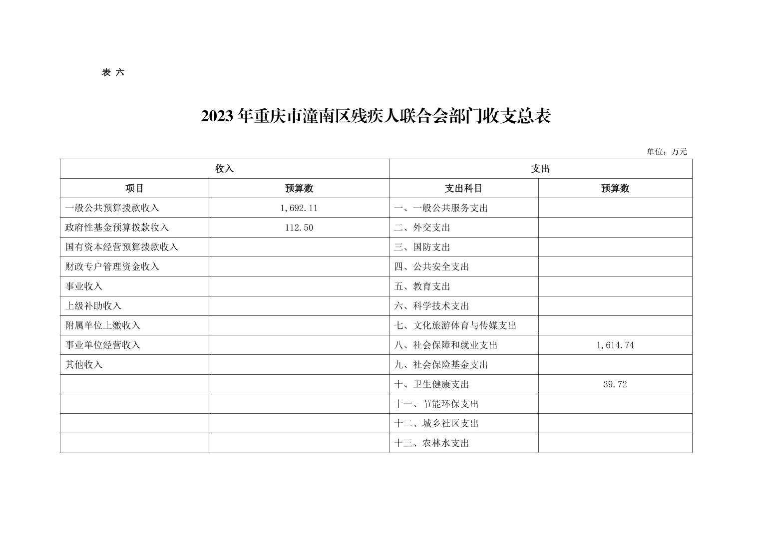 重庆市潼南区残疾人联合会2023年部门预算公开