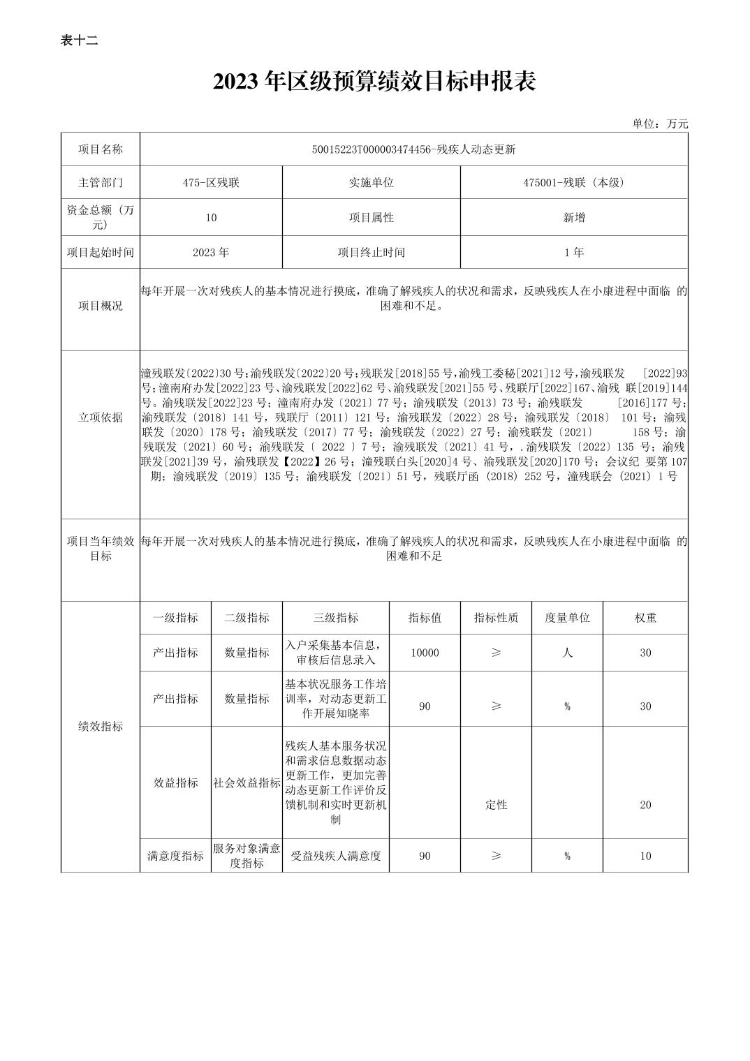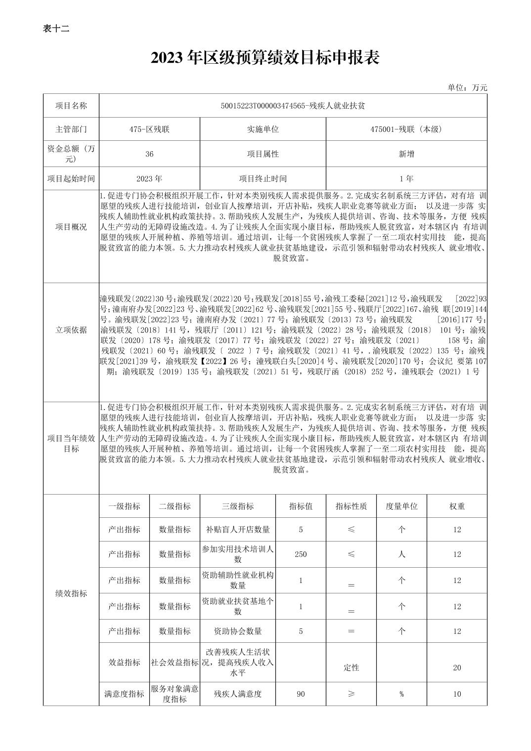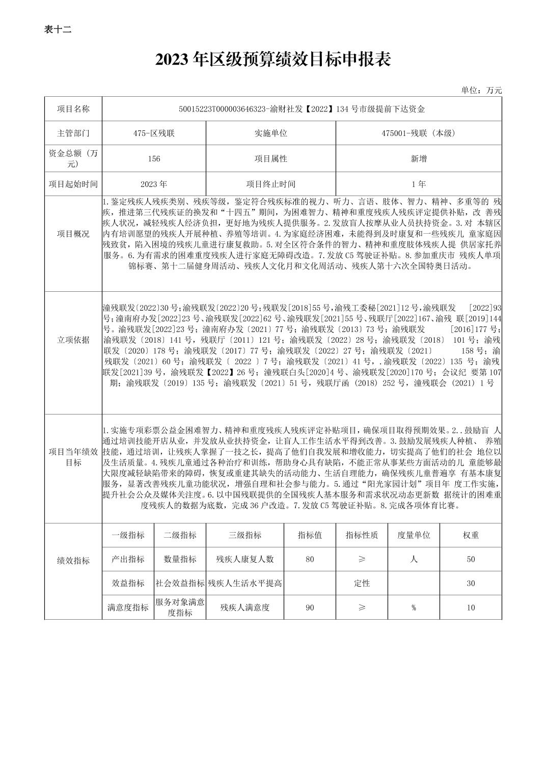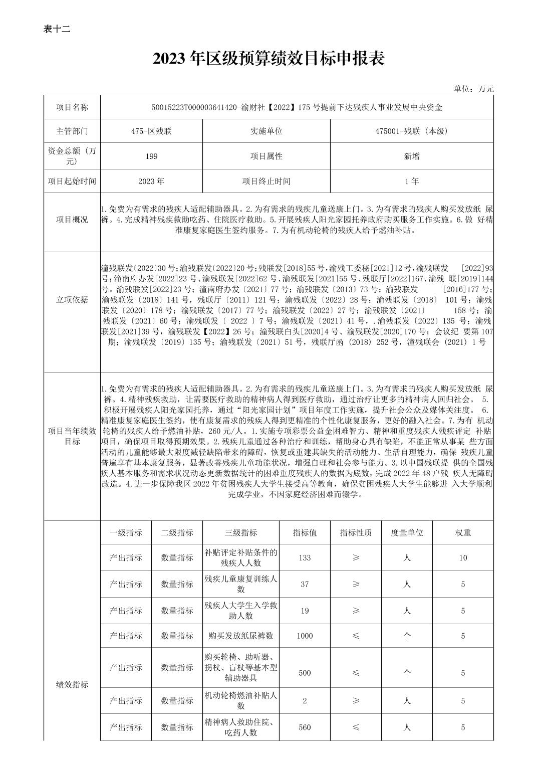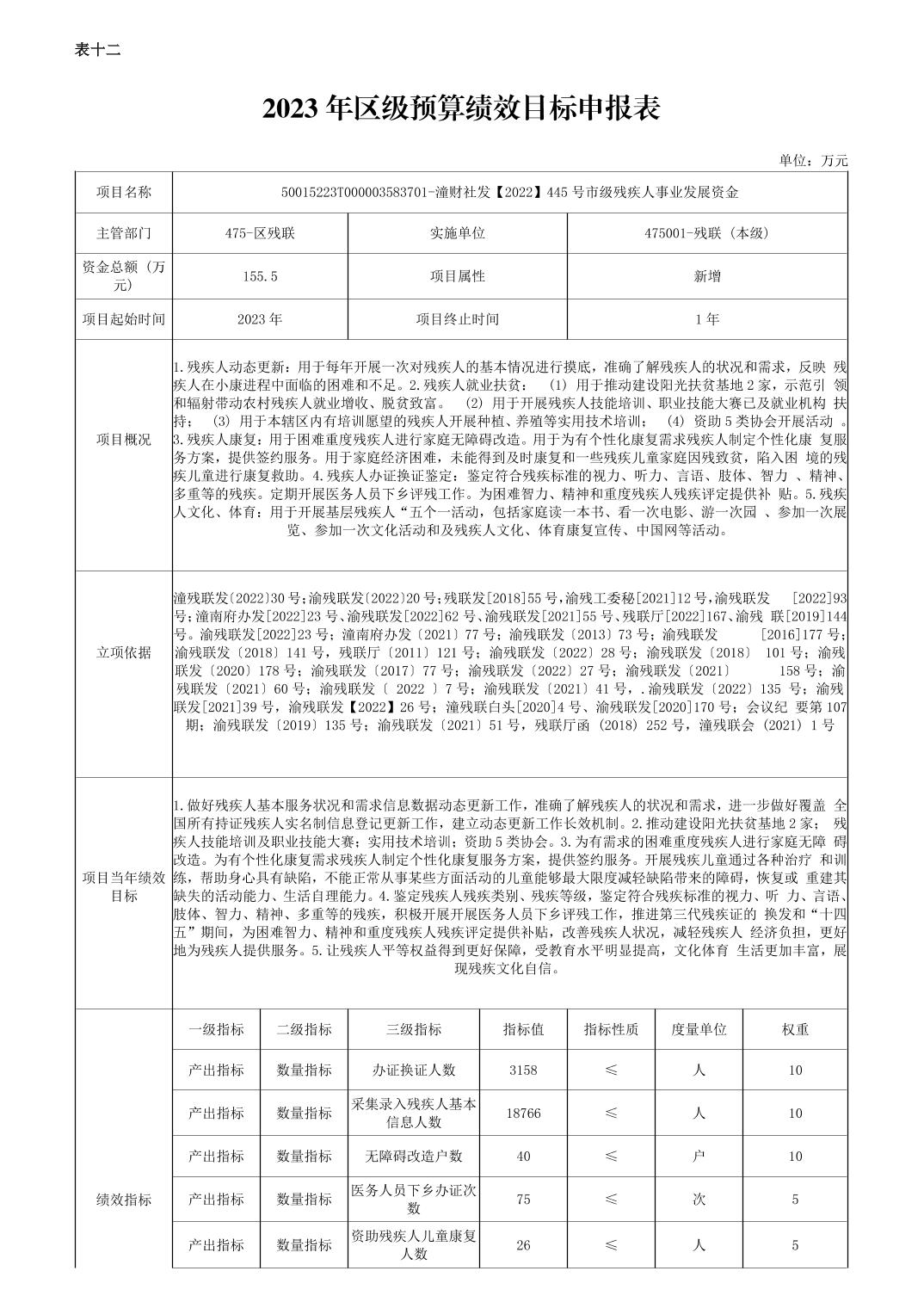 重庆市潼南区残疾人联合会2023年部门预算公开