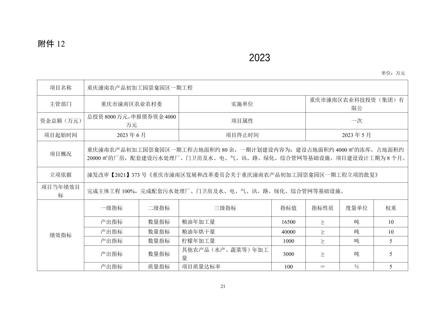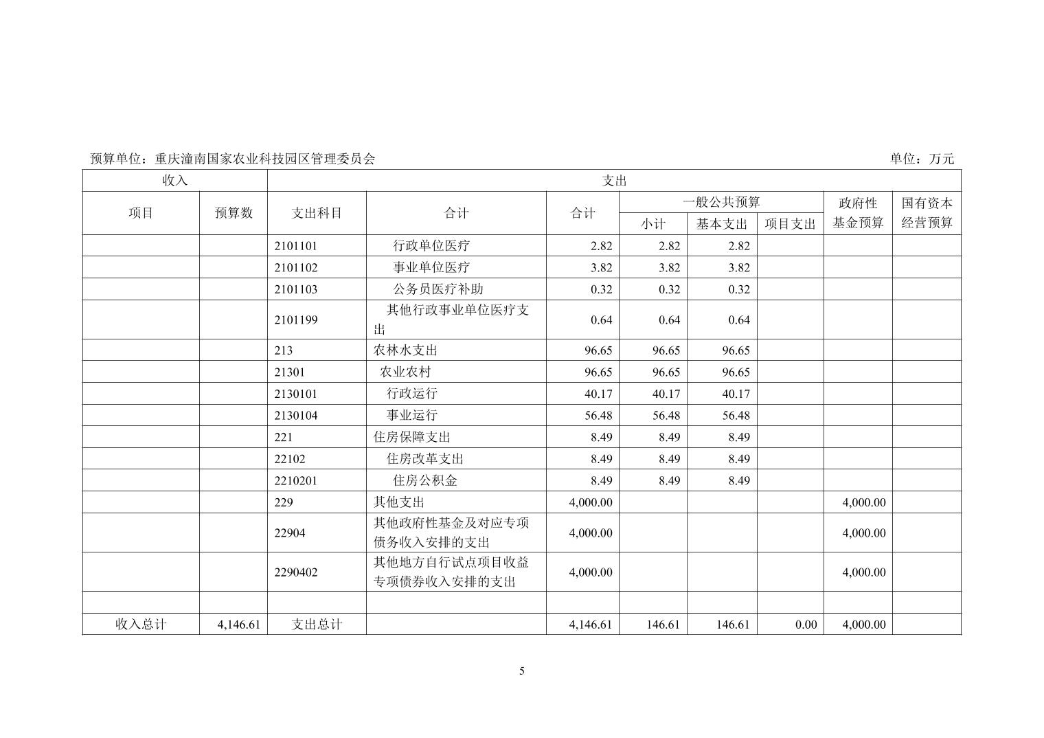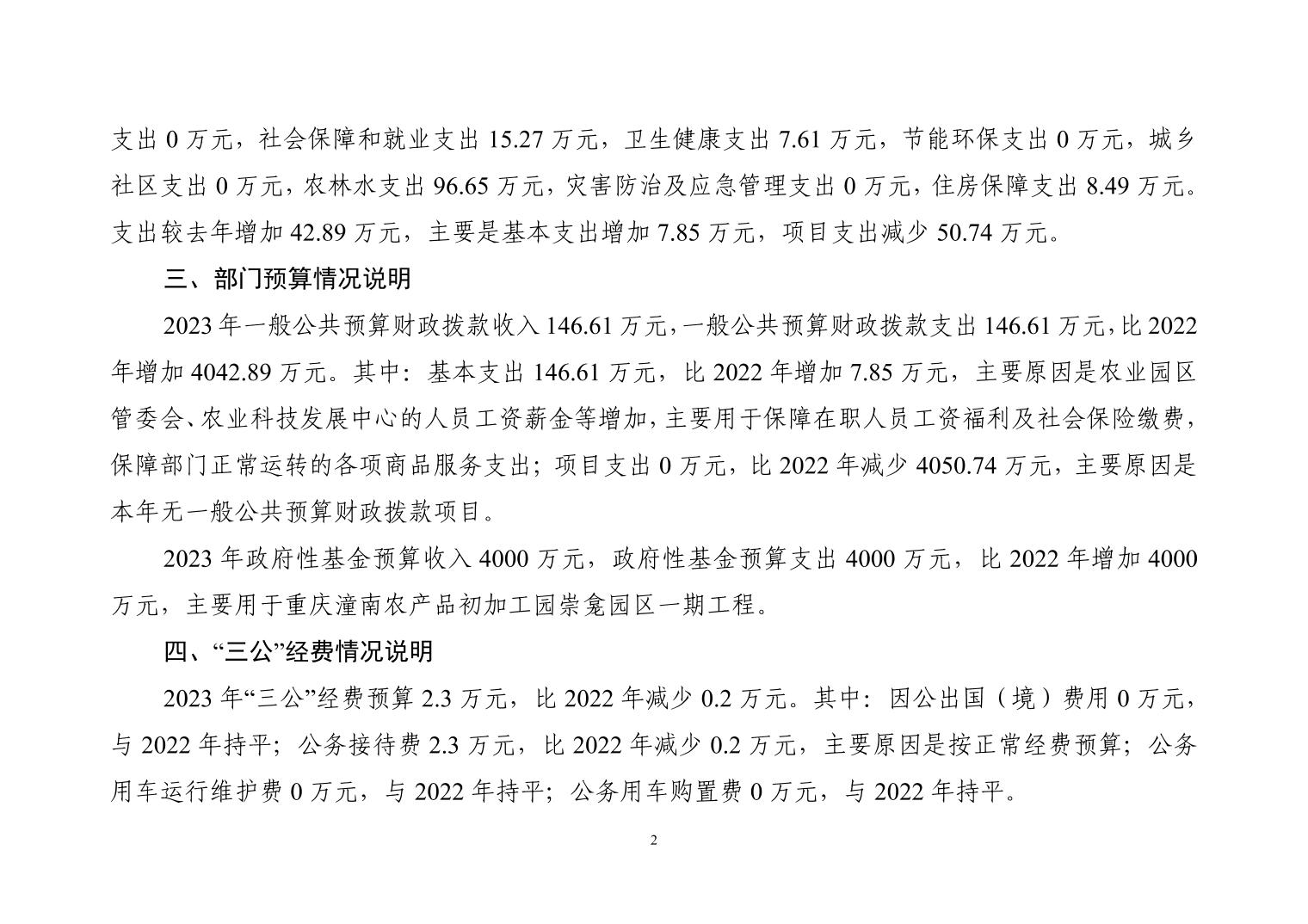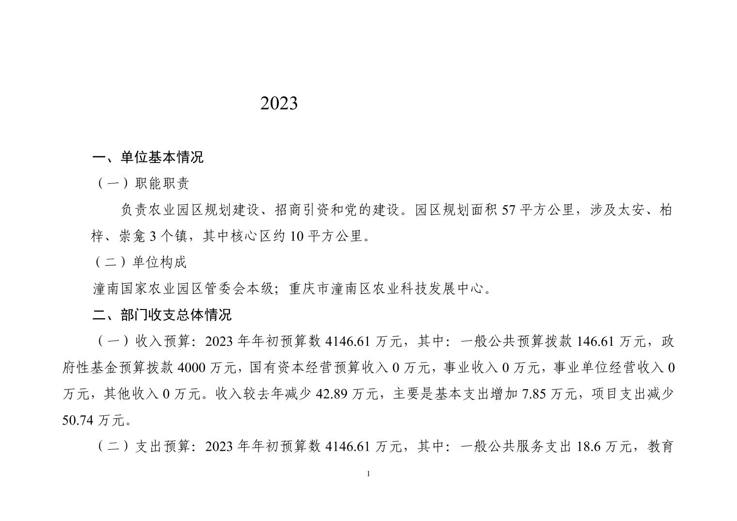 重庆市潼南区国家农业科技园区管理委员会2023年部门预算公开