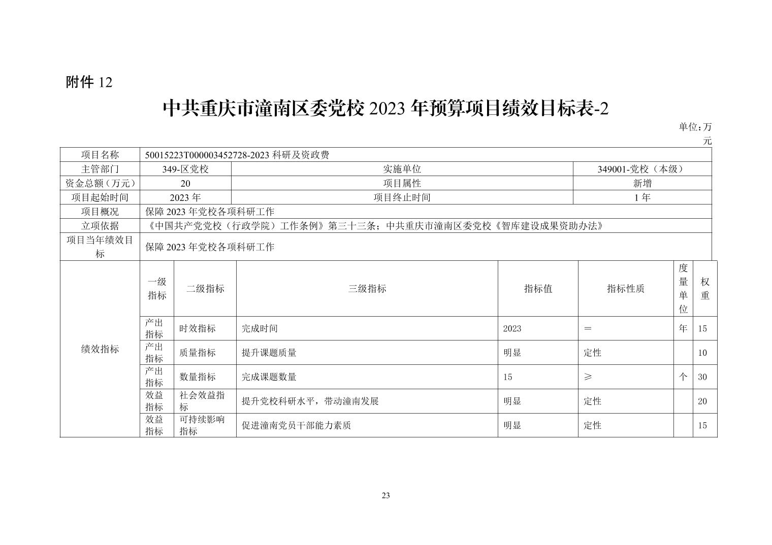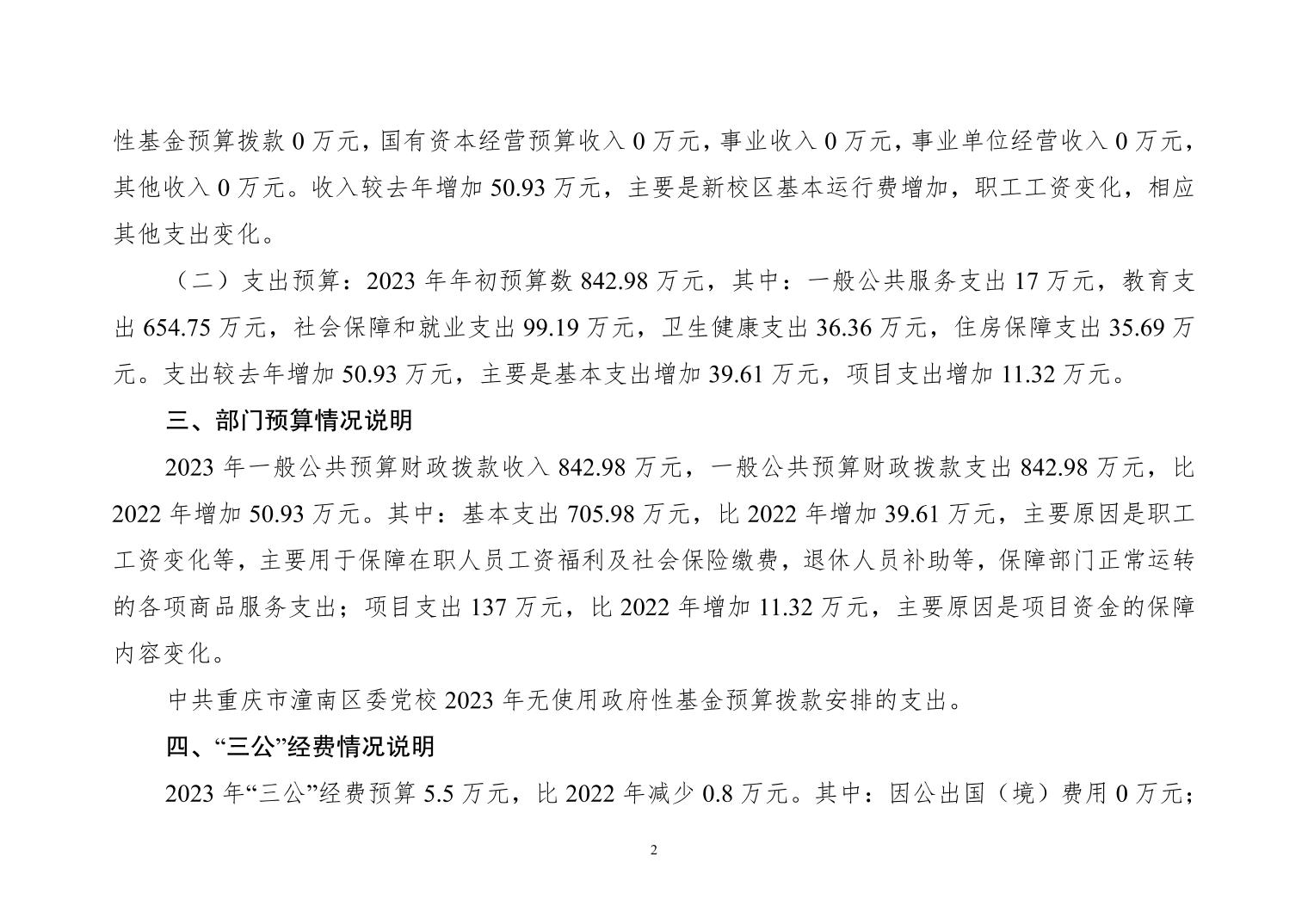 重庆市潼南区委党校2023年部门预算公开