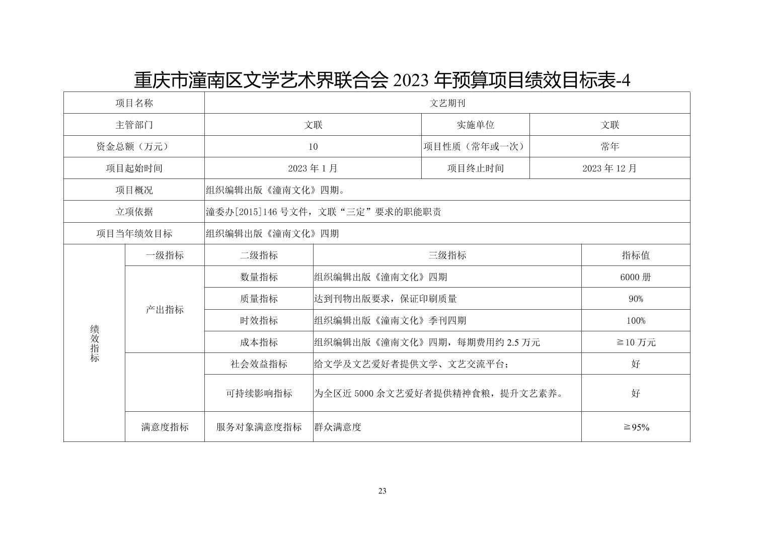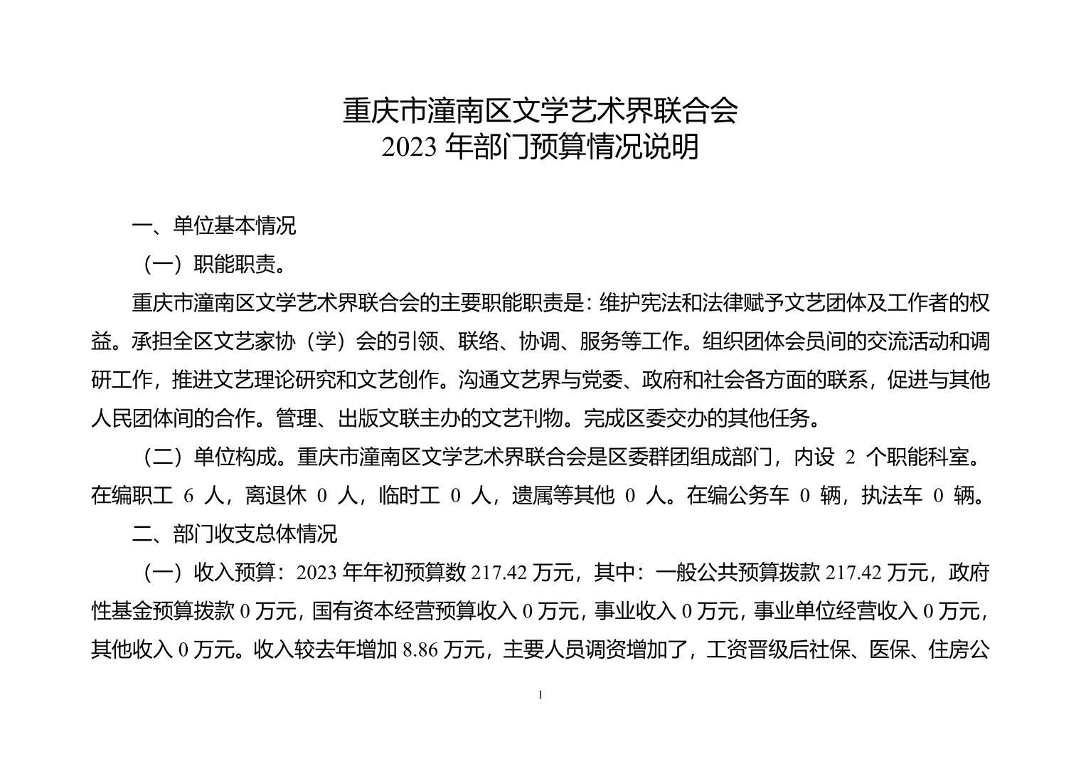 重庆市潼南区文学艺术界联合会2023年部门预算公开