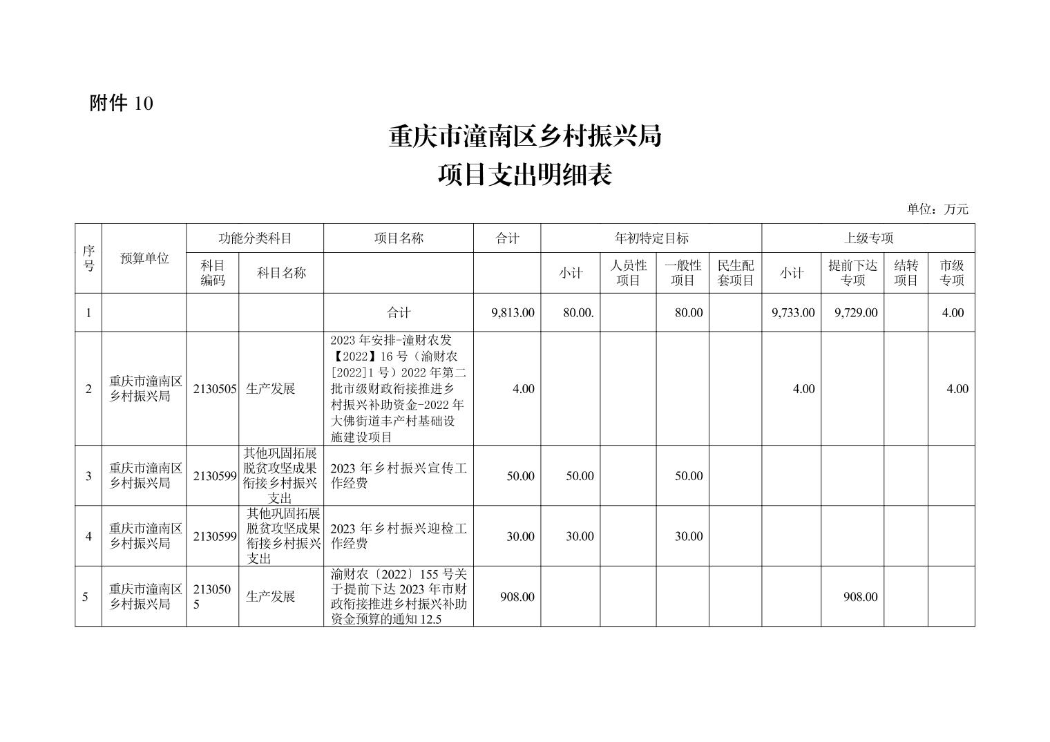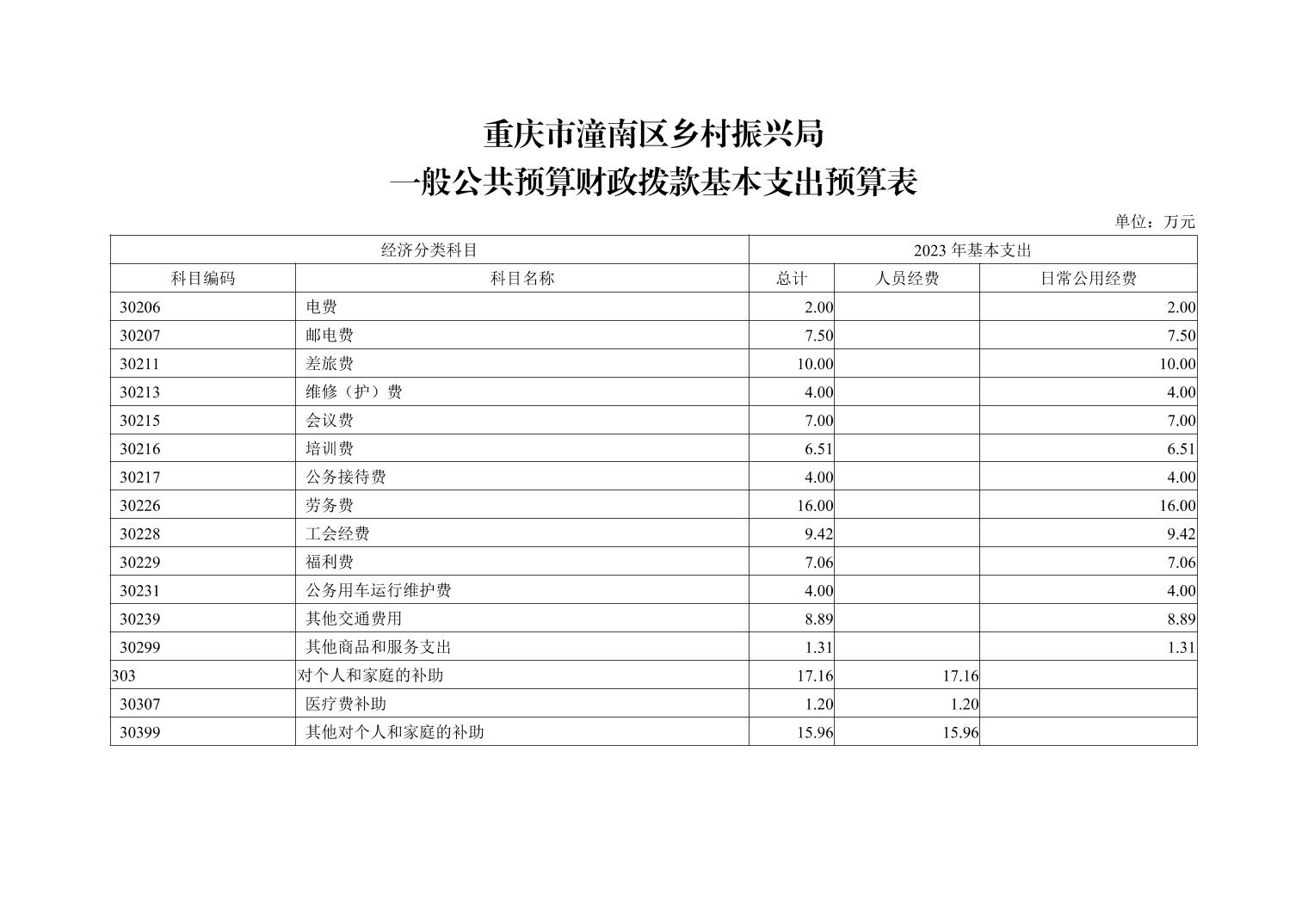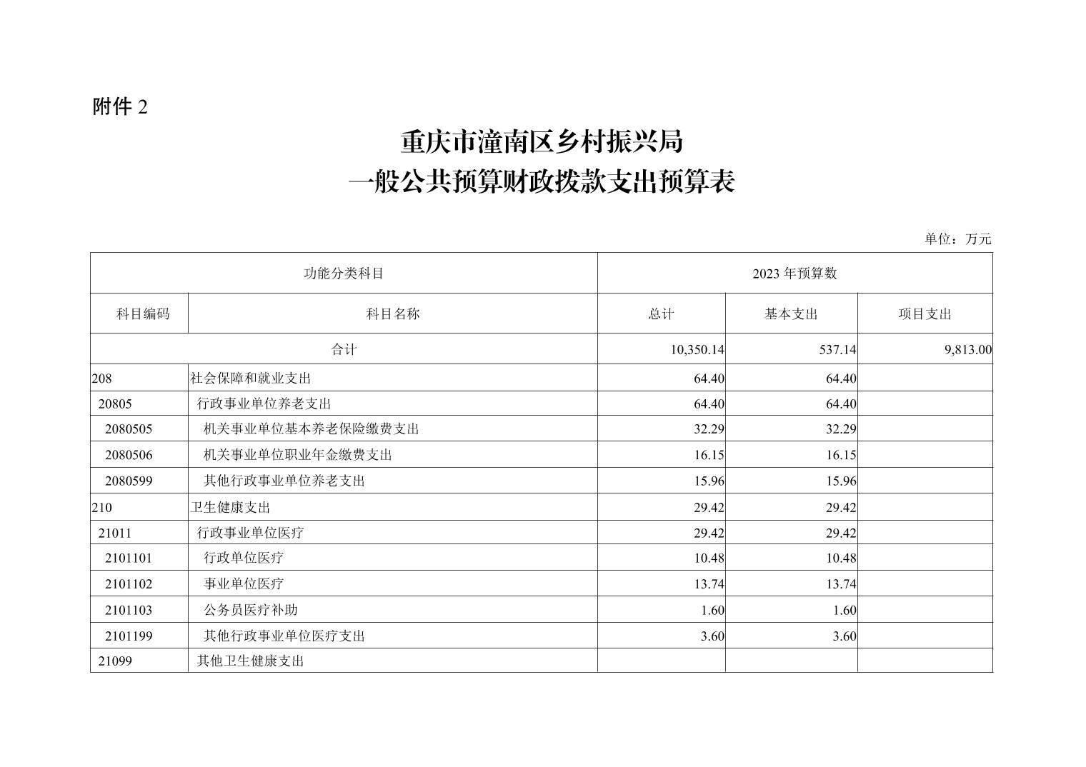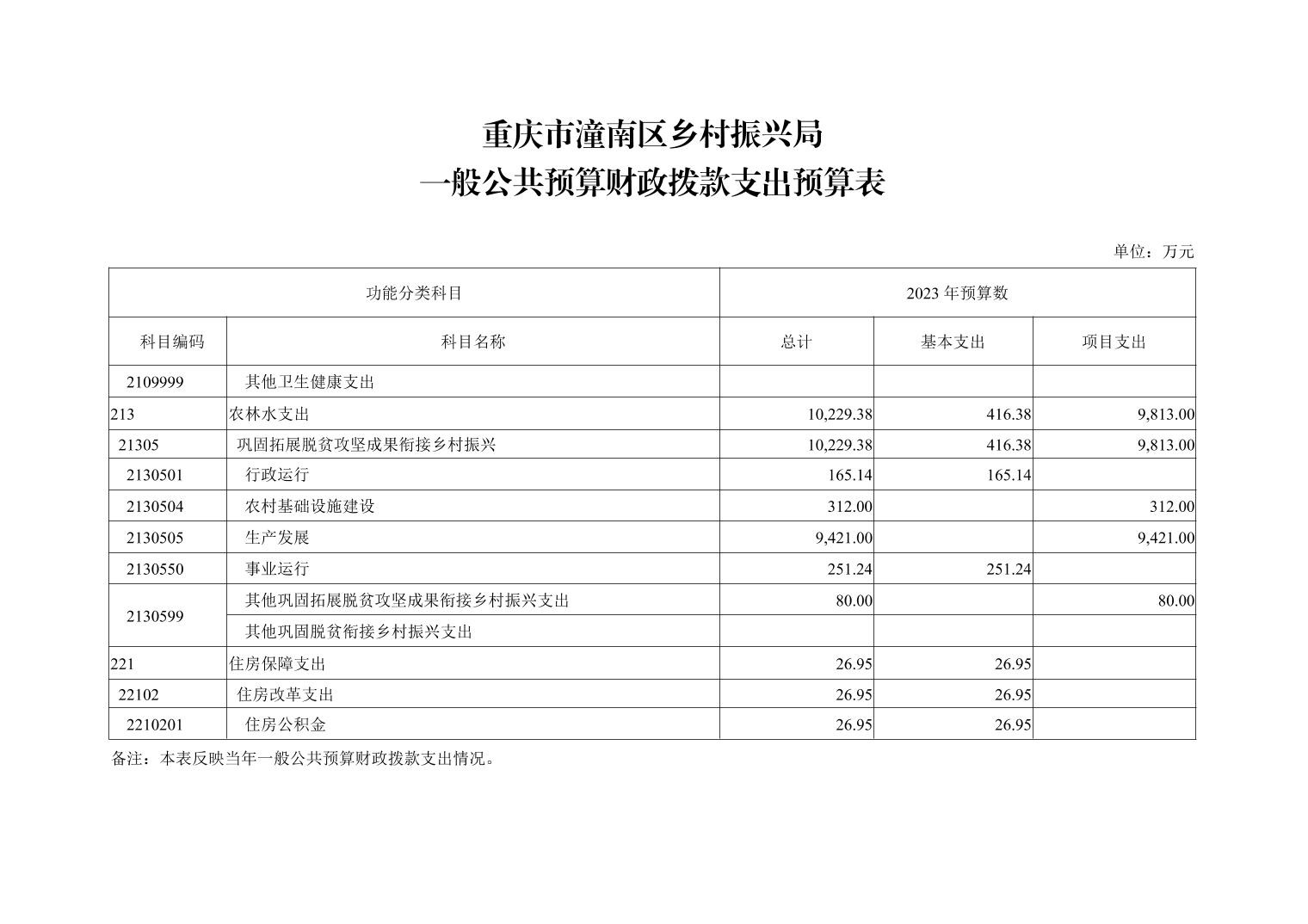 重庆市潼南区乡村振兴局2023年部门预算公开