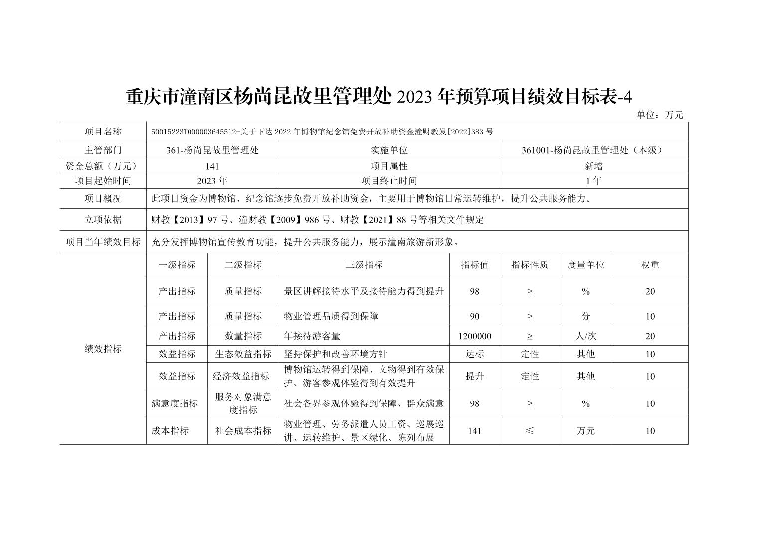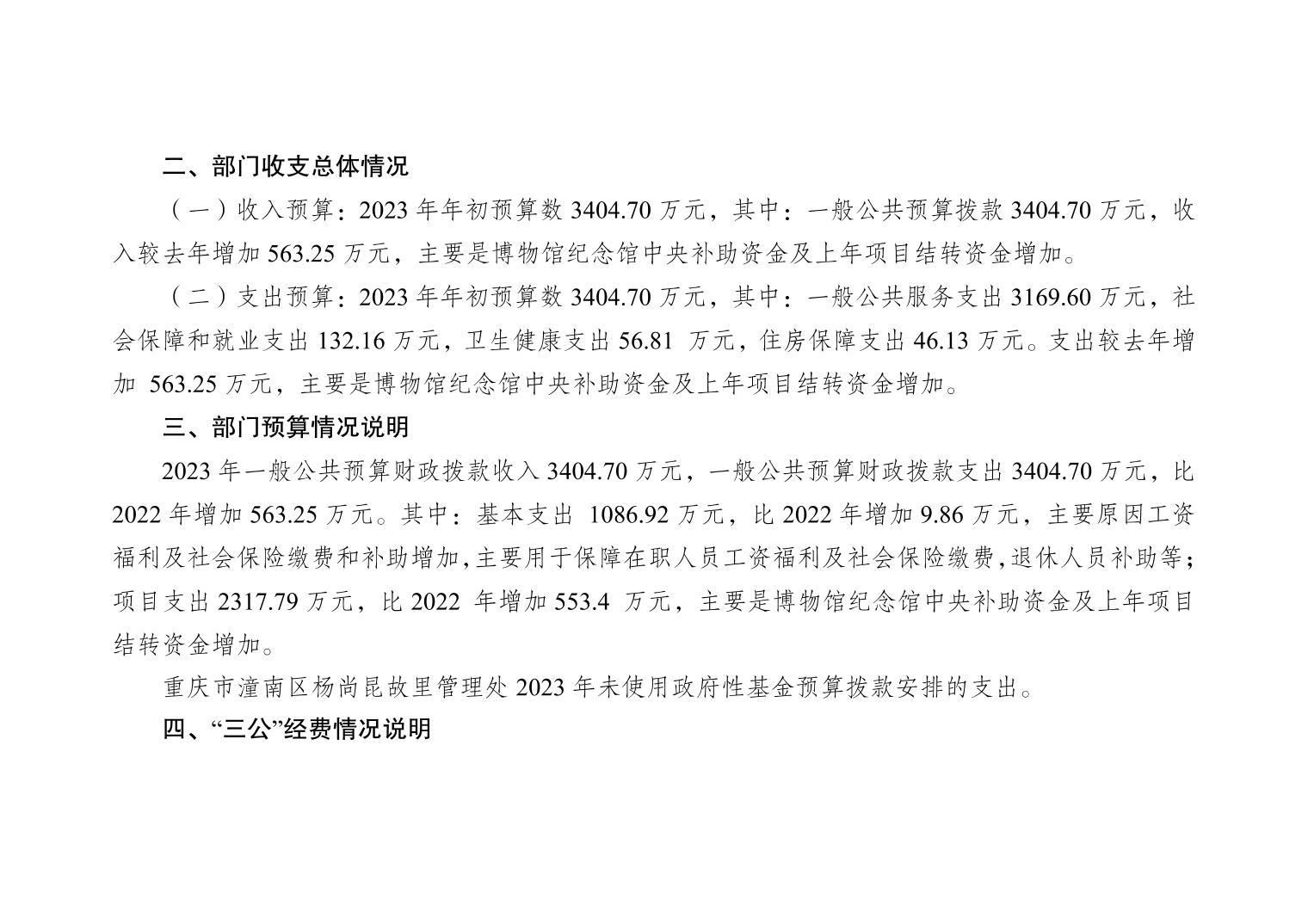 重庆市潼南区杨尚昆故里管理处2023年部门预算公开
