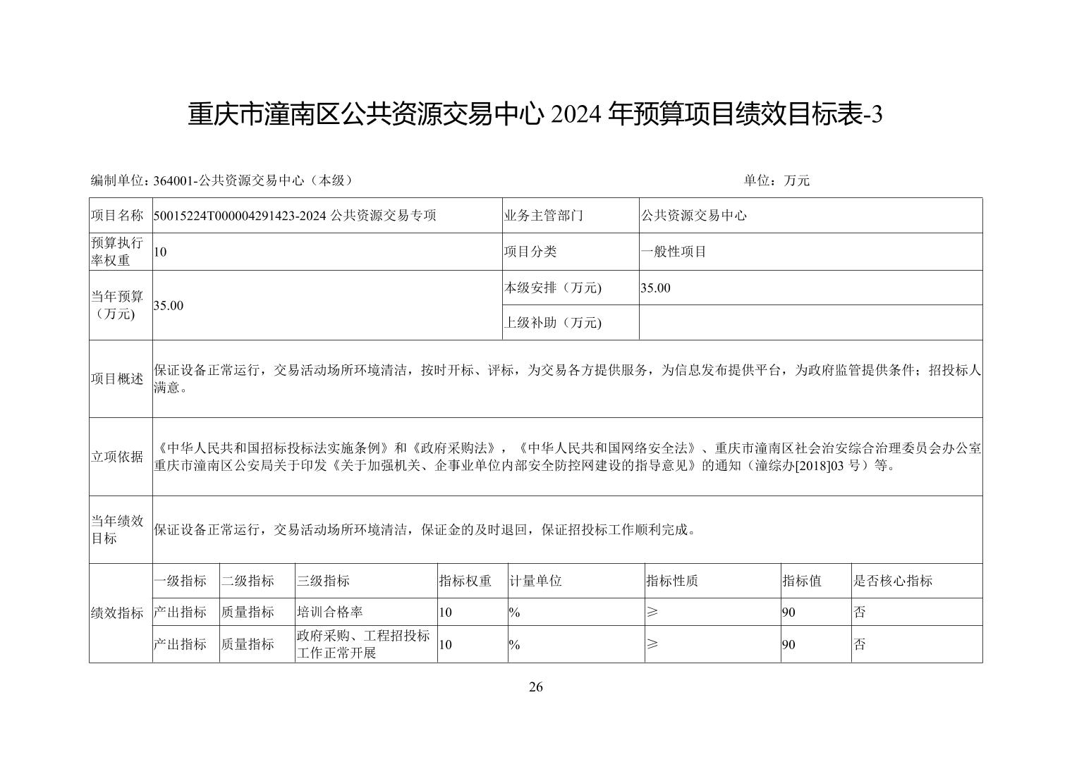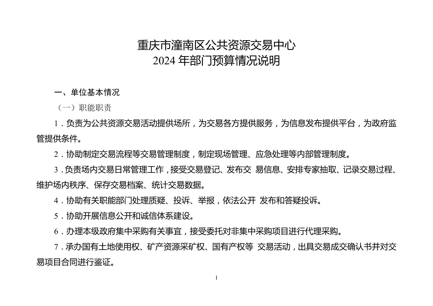 重庆市潼南区公共资源交易中心2024年部门预算公开