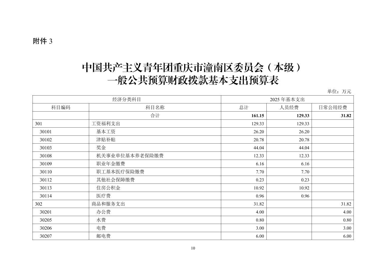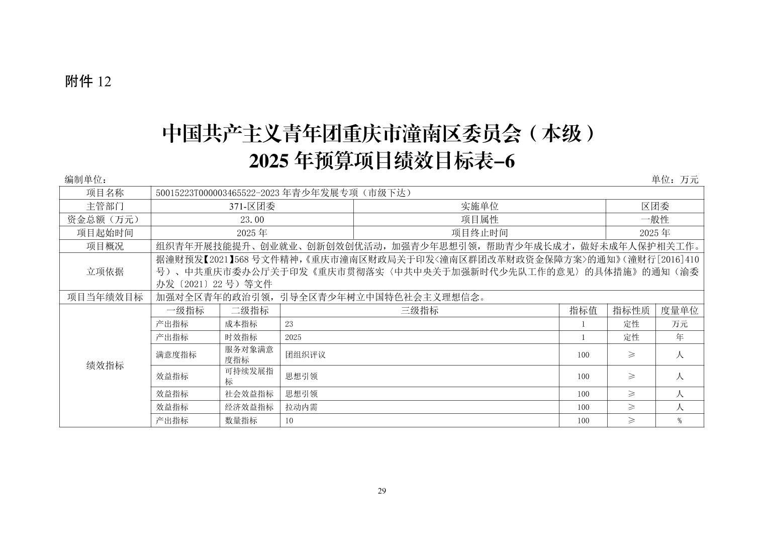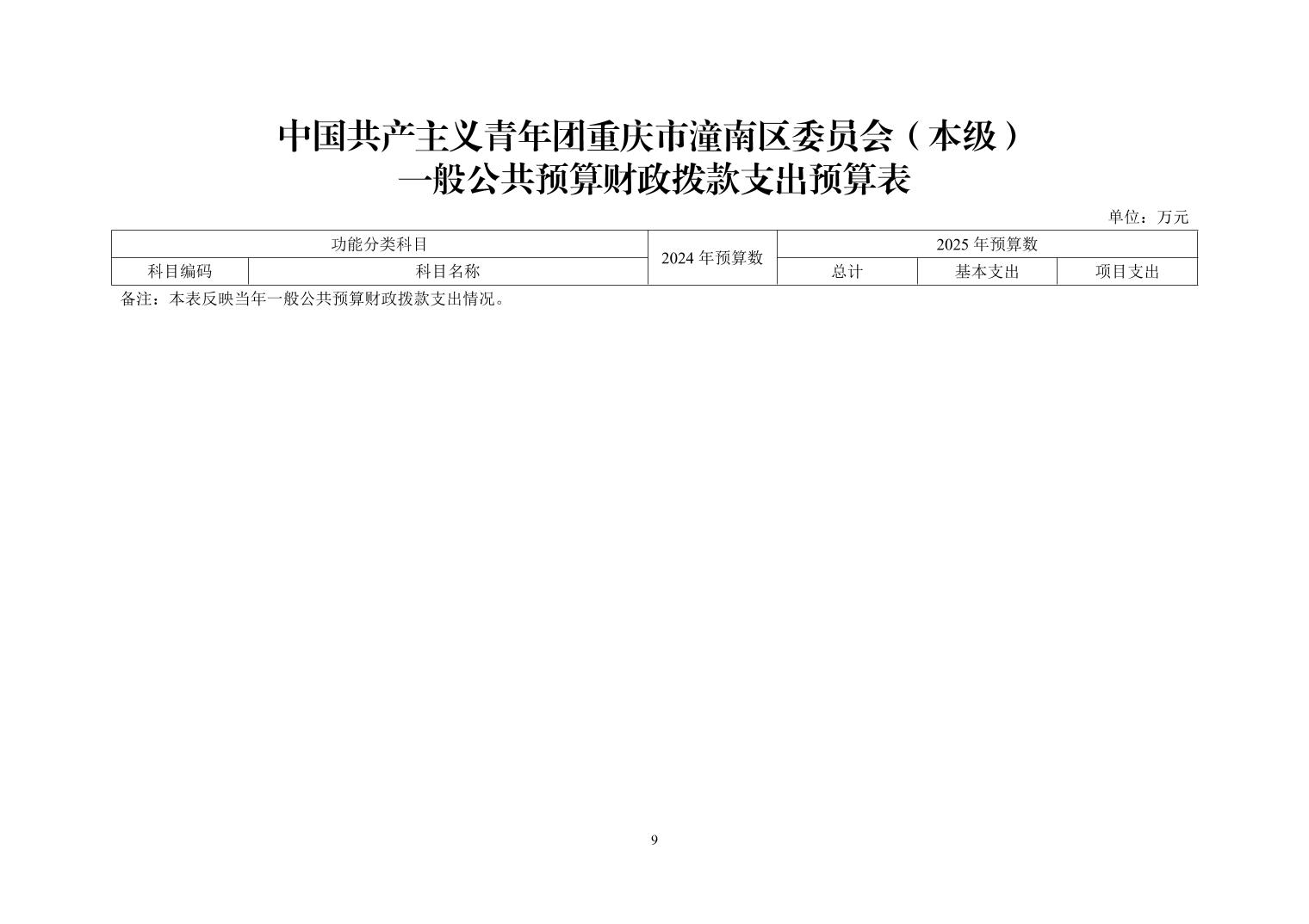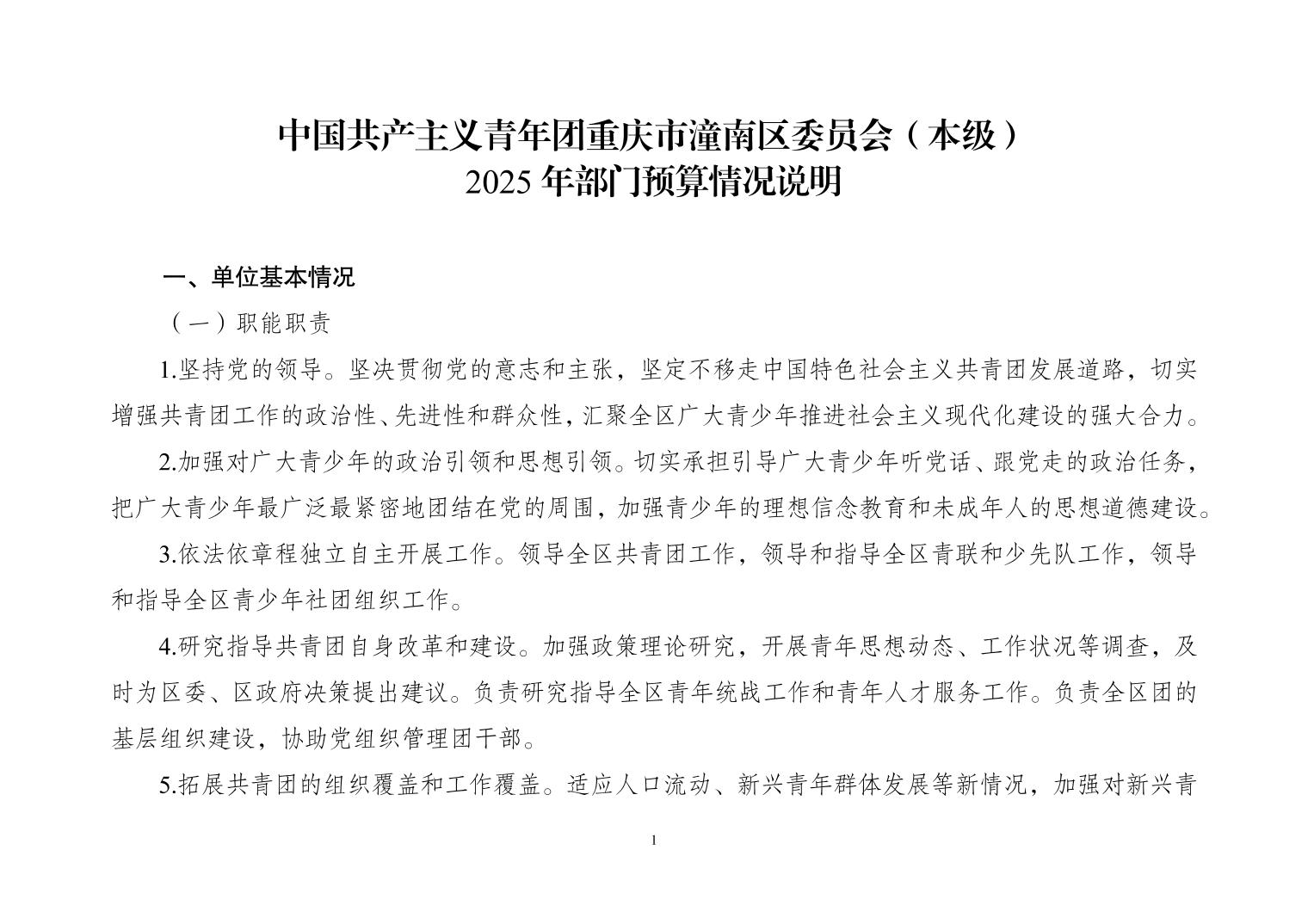 中国共产主义青年团重庆市潼南区委员会(本级) 2025 年部门预算情况说明