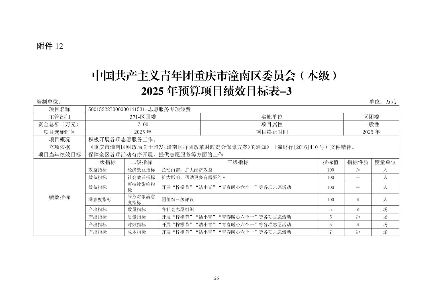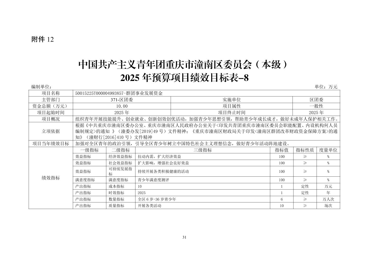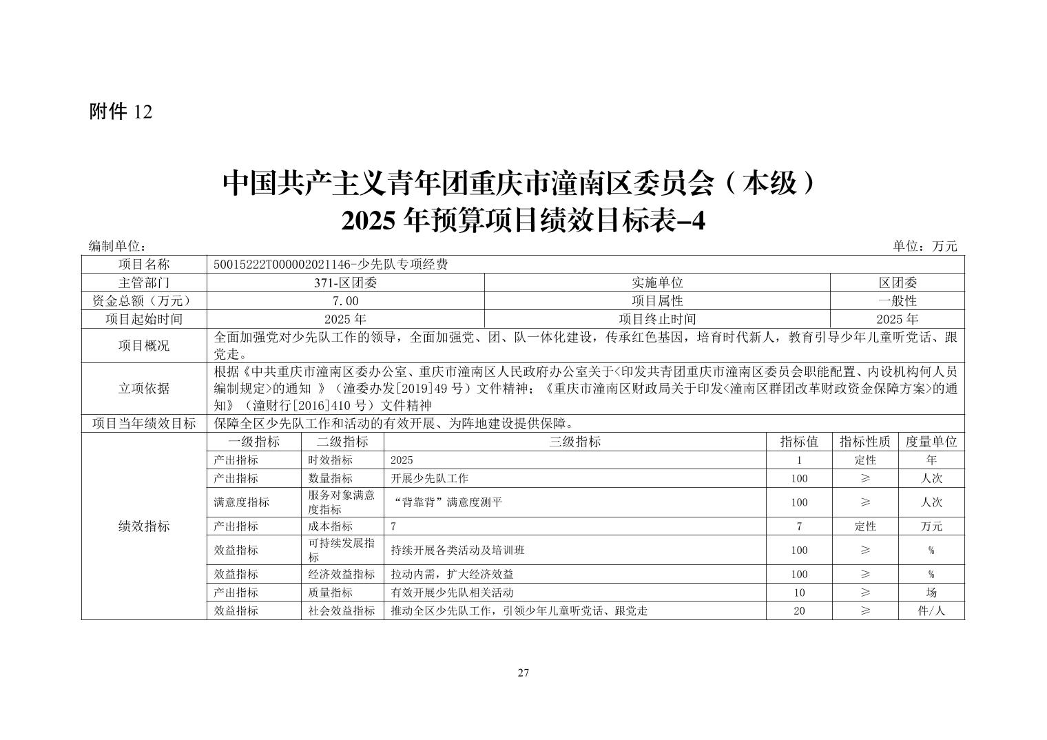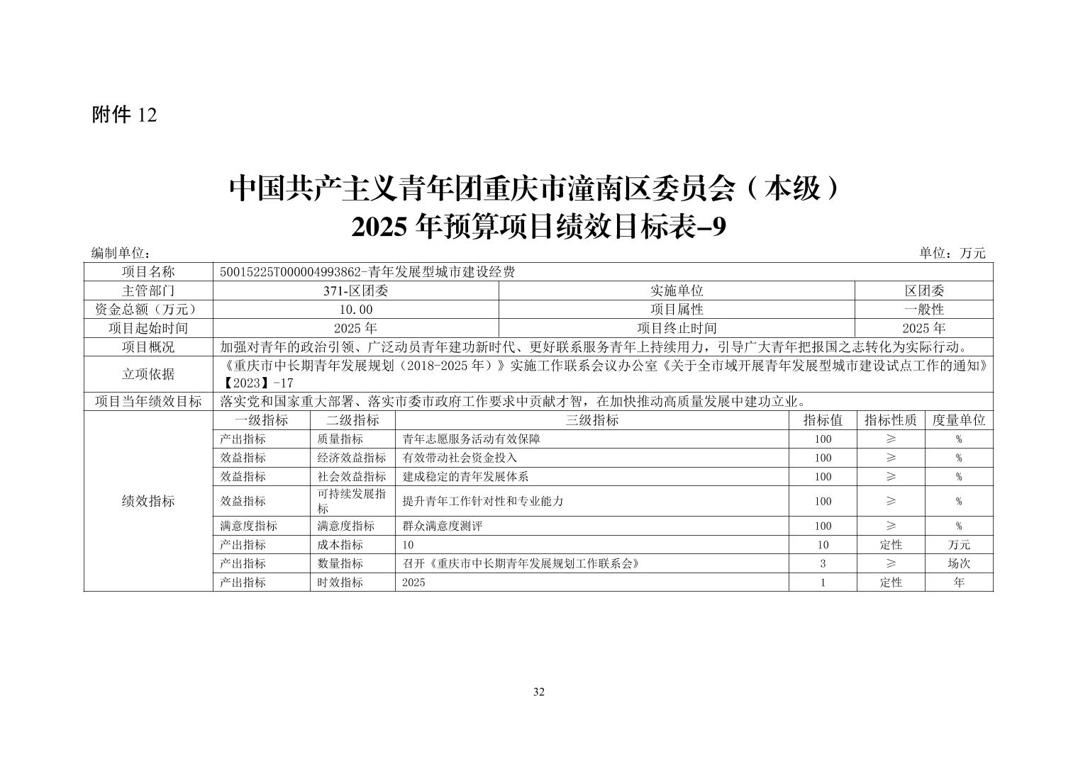 中国共产主义青年团重庆市潼南区委员会(本级) 2025 年部门预算情况说明