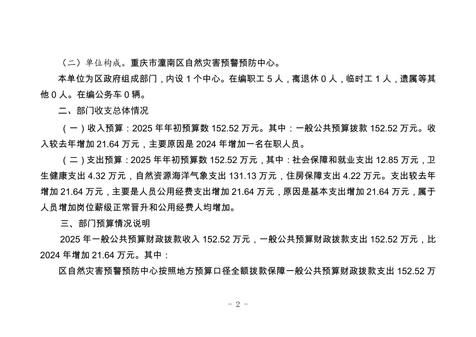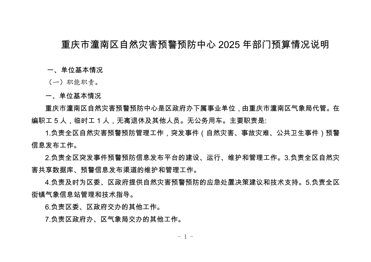 重庆市潼南区自然灾害预警预防中心2025年部门预算公开情况说明