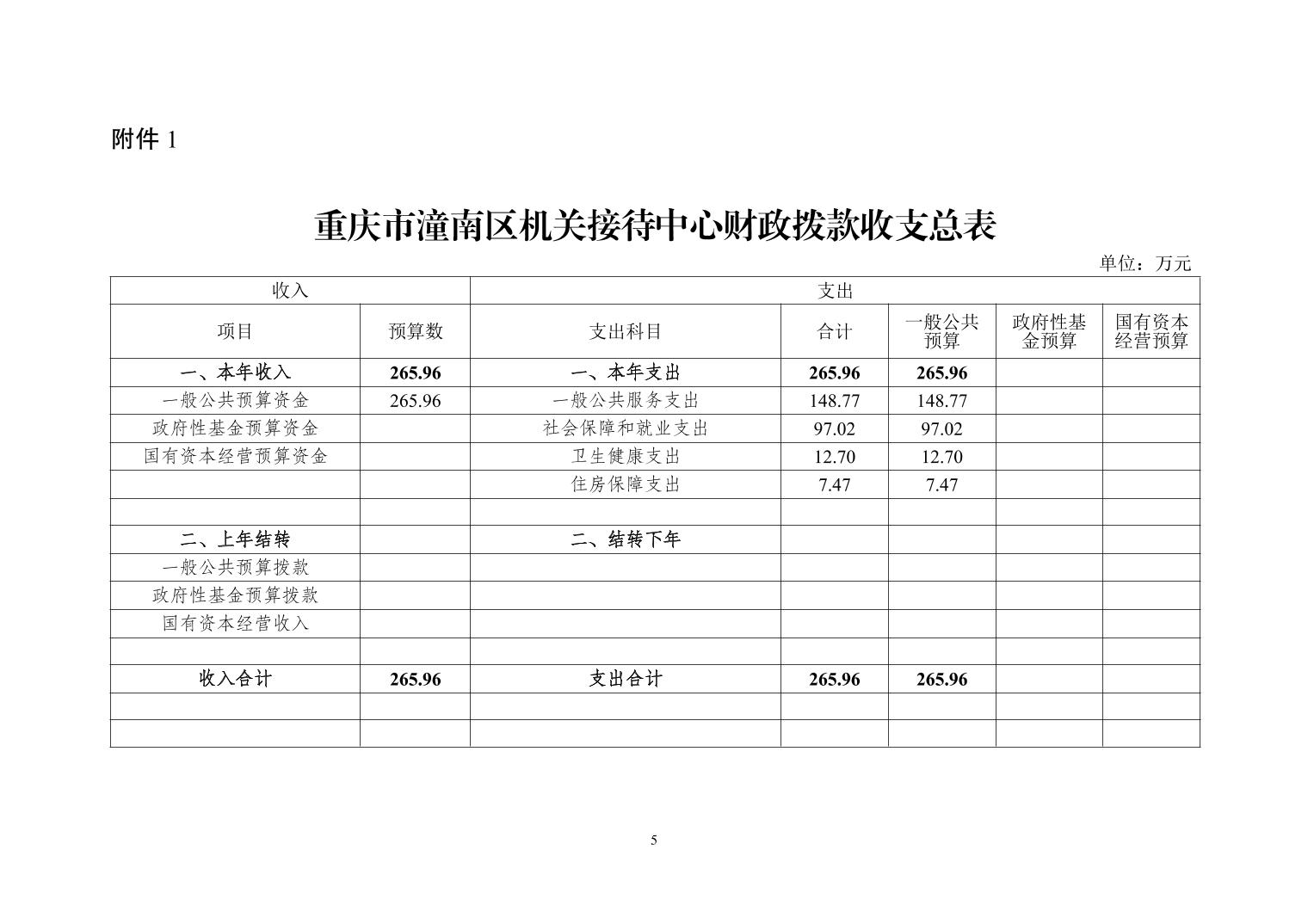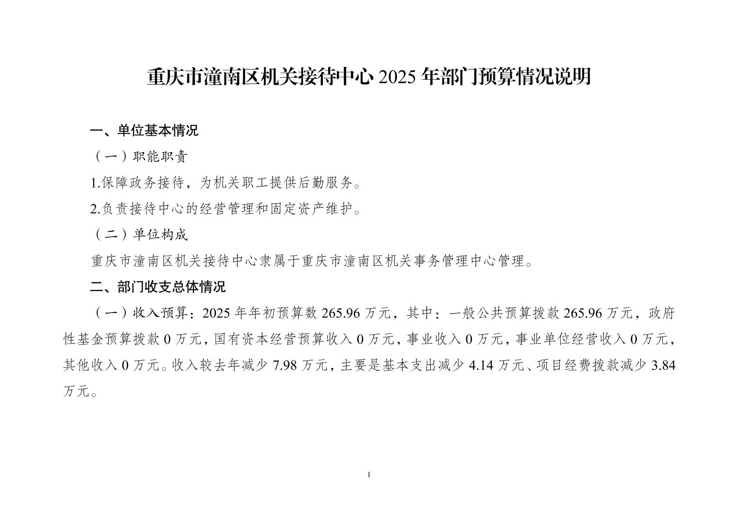 重庆市潼南区机关接待中心2025年度部门预算公开