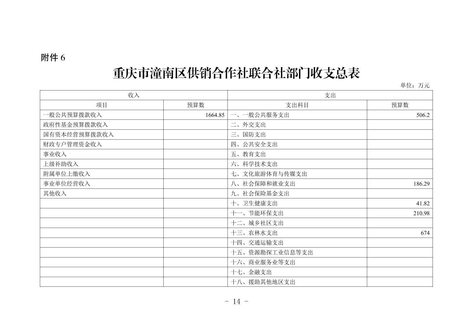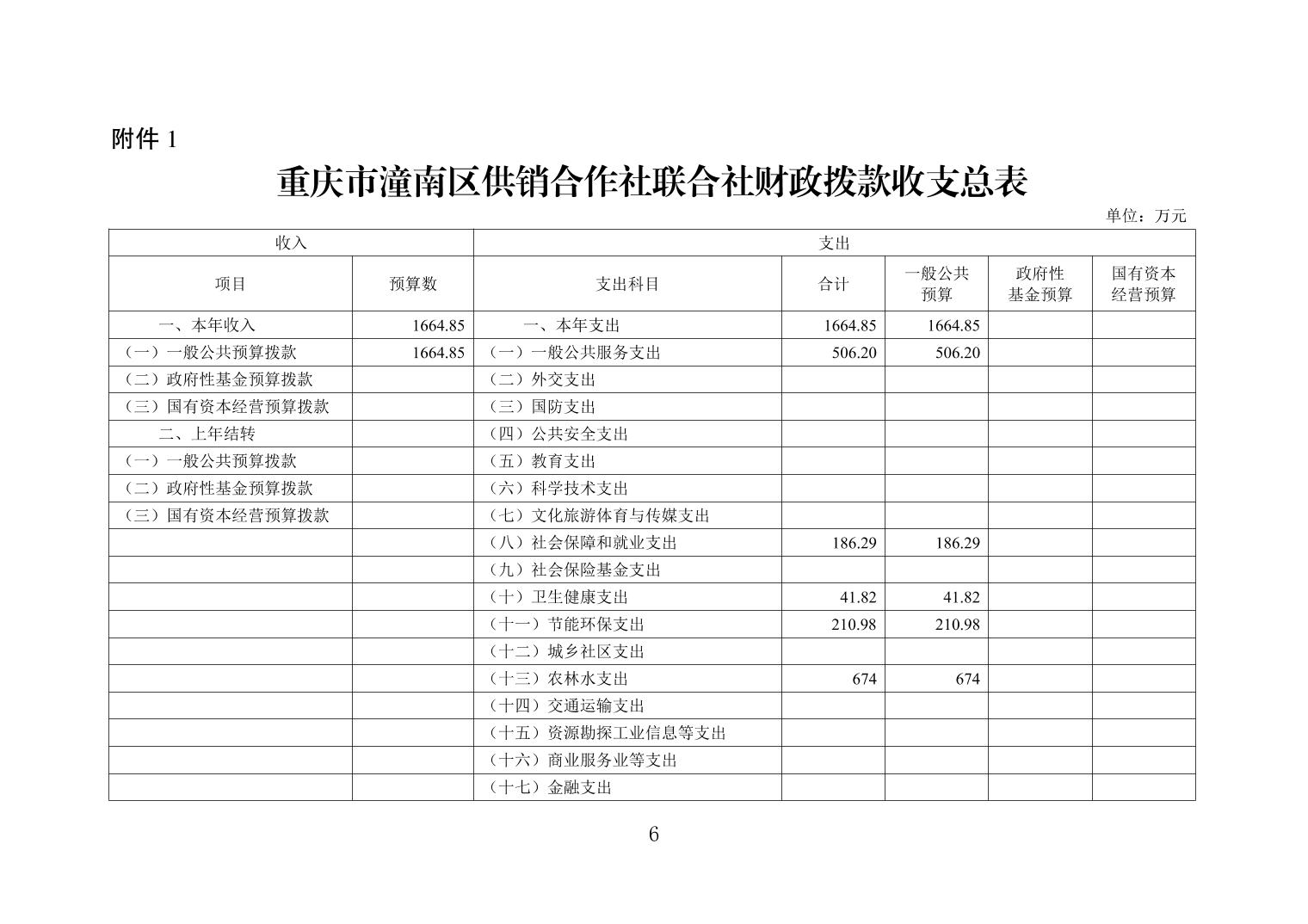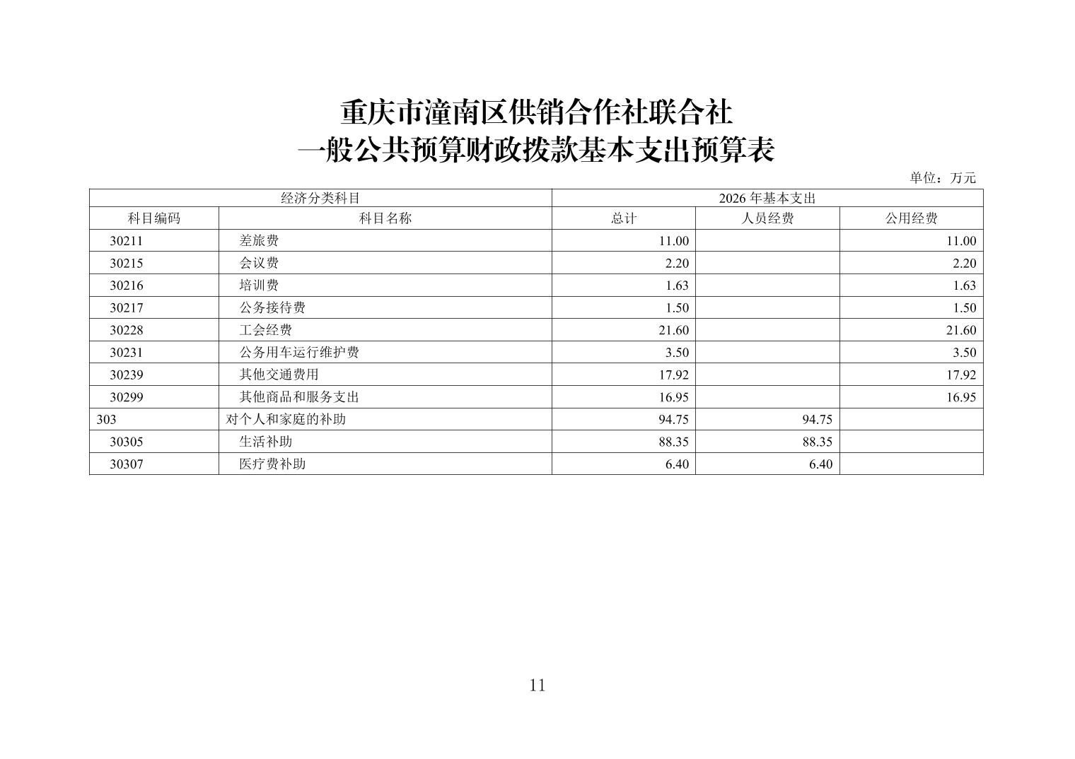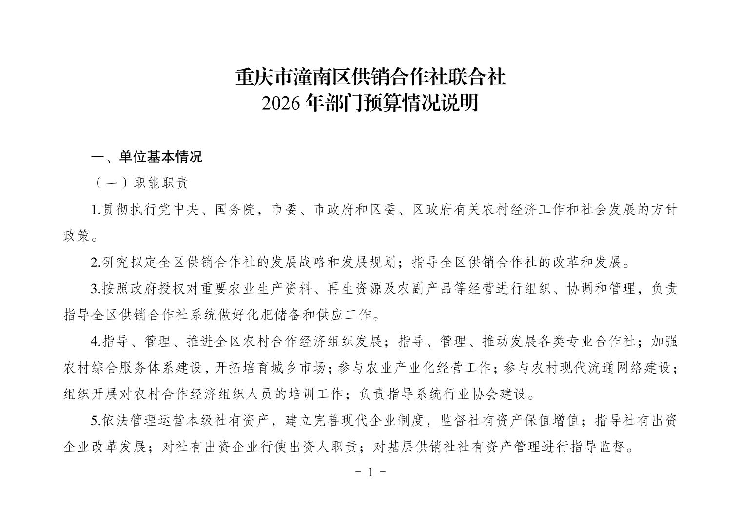 重庆市潼南区供销合作社联合社2026年度部门预算公开