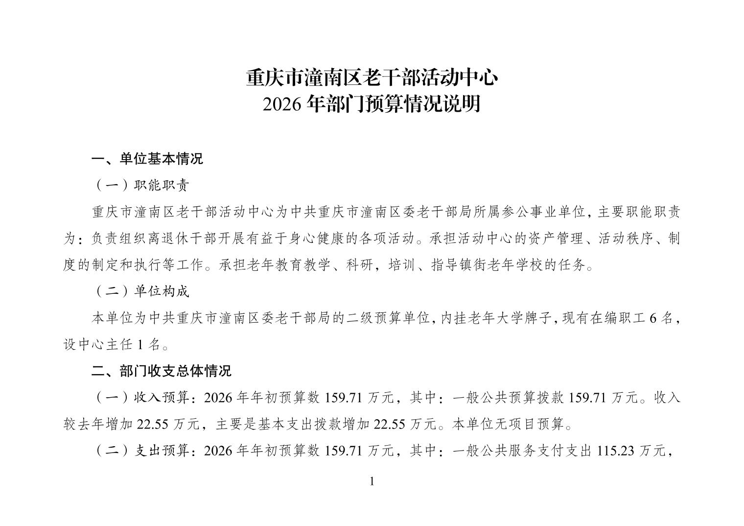 重庆市潼南区老干部活动中心2026年部门预算公开