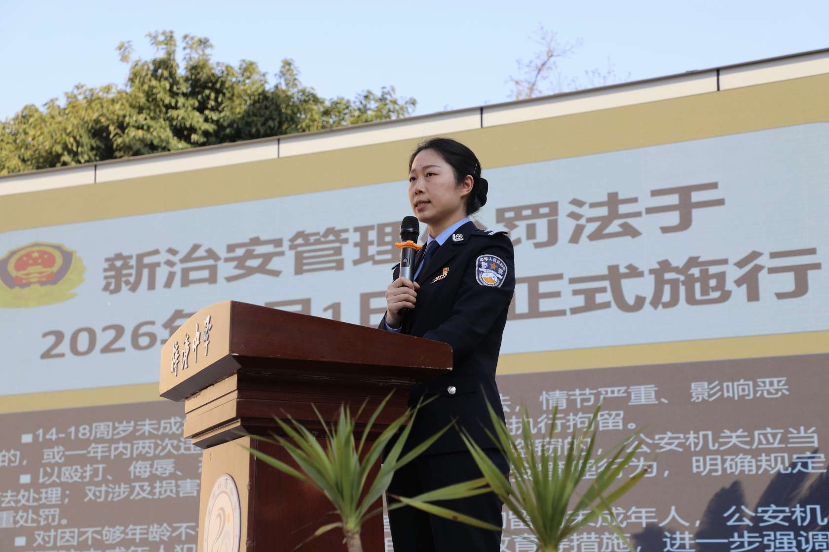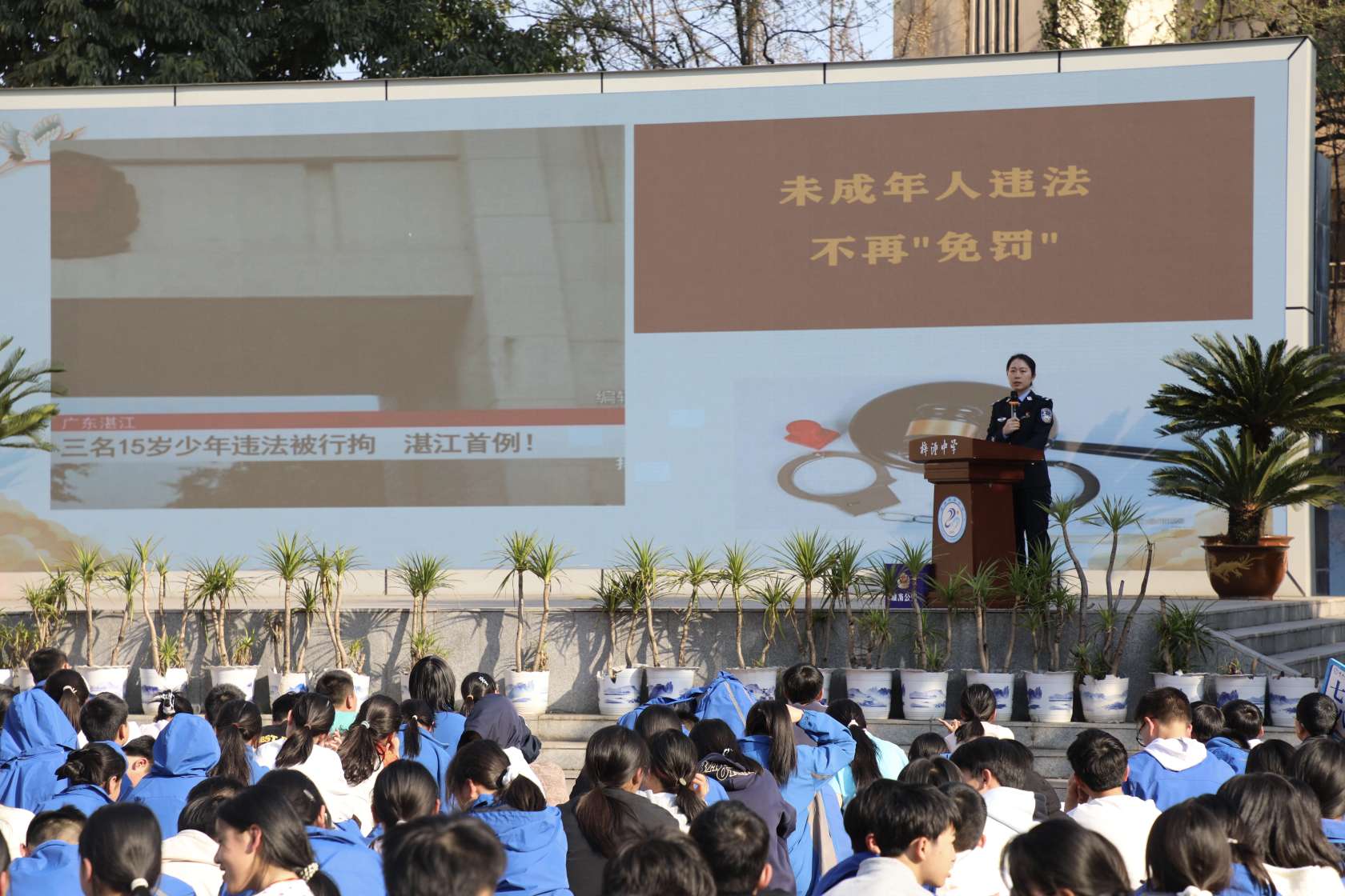 “同学们,你们知道吗?打架斗殴在法律层面要承担什么后果?”在梓潼中学的操场上,“冬琴护苗”工作室民警吴冬琴以新修订的《治安管理处罚法》为切入点,用一个个真实案例,为同学们划清了法律“红线”。