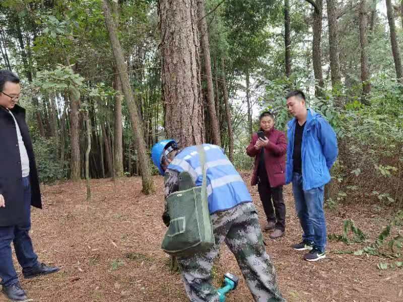 近日,为提高松树免疫力,预防松树受松材线虫、松墨天牛的迫害,保护好现有未感病松树,大幅降低疫区病死松树数量,逐步实现有针对性地拔除疫点,潼南区林业局森防站负责人唐亮带领松材线虫病专业防治人员到潼南区新胜镇盘山村4社李家坪113号小班给松树实施“打孔注药”。