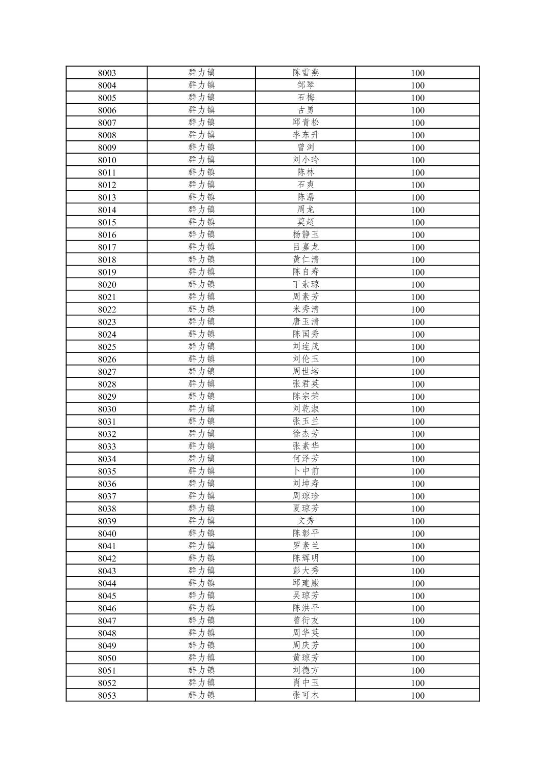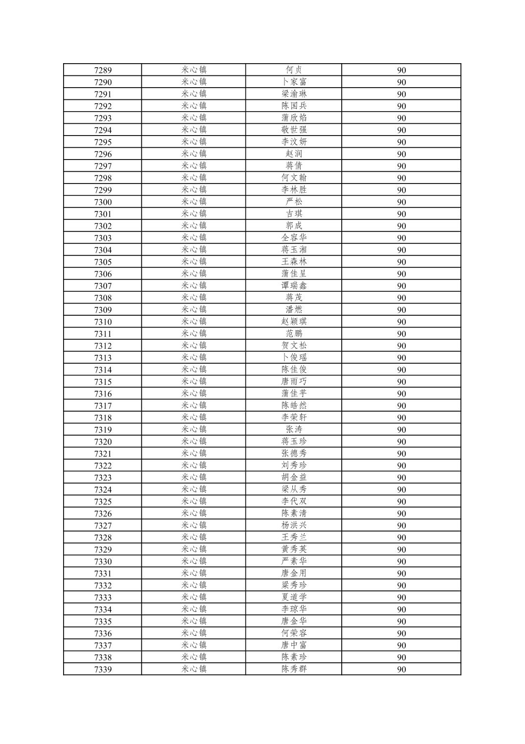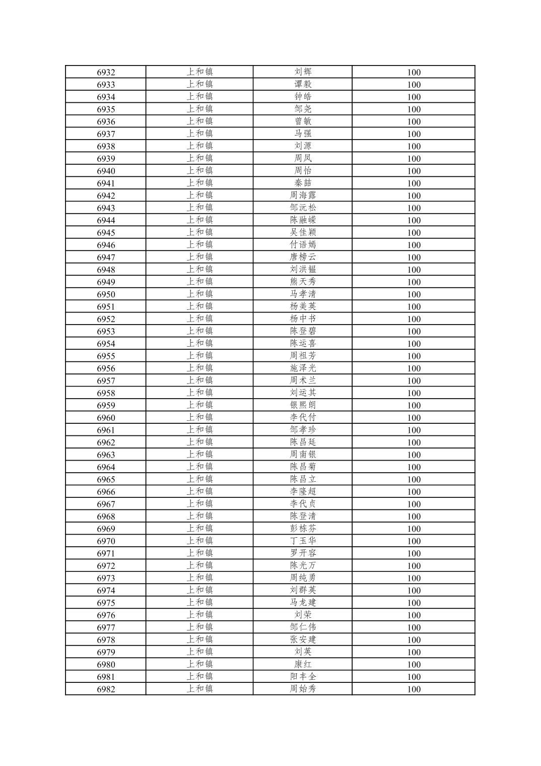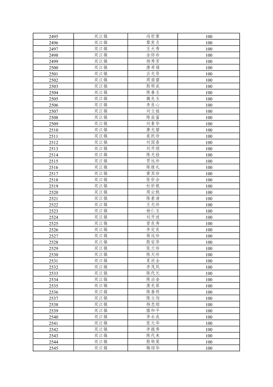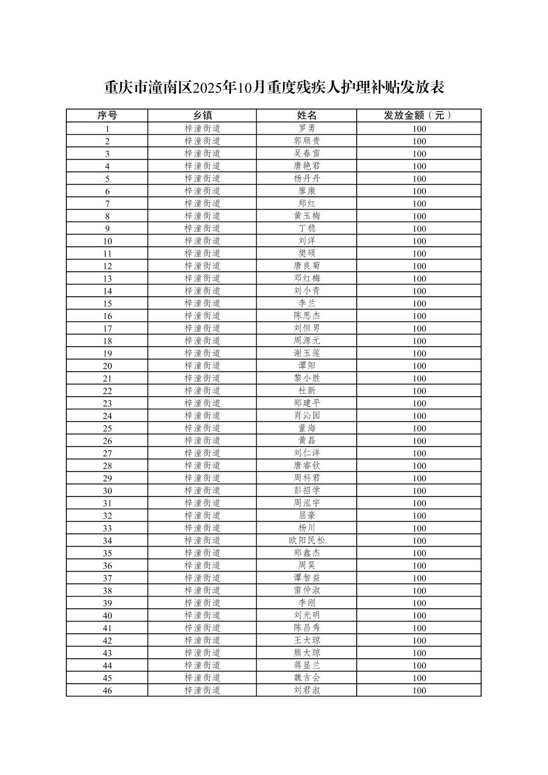 重庆市潼南区2025年10月重度残疾人护理补贴发放表