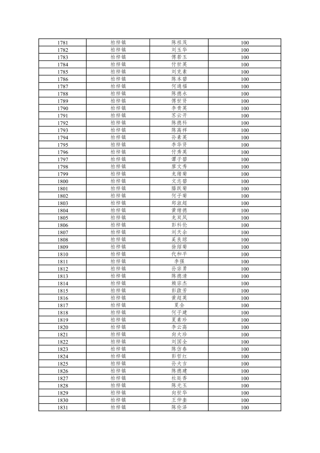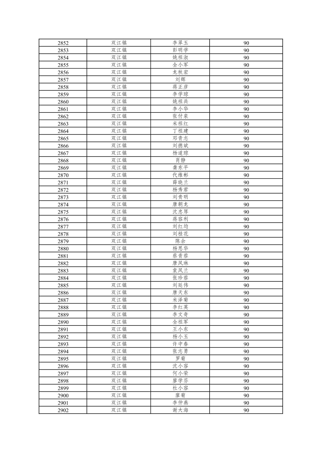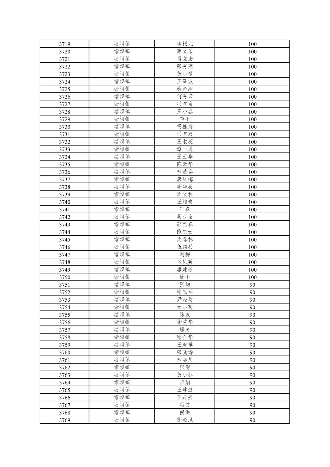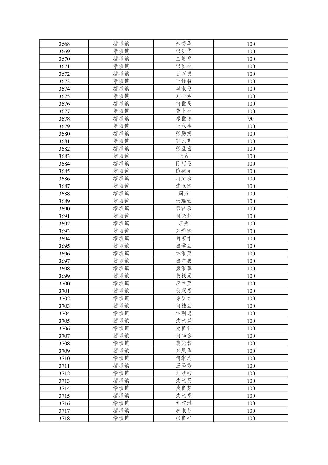 重庆市潼南区2025年10月重度残疾人护理补贴发放表