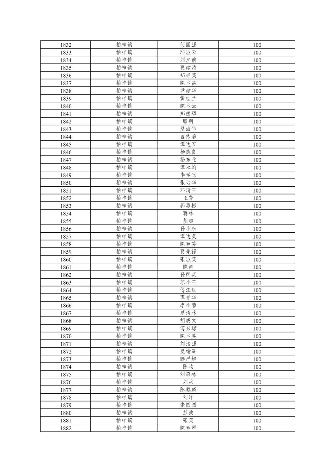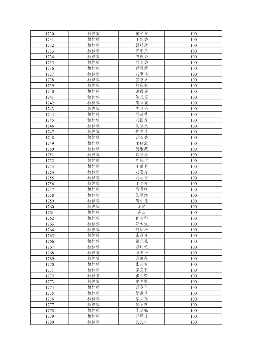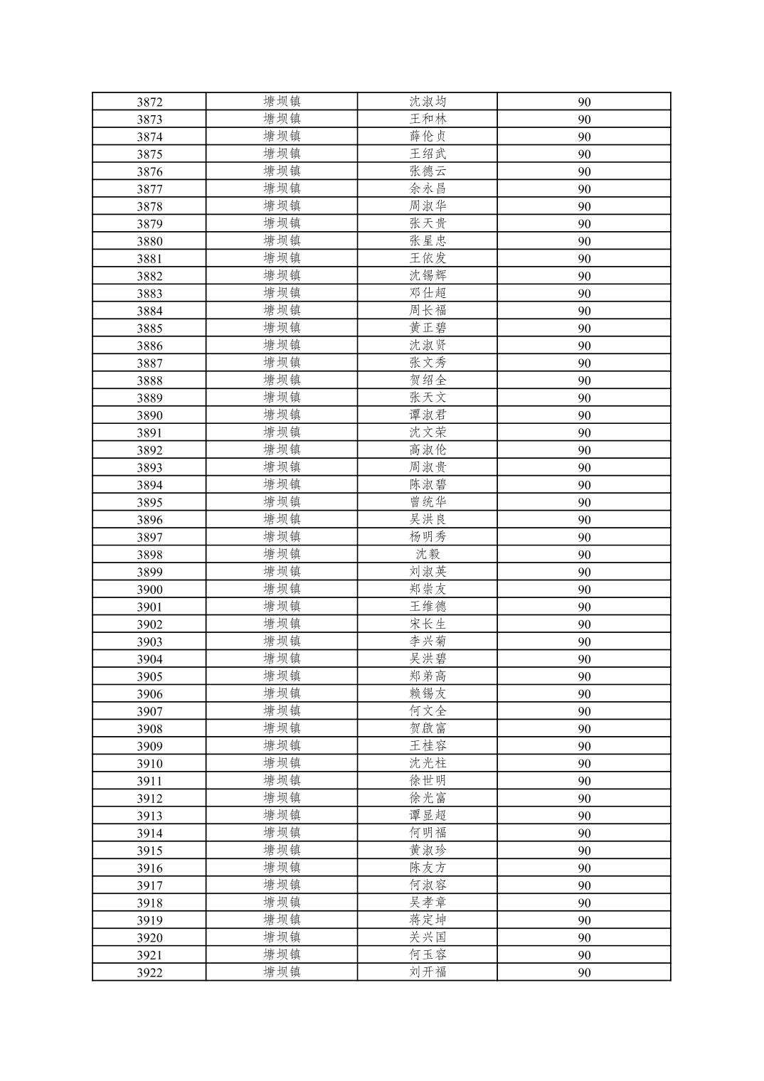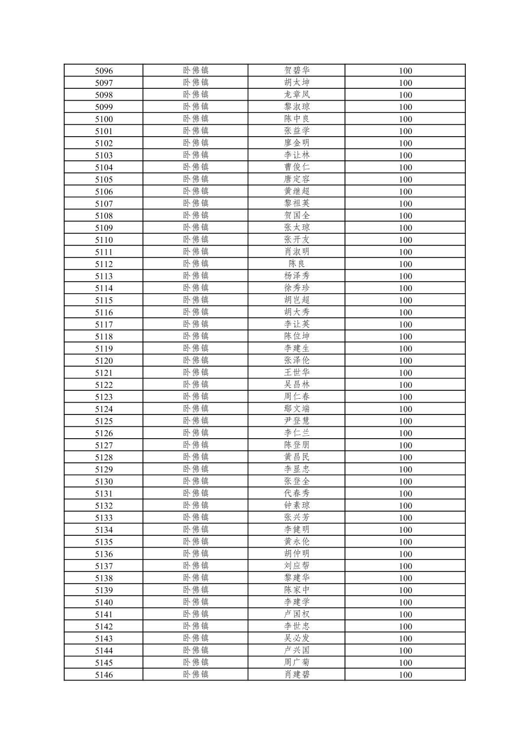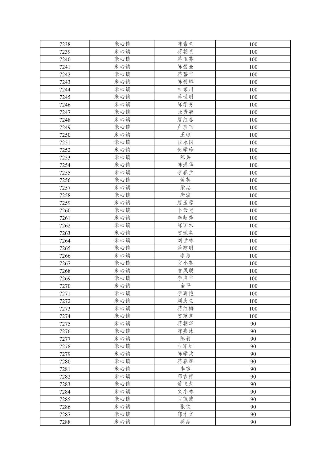 重庆市潼南区2025年10月重度残疾人护理补贴发放表