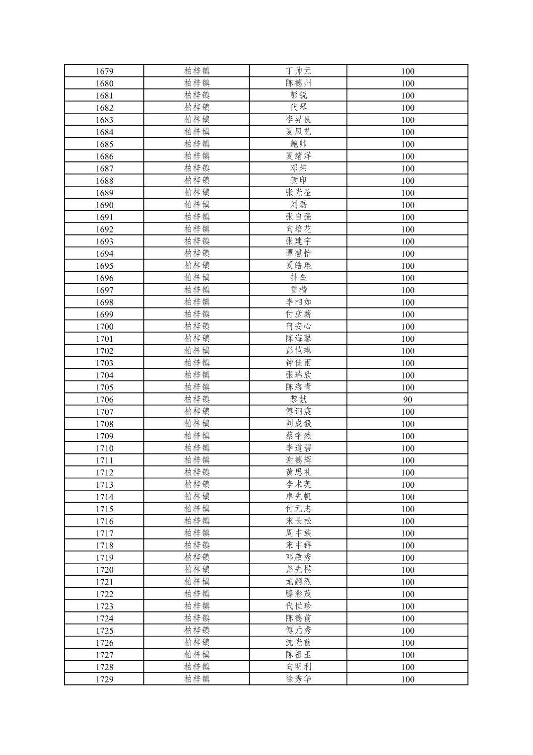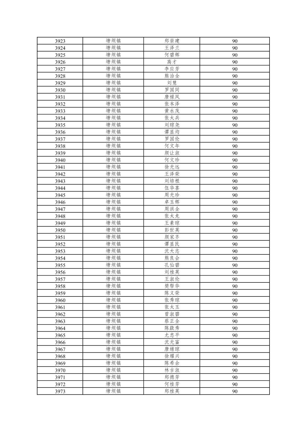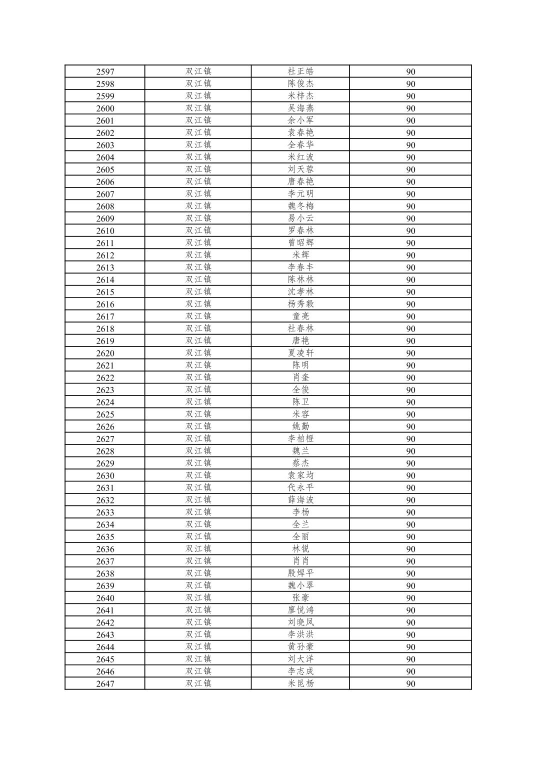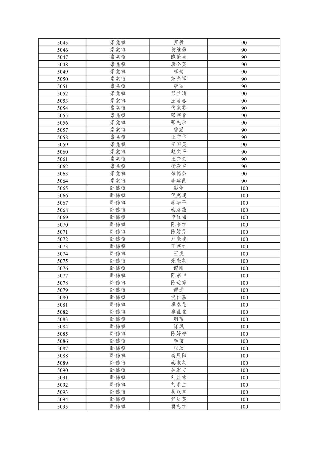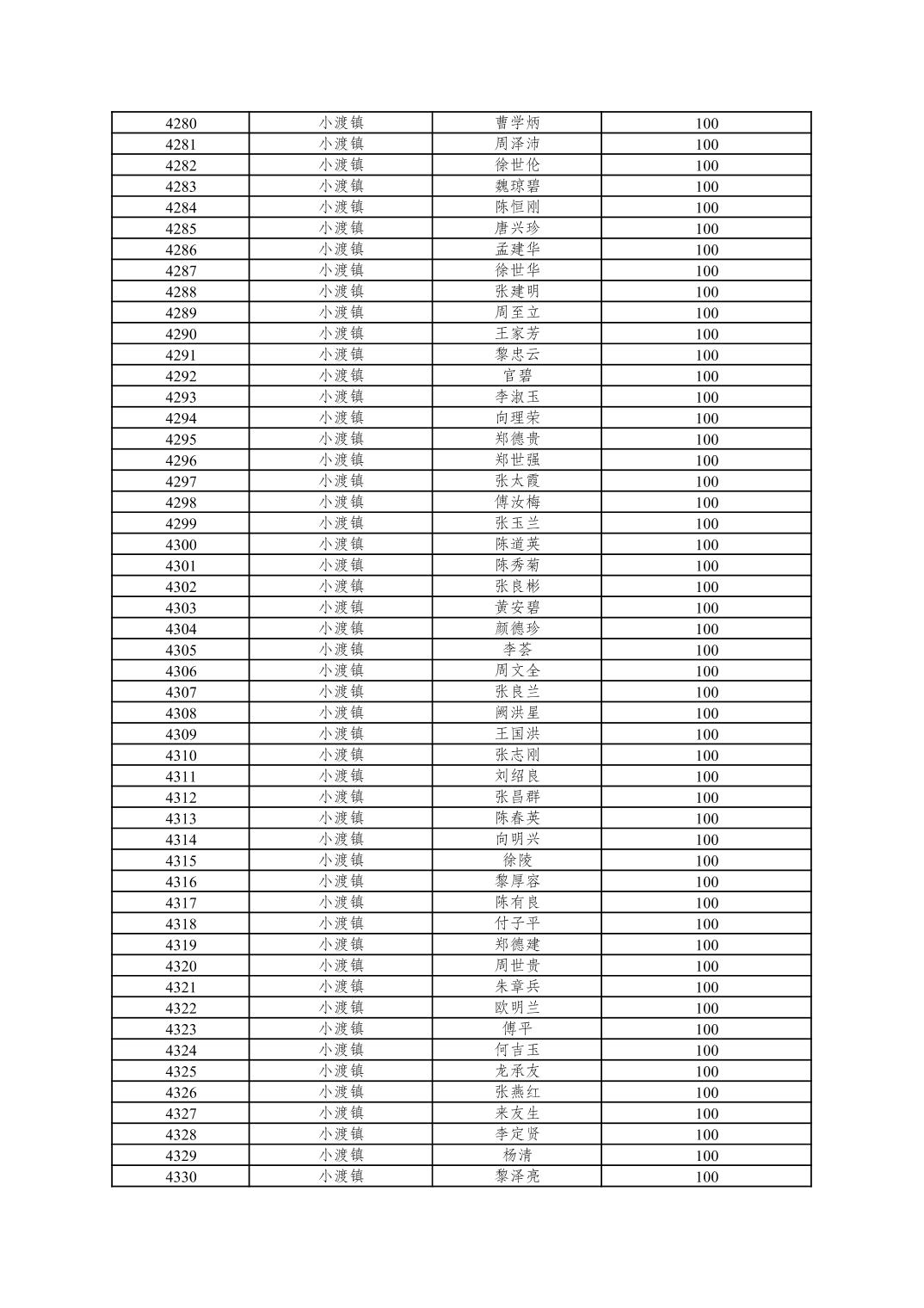 重庆市潼南区2025年10月重度残疾人护理补贴发放表