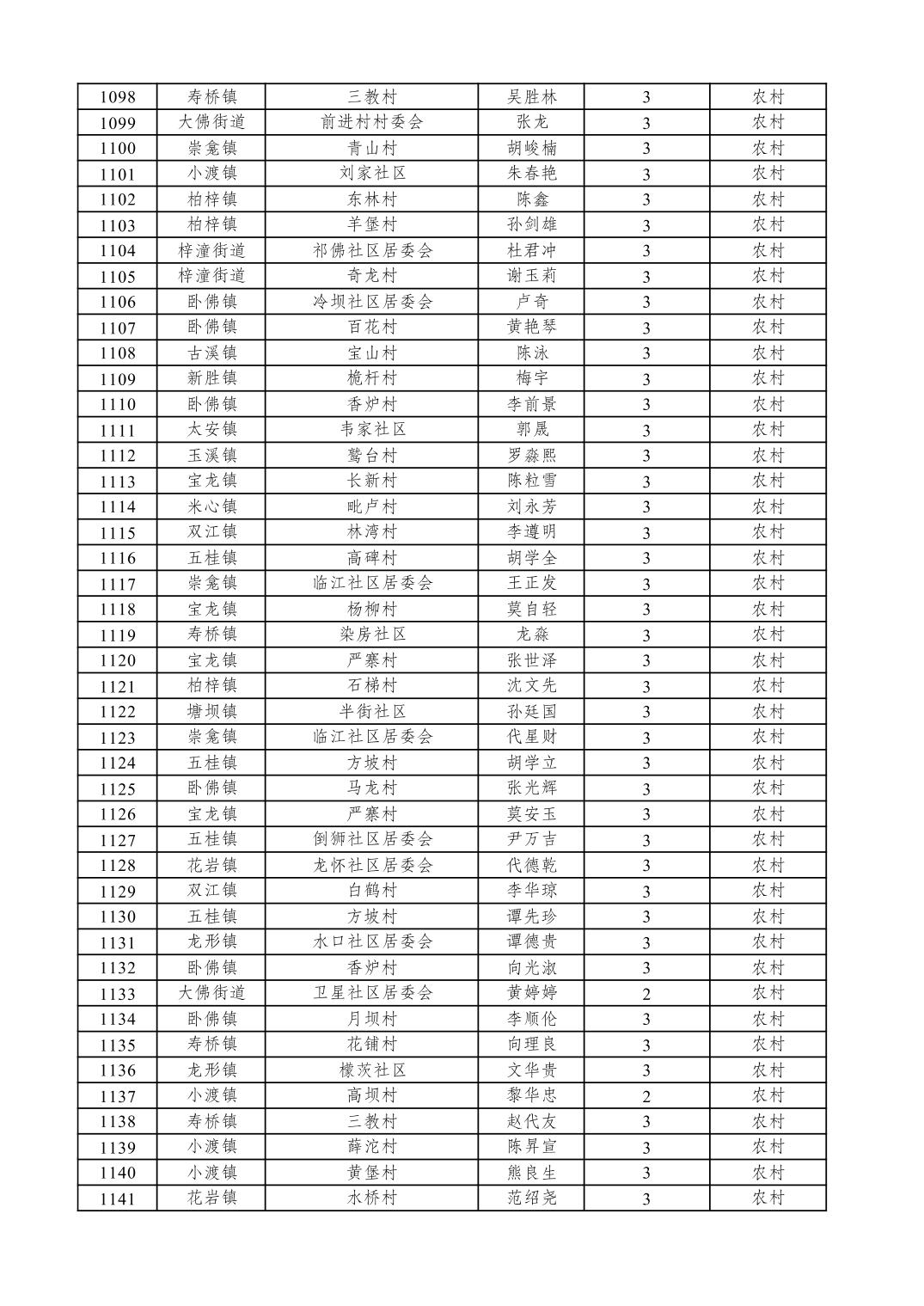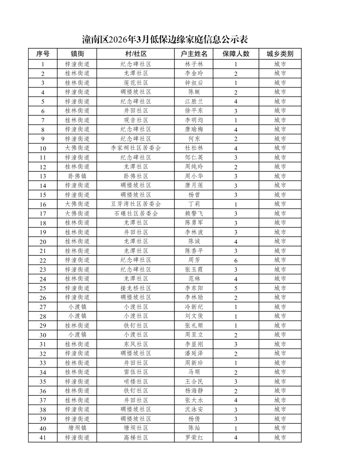 潼南区2026年3月低保边缘家庭信息公示表