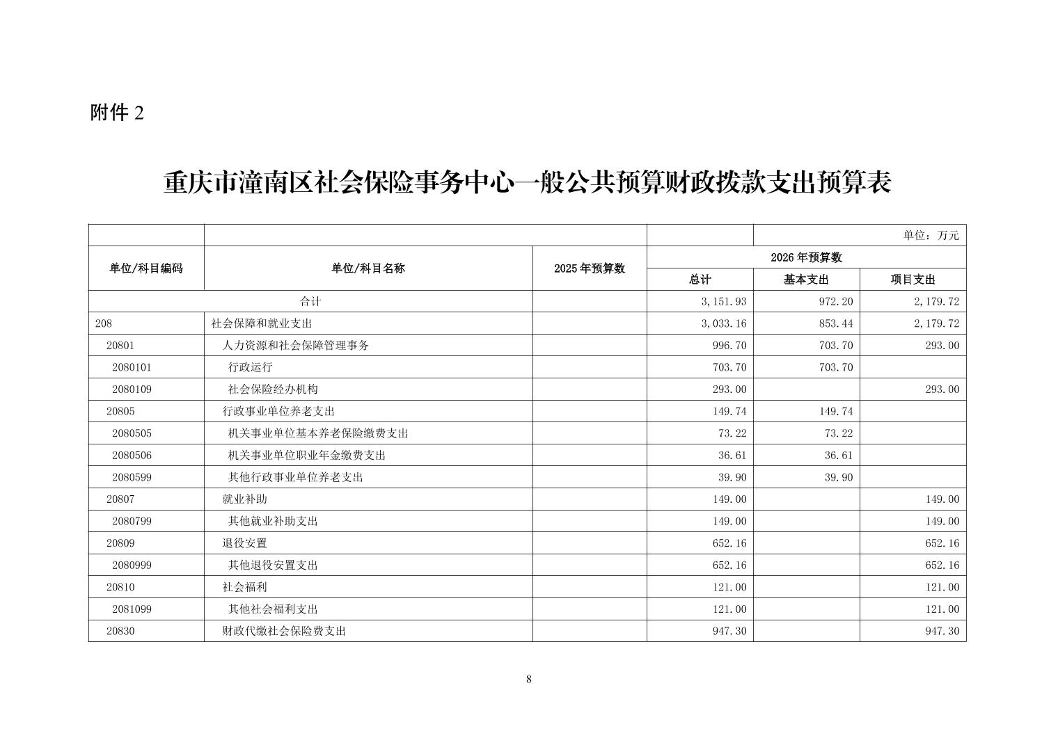 重庆市潼南区社会保险事务中心2026年部门预算情况说明