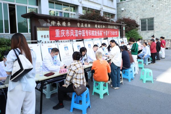活动当天,重庆市中医风湿特色诊疗中心专家团队在门诊楼前广场开展“风湿免疫性疾病防治”公益义诊。专家们为前来咨询的市民把脉问诊、辨证开方,细致解答关于关节疼痛、肿胀、晨僵、怕风怕冷等常见风湿症状的疑惑,并针对有风湿病家族史、长期处于潮湿环境、反复发作未规范治疗等高危人群,给出个性化的防治建议和日常调护方案。现场还为市民免费测量血压,提供健康咨询。