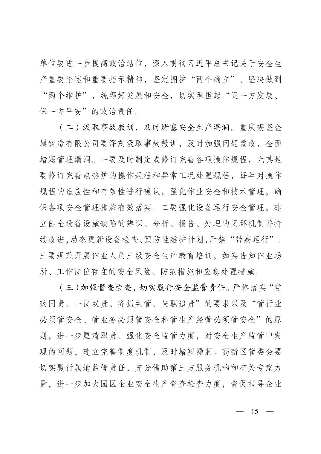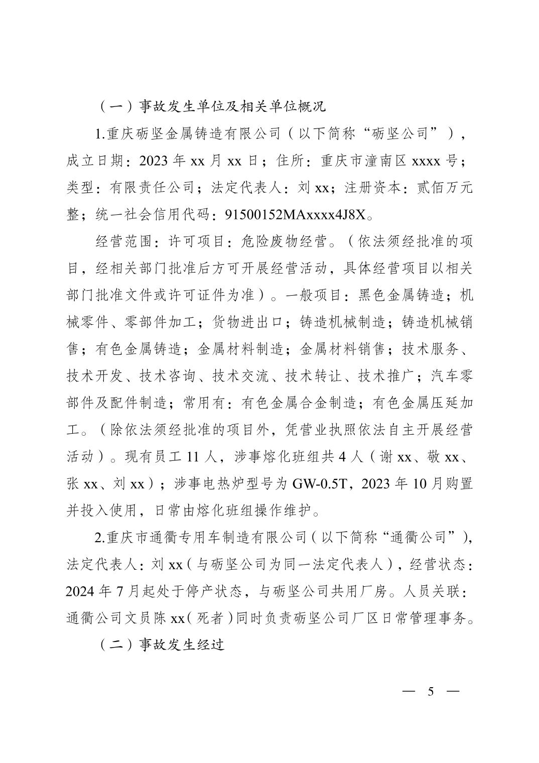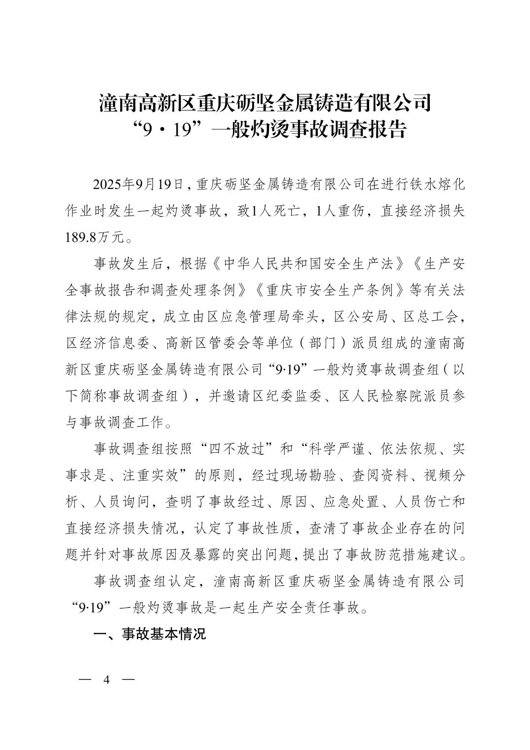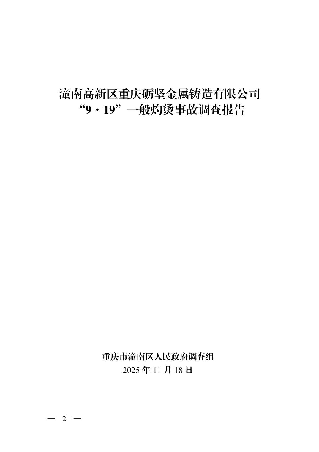 重庆市潼南区人民政府关于潼南高新区重庆砺坚金属铸造有限公司“9·19”一般灼烫事故调查报告公示