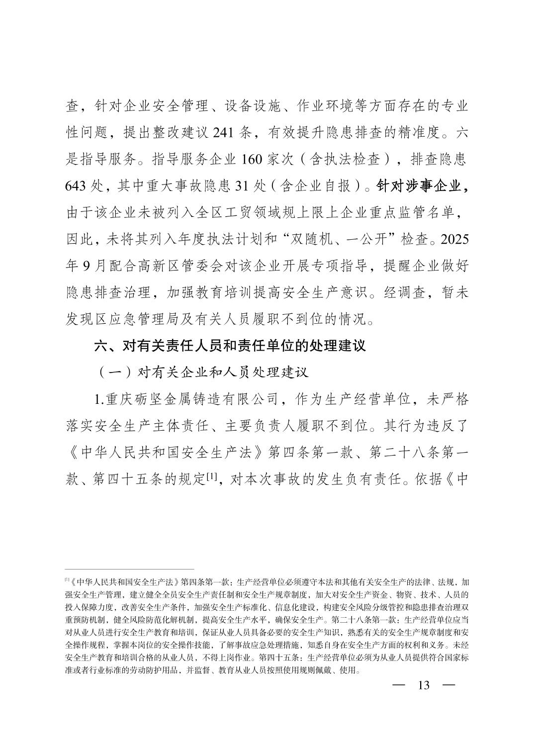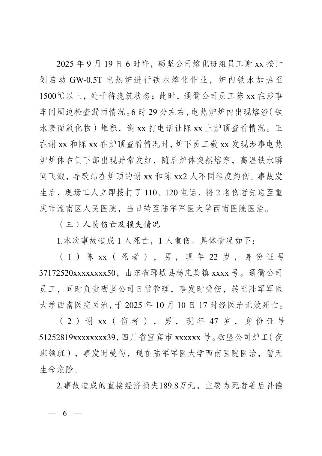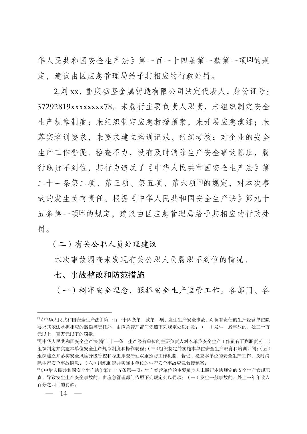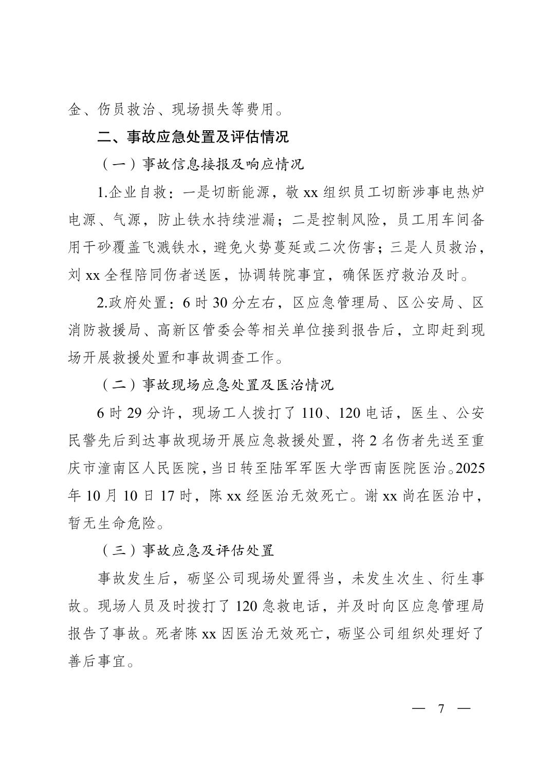 重庆市潼南区人民政府关于潼南高新区重庆砺坚金属铸造有限公司“9·19”一般灼烫事故调查报告公示