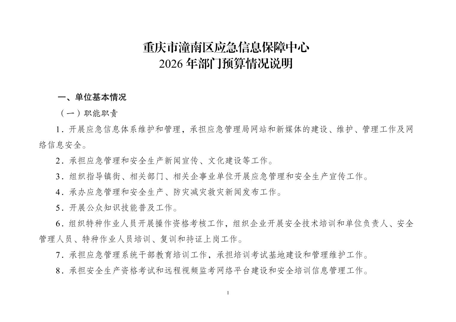 重庆市潼南区应急信息保障中心2026年部门预算公开