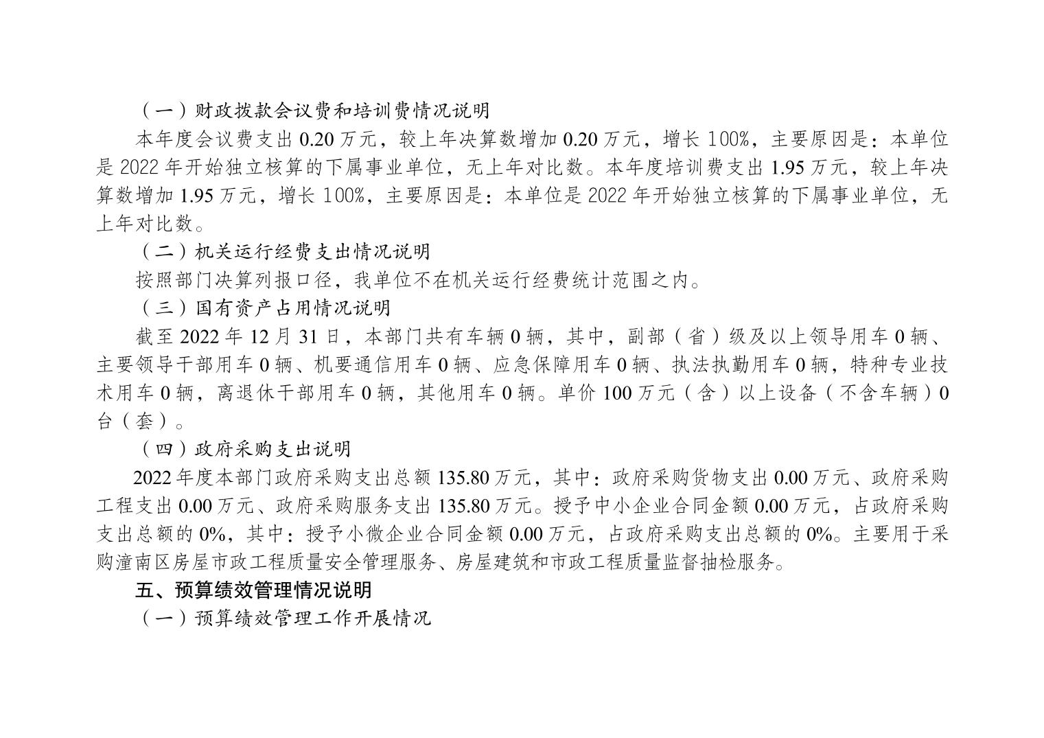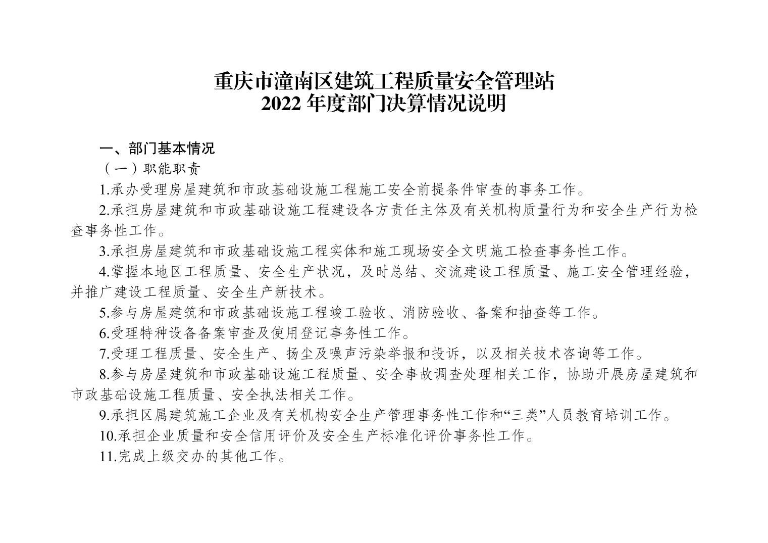重庆市潼南区建筑工程质量安全管理站2022年度部门决算情况说明