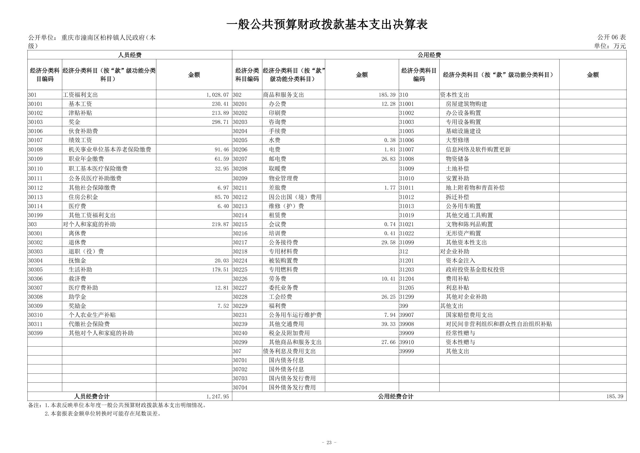 重庆市潼南区柏梓镇人民政府(本级)2023年度决算公开说明