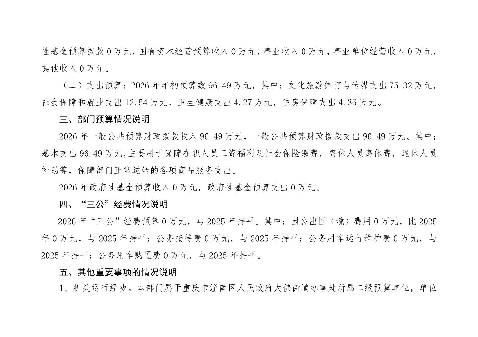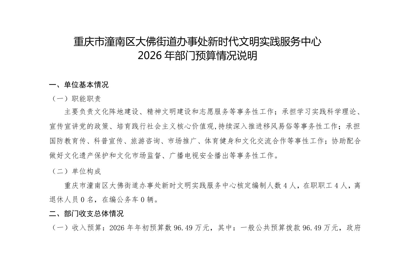 重庆市潼南区大佛街道办事处新时代文明实践服务中心2026年部门预算公开