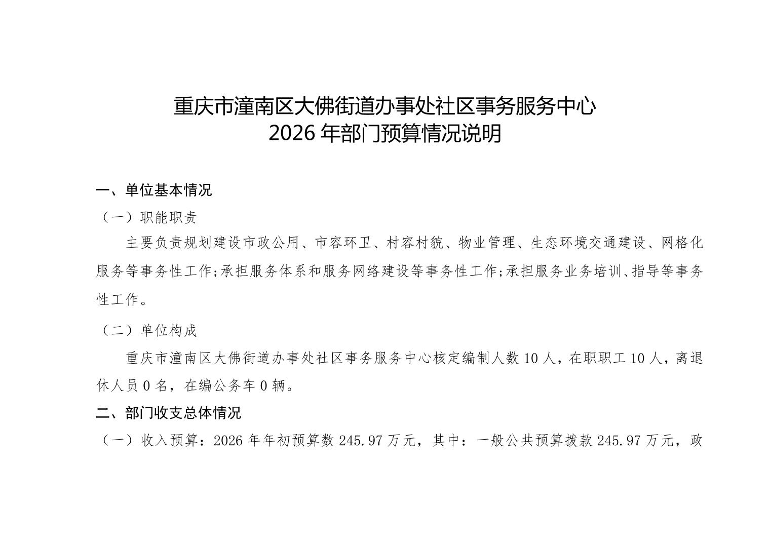 重庆市潼南区大佛街道办事处社区事务服务中心2026年部门预算公开