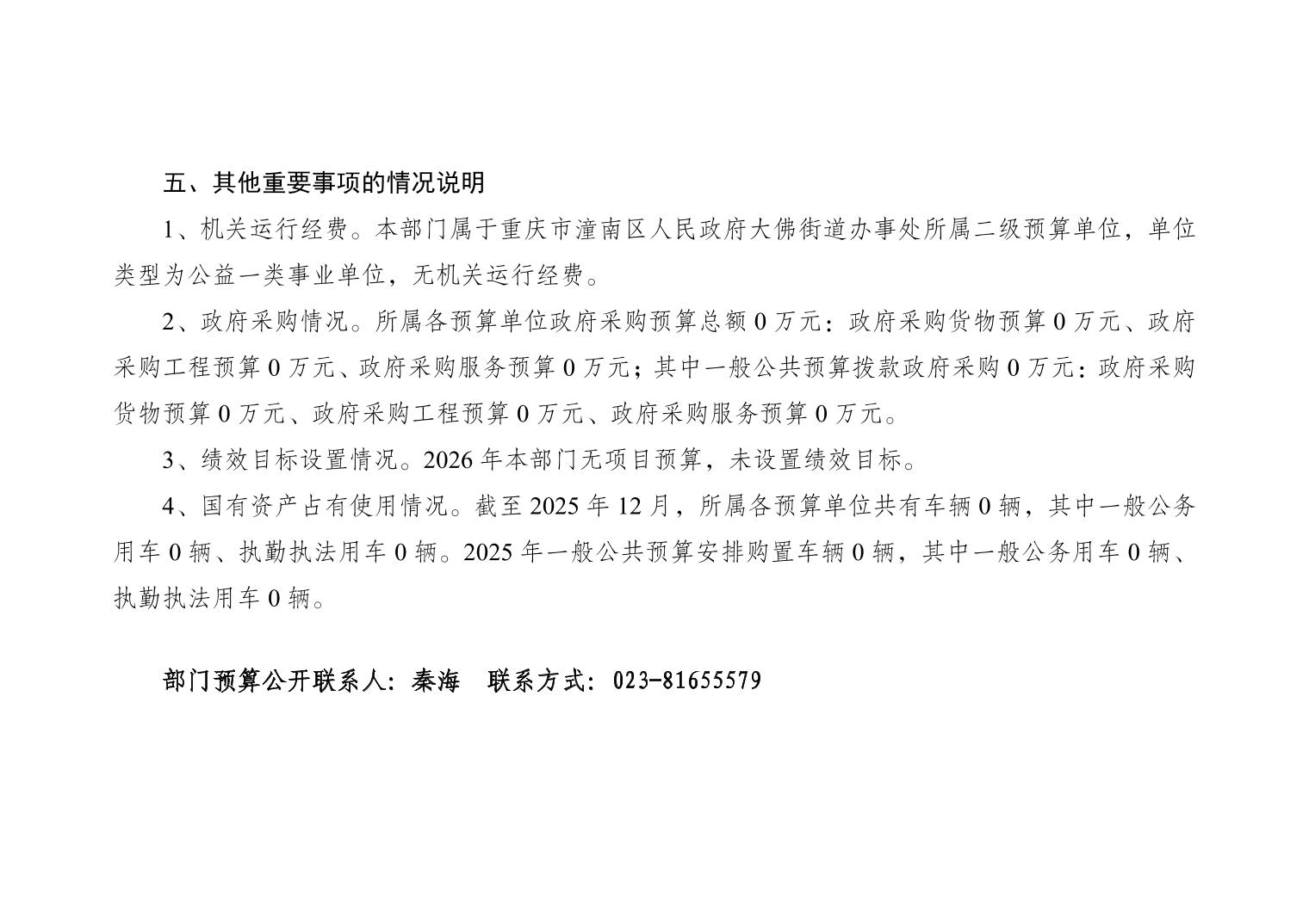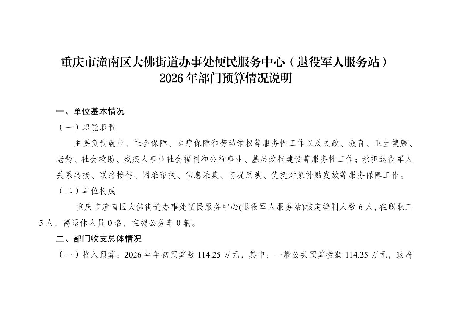 重庆市潼南区大佛街道办事处便民服务中心(退役军人服务站)2026年部门预算公开