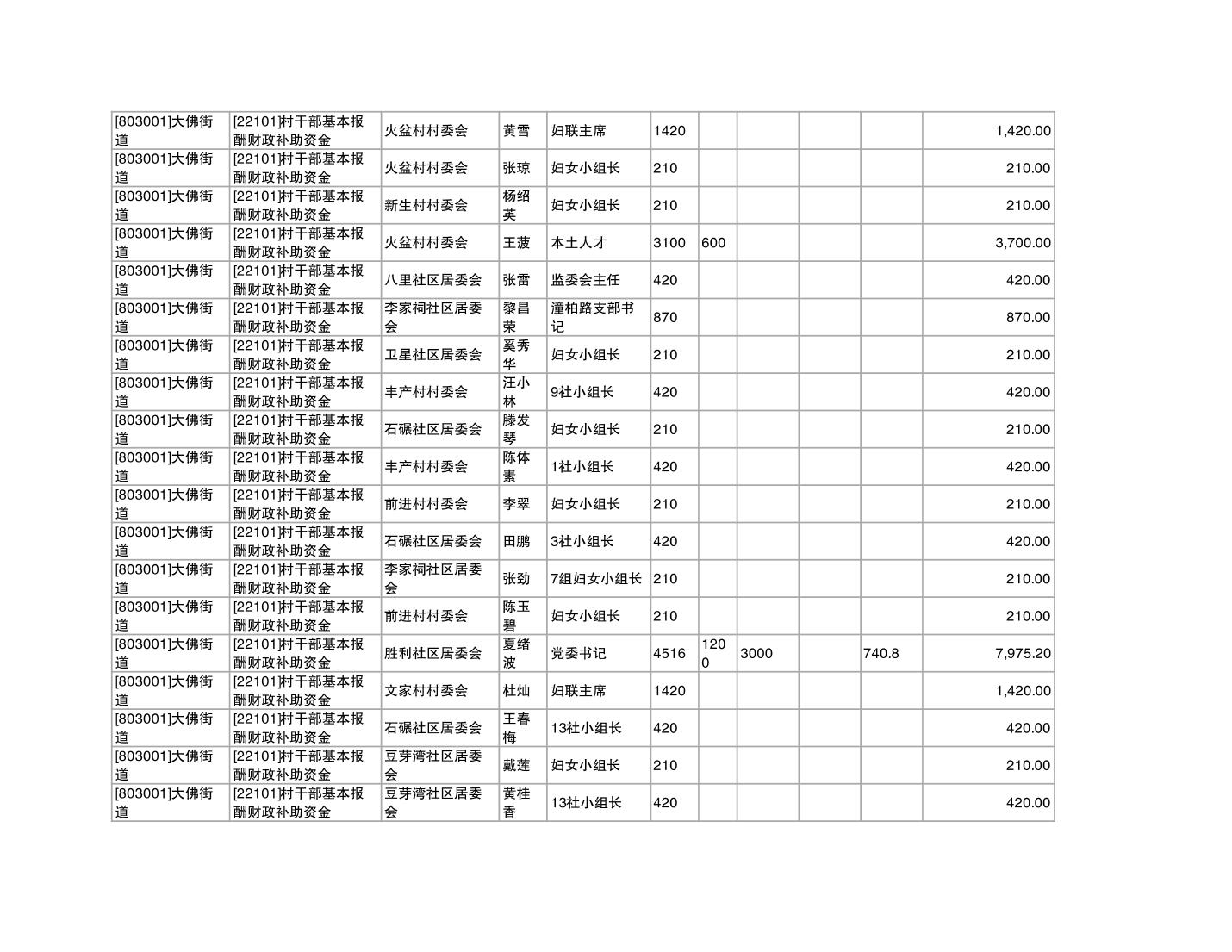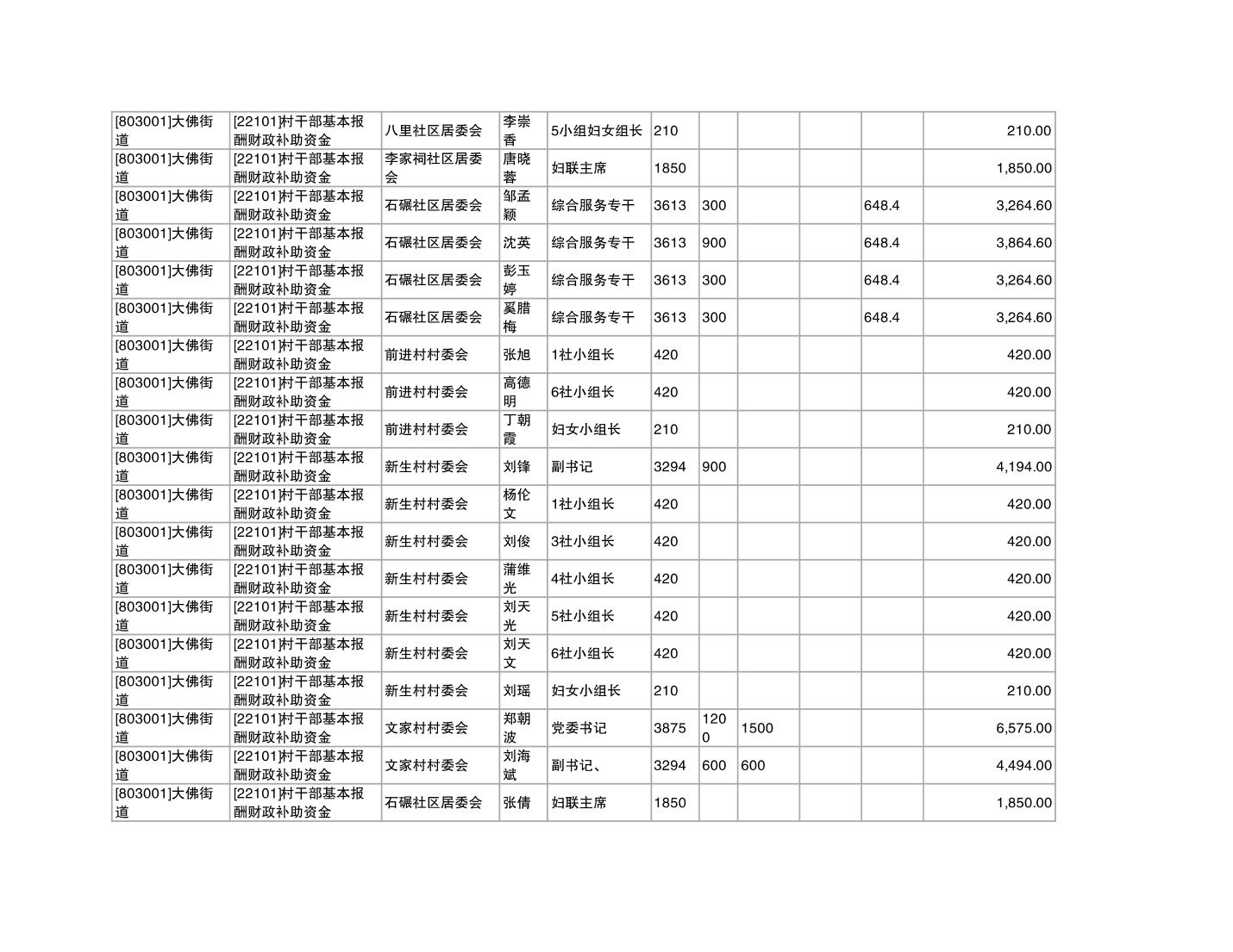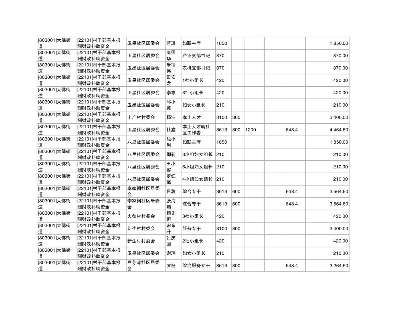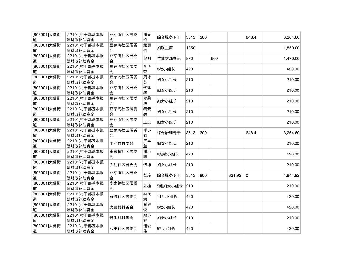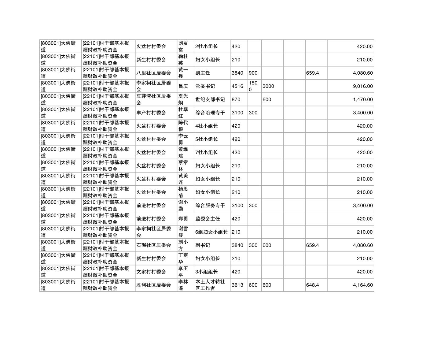 重庆市潼南区大佛街道2025年12月村社干部报酬补助公示表