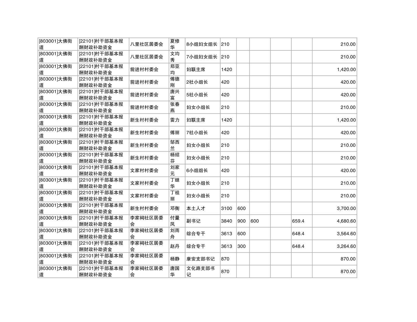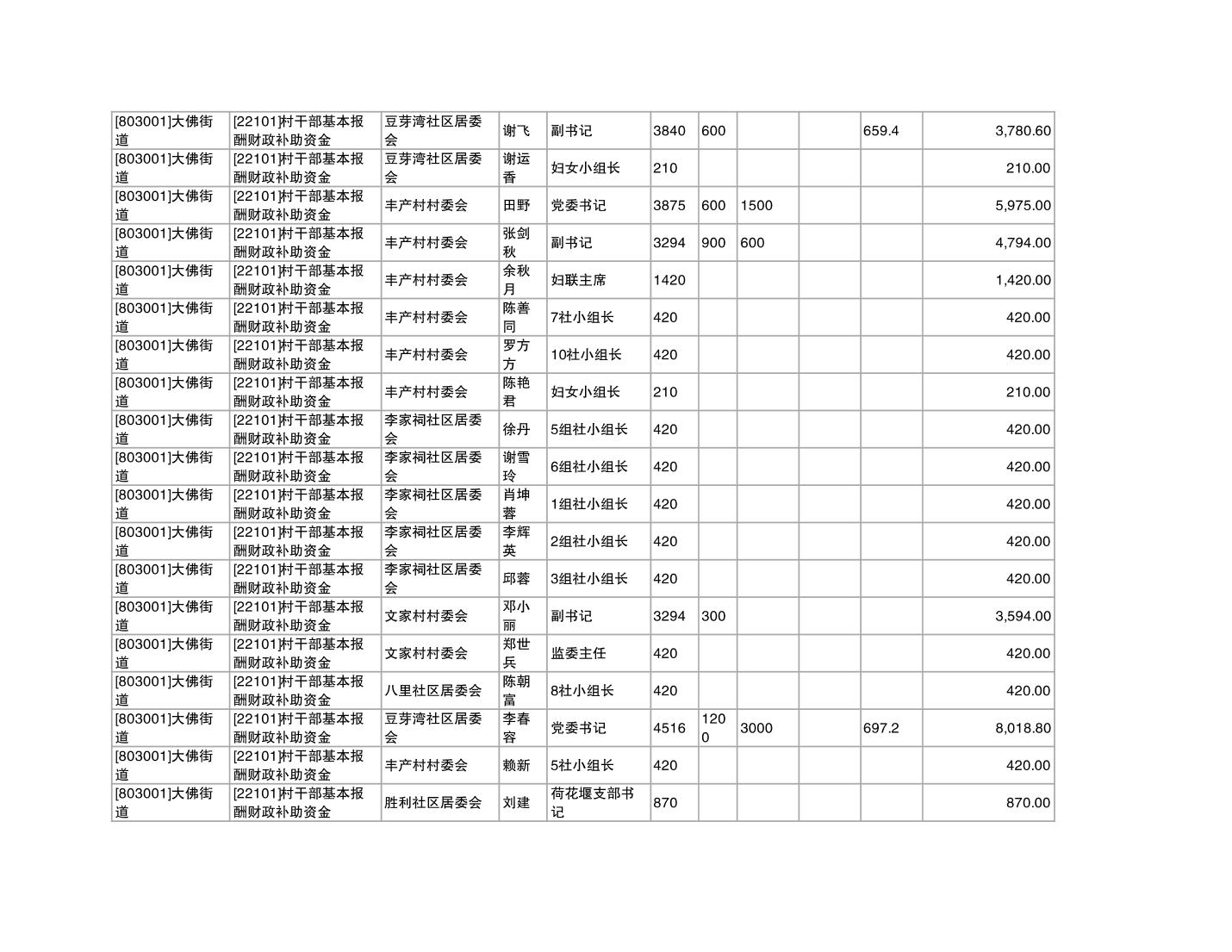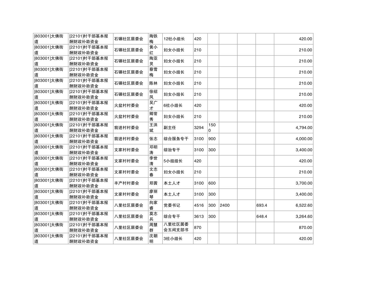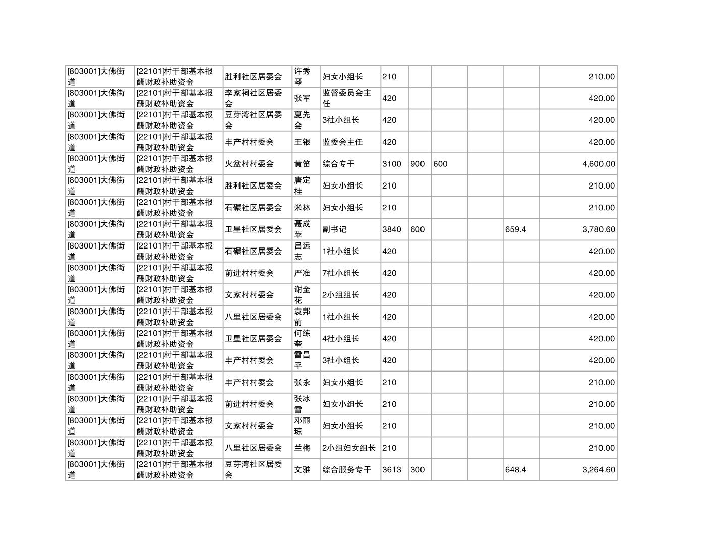 重庆市潼南区大佛街道2025年12月村社干部报酬补助公示表