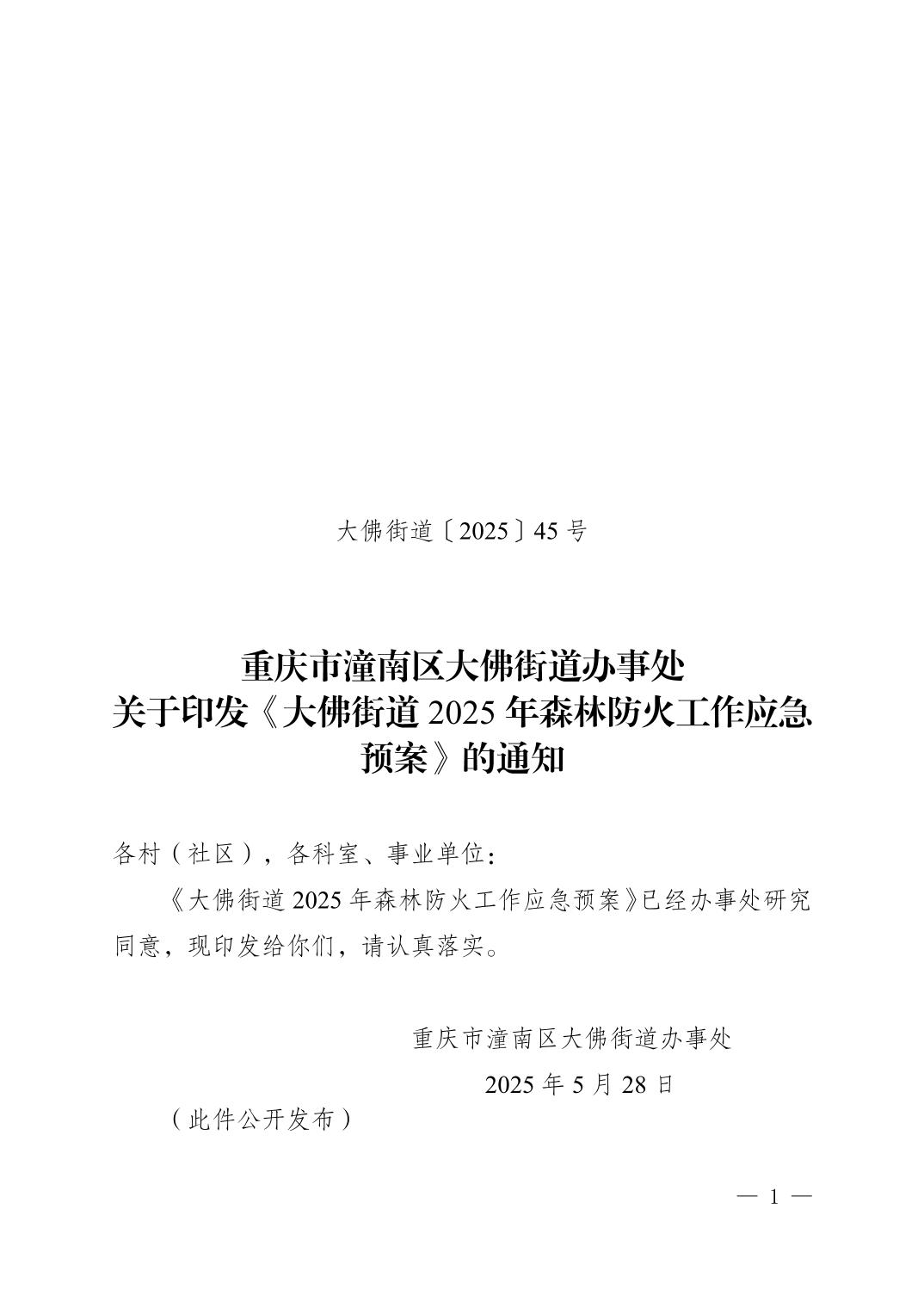 重庆市潼南区大佛街道办事处关于印发《2025年森林防火工作应急预案》的通知