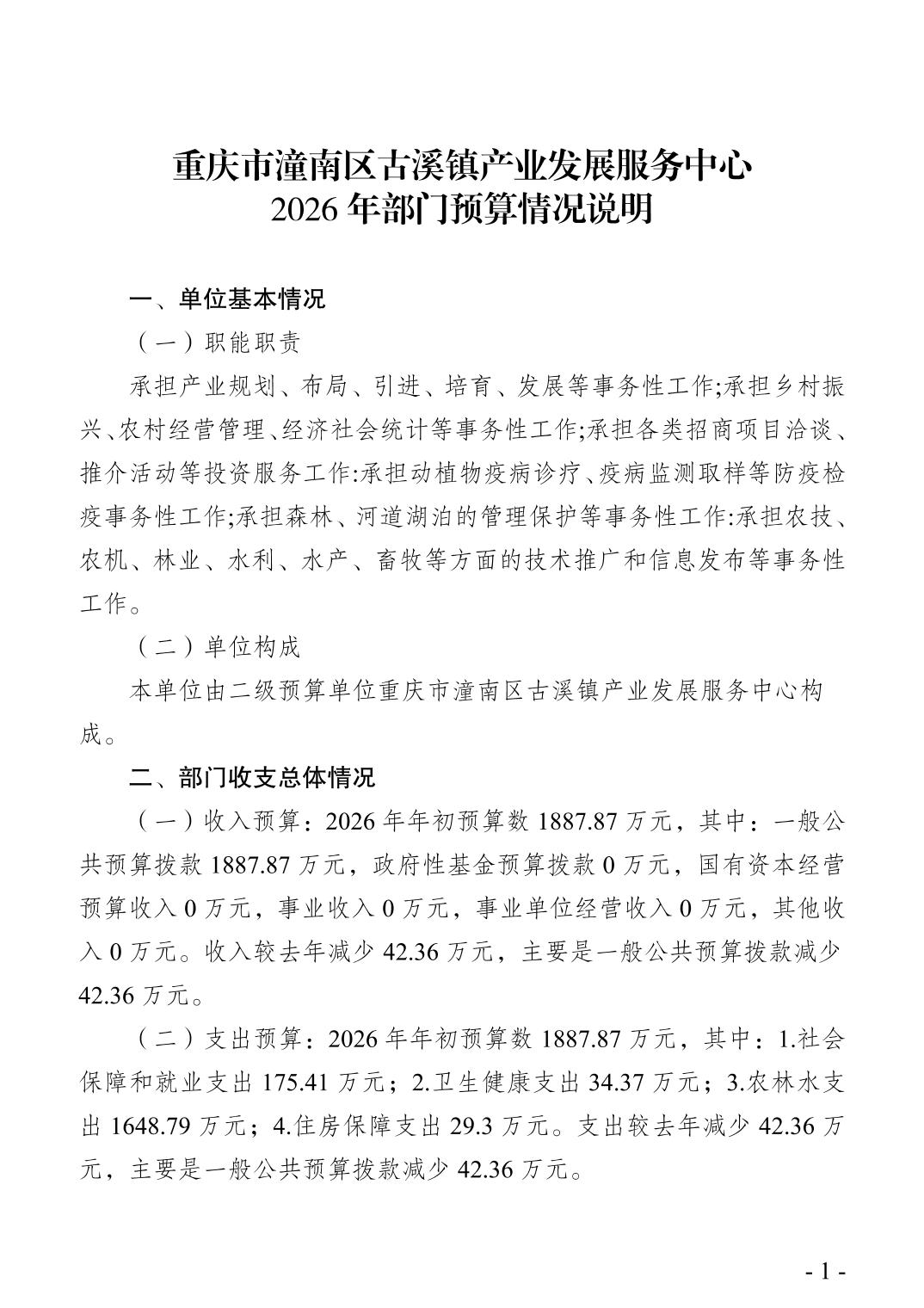 重庆市潼南区产业发展服务中心2026年部门预算情况说明