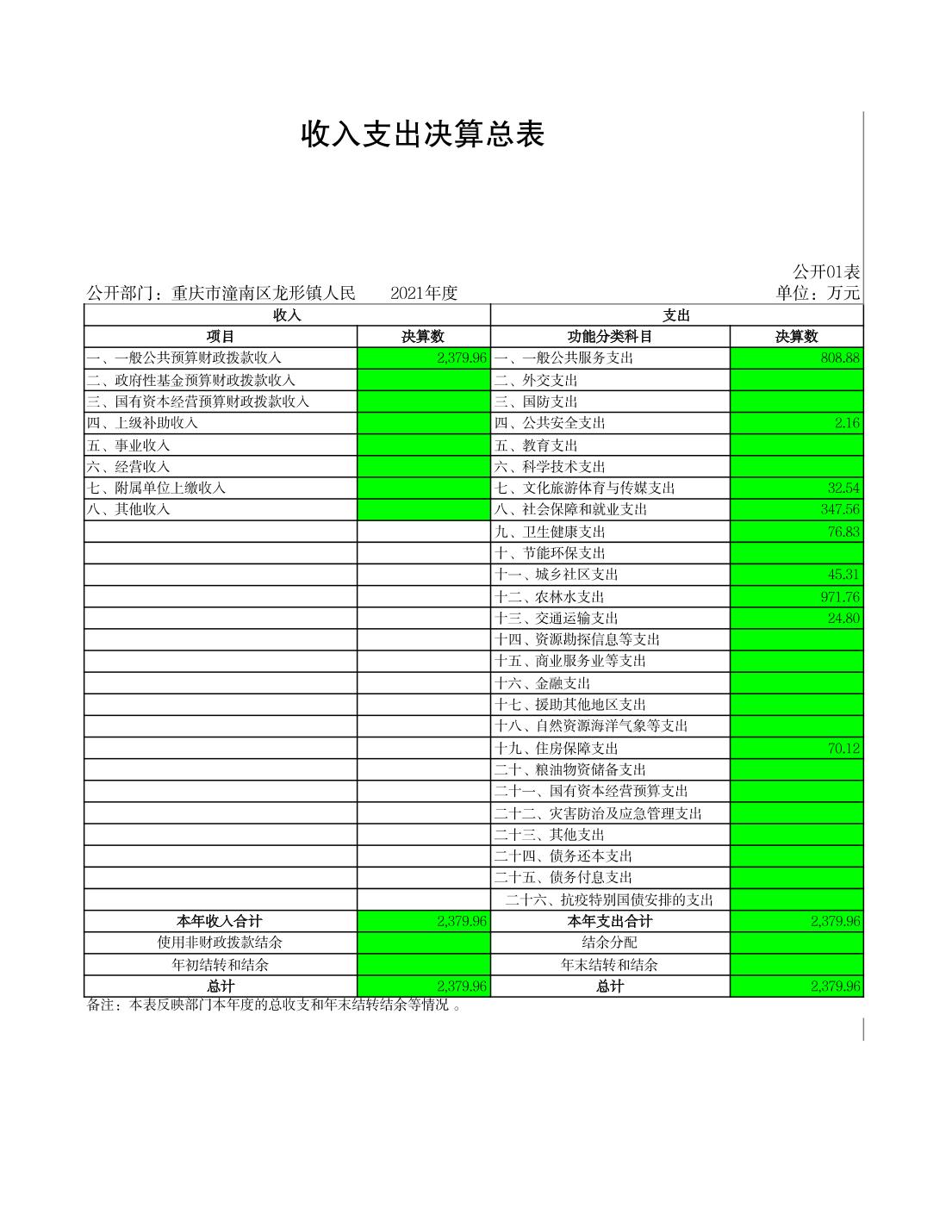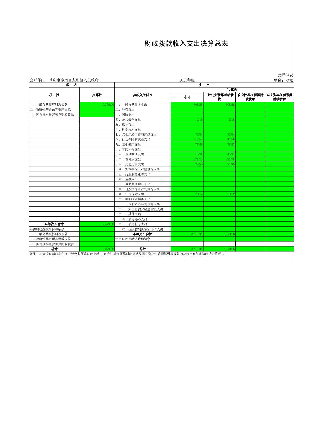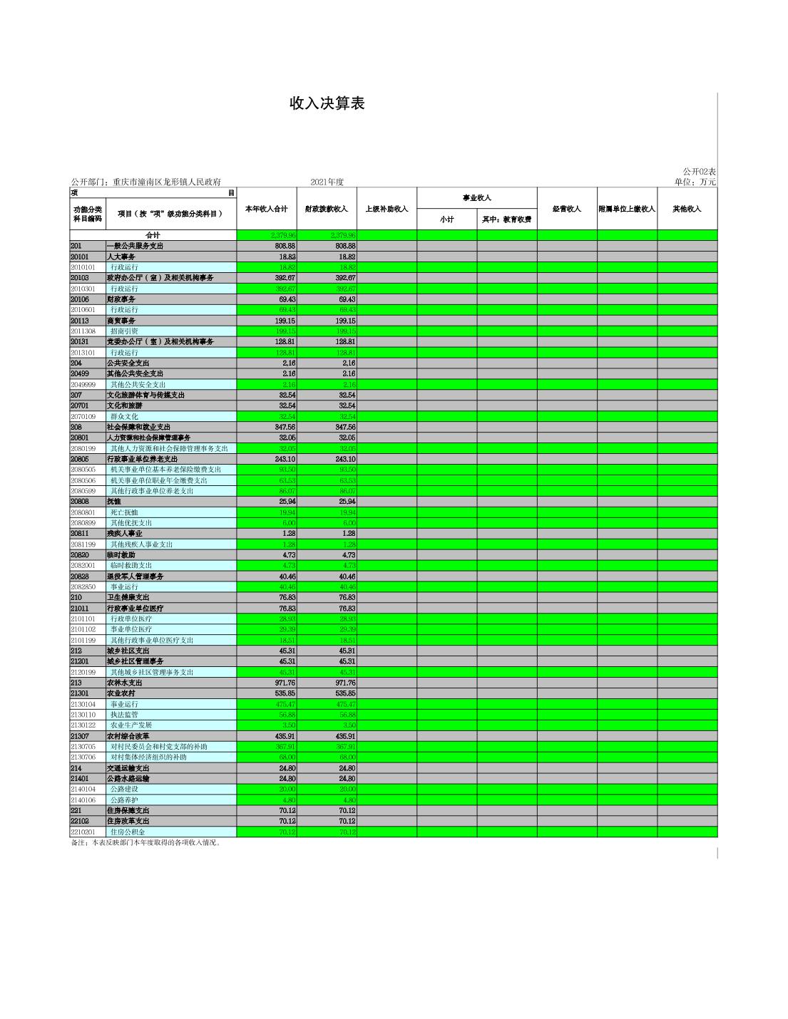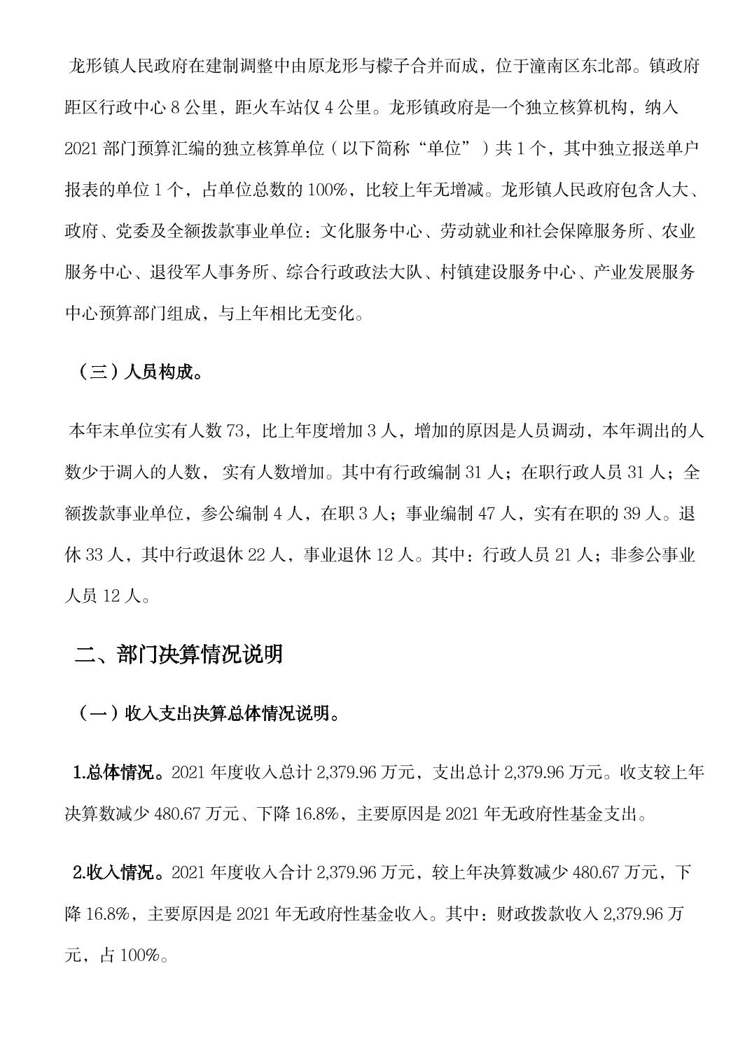 龙形镇2021年决算公开