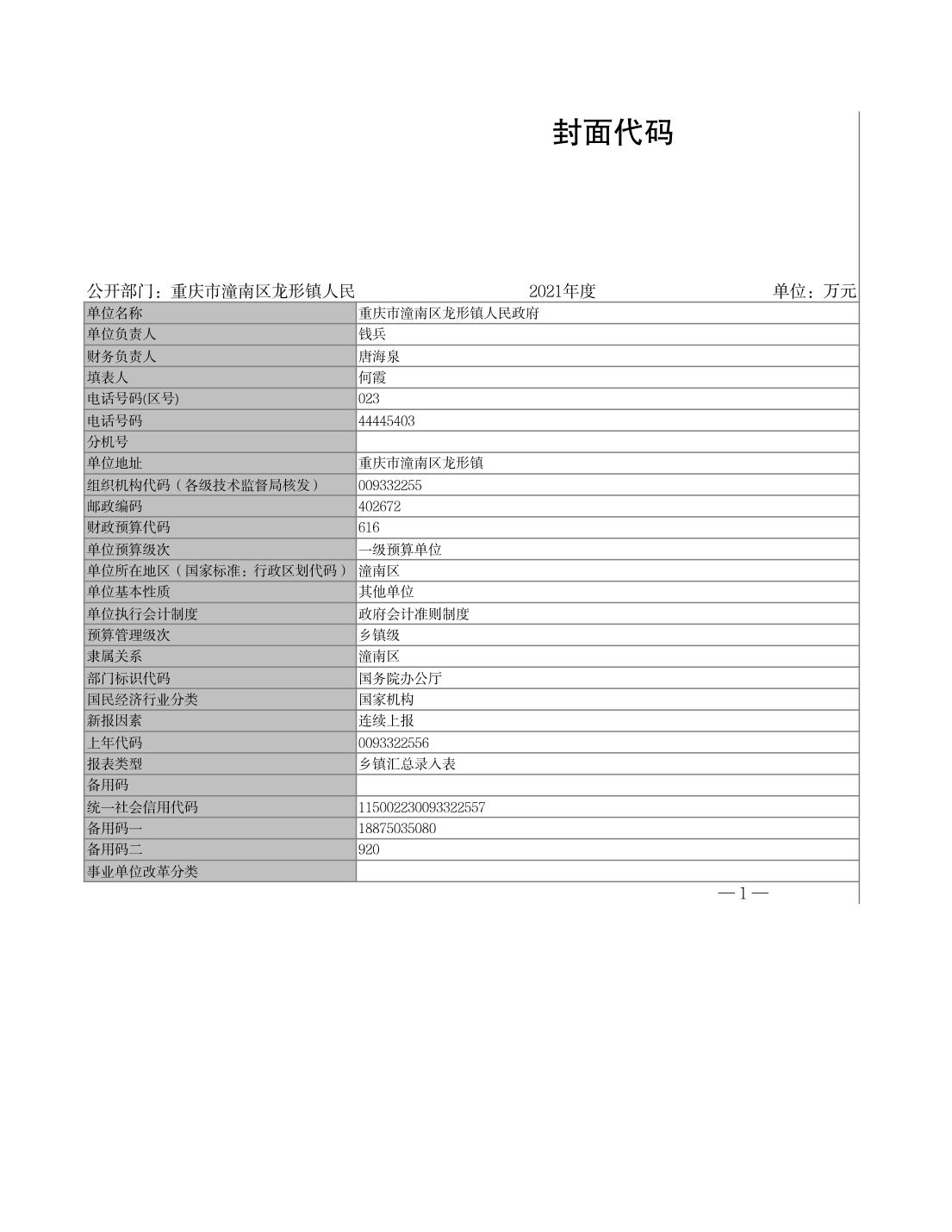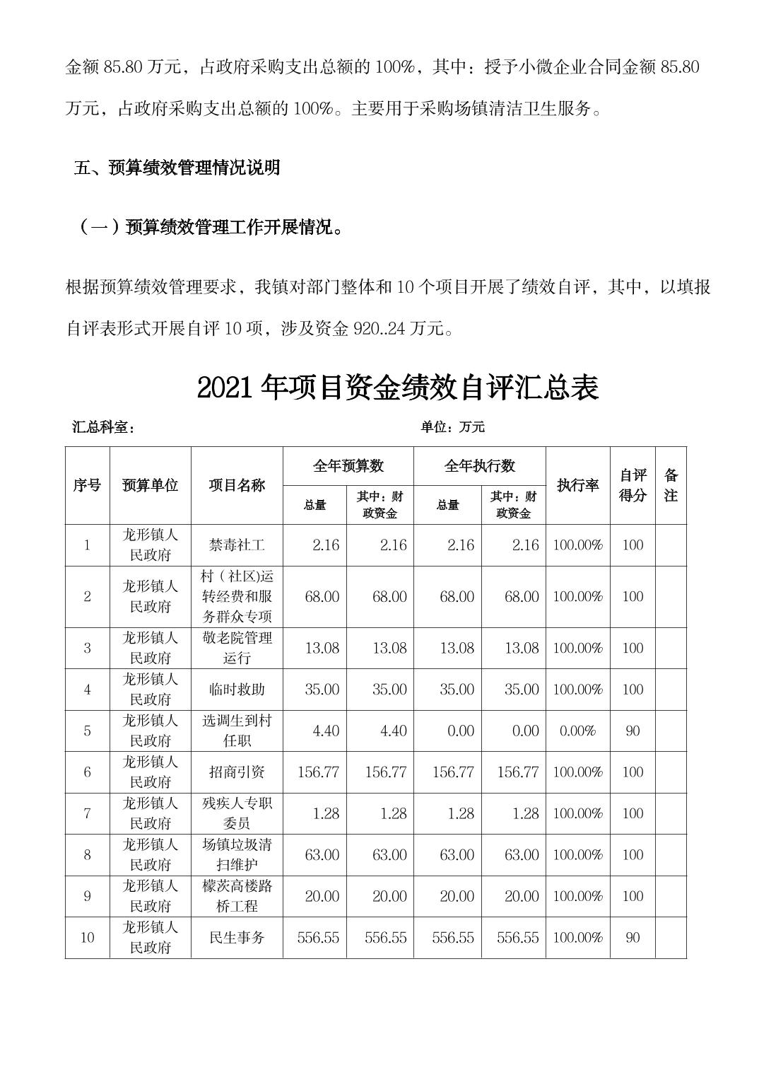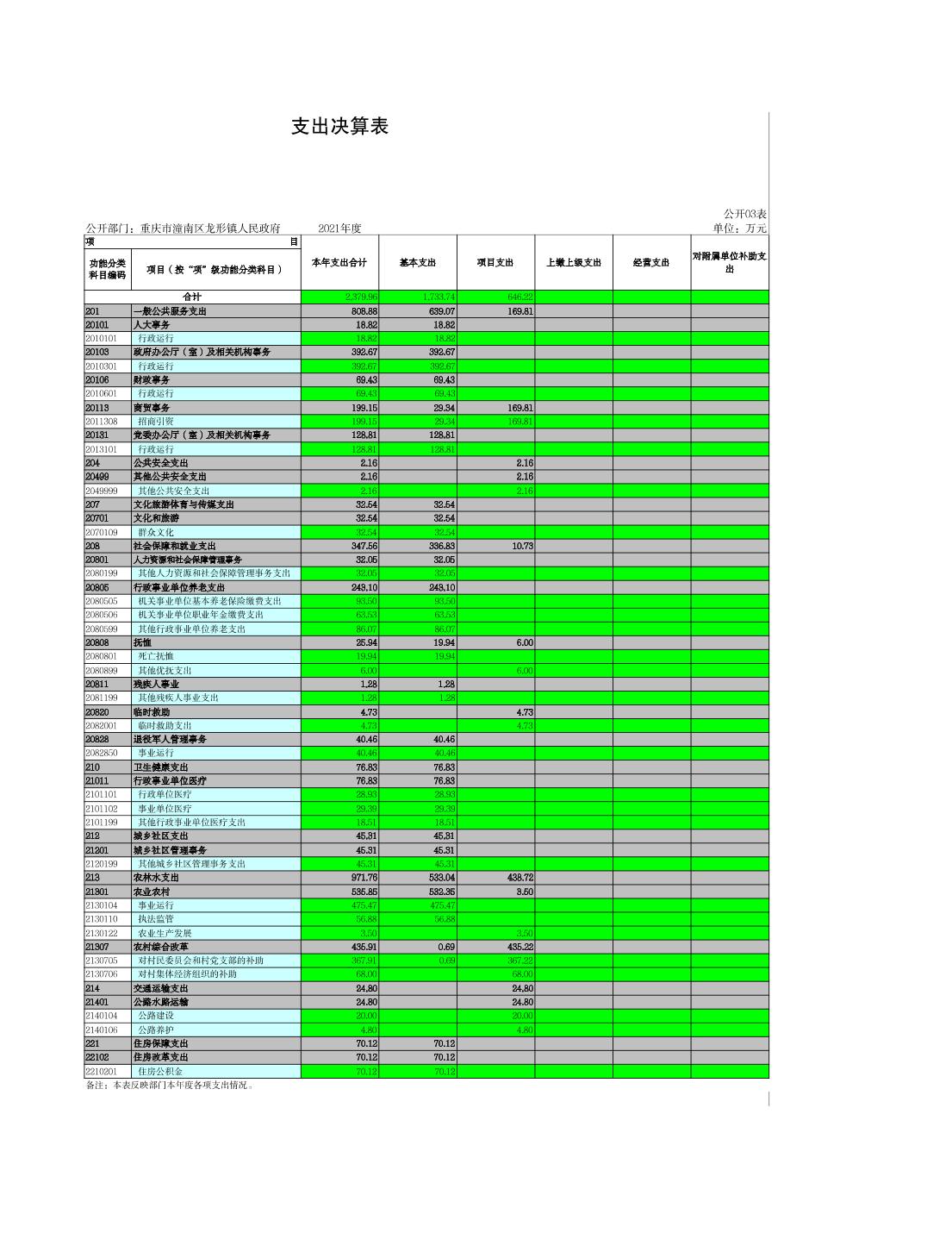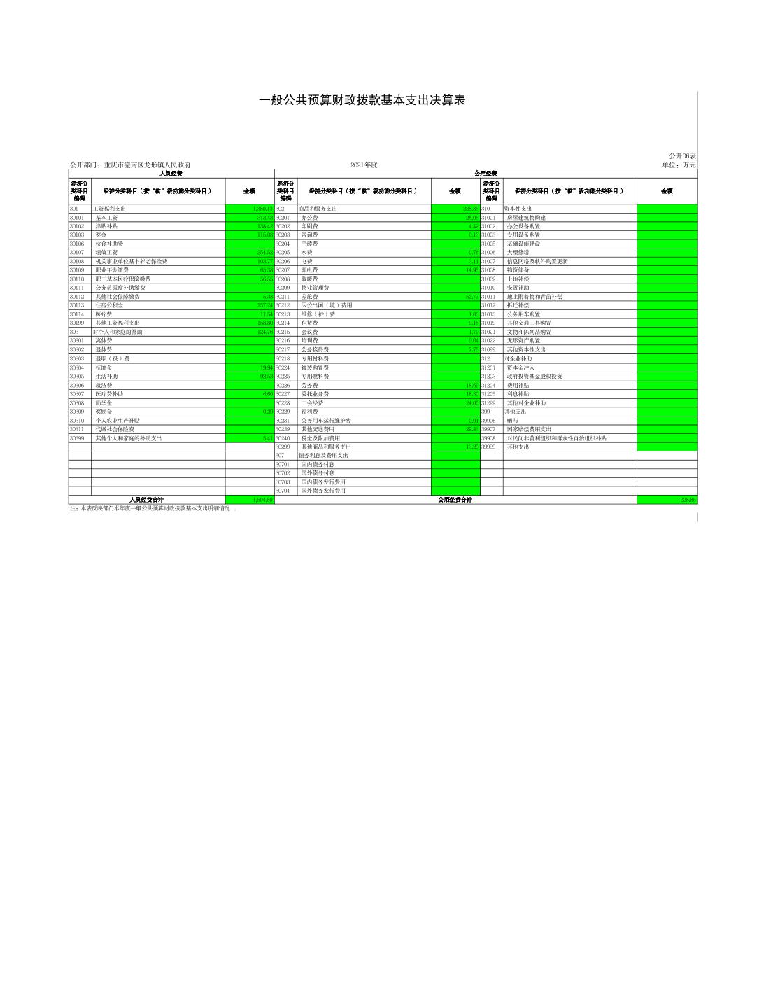 龙形镇2021年决算公开