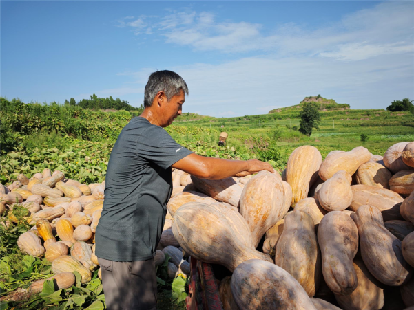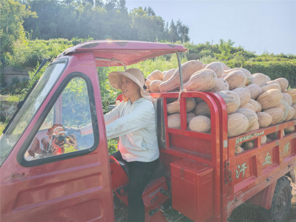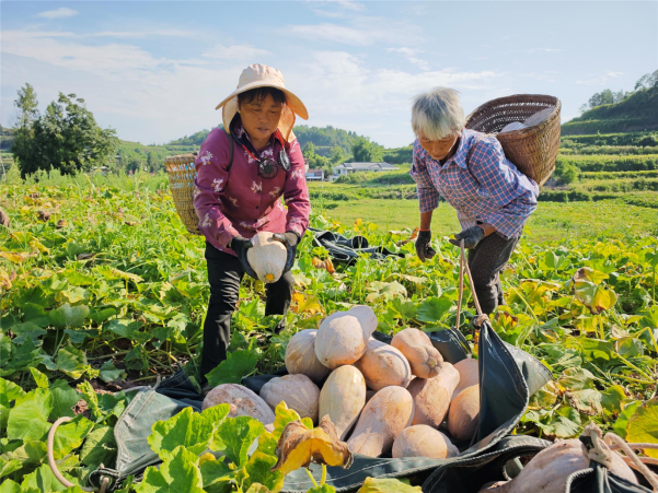南瓜种植基地不仅给当地村民带来了土地租金收入,还给他们提供了就业岗位,让他们在获得工资性收入的同时还能很好地照顾家庭。