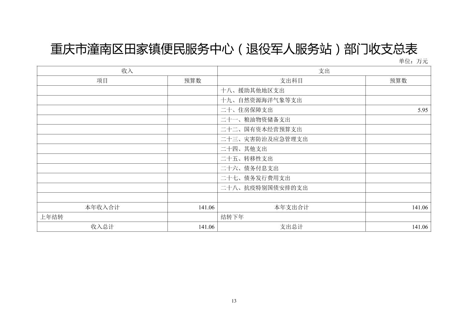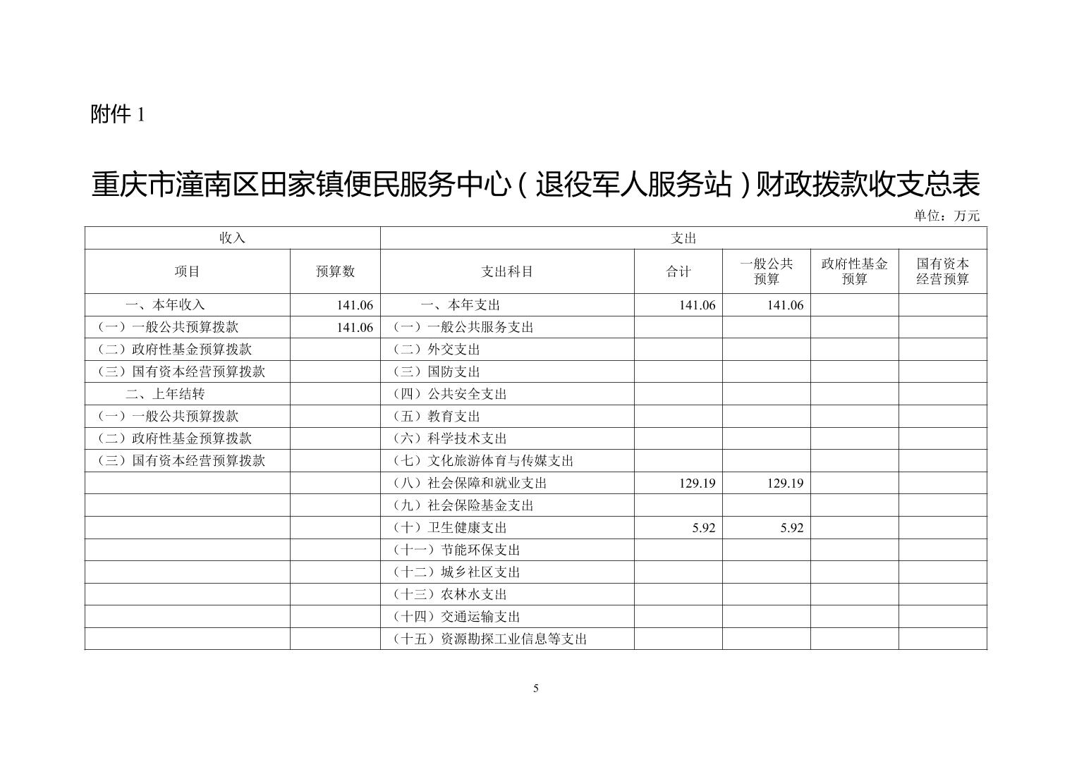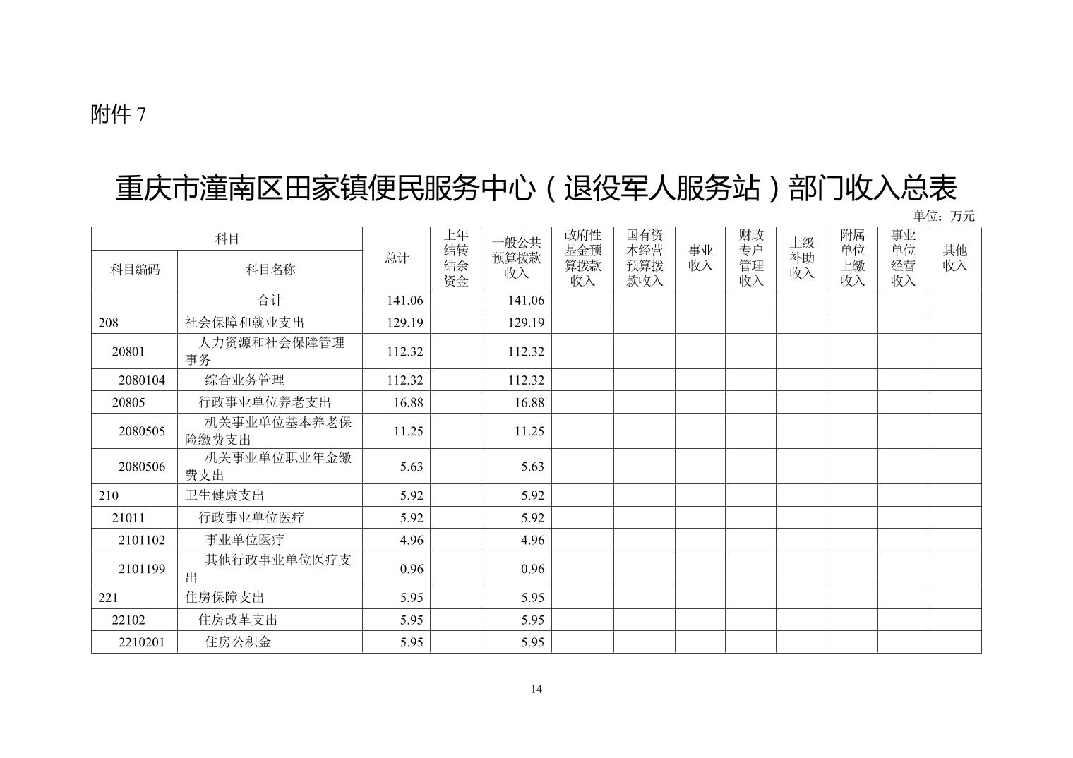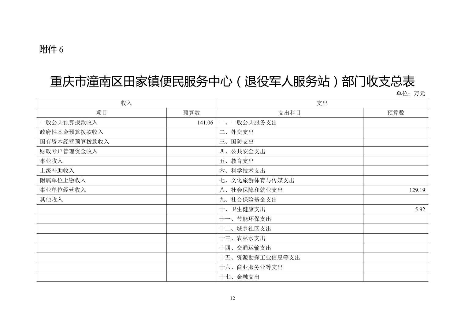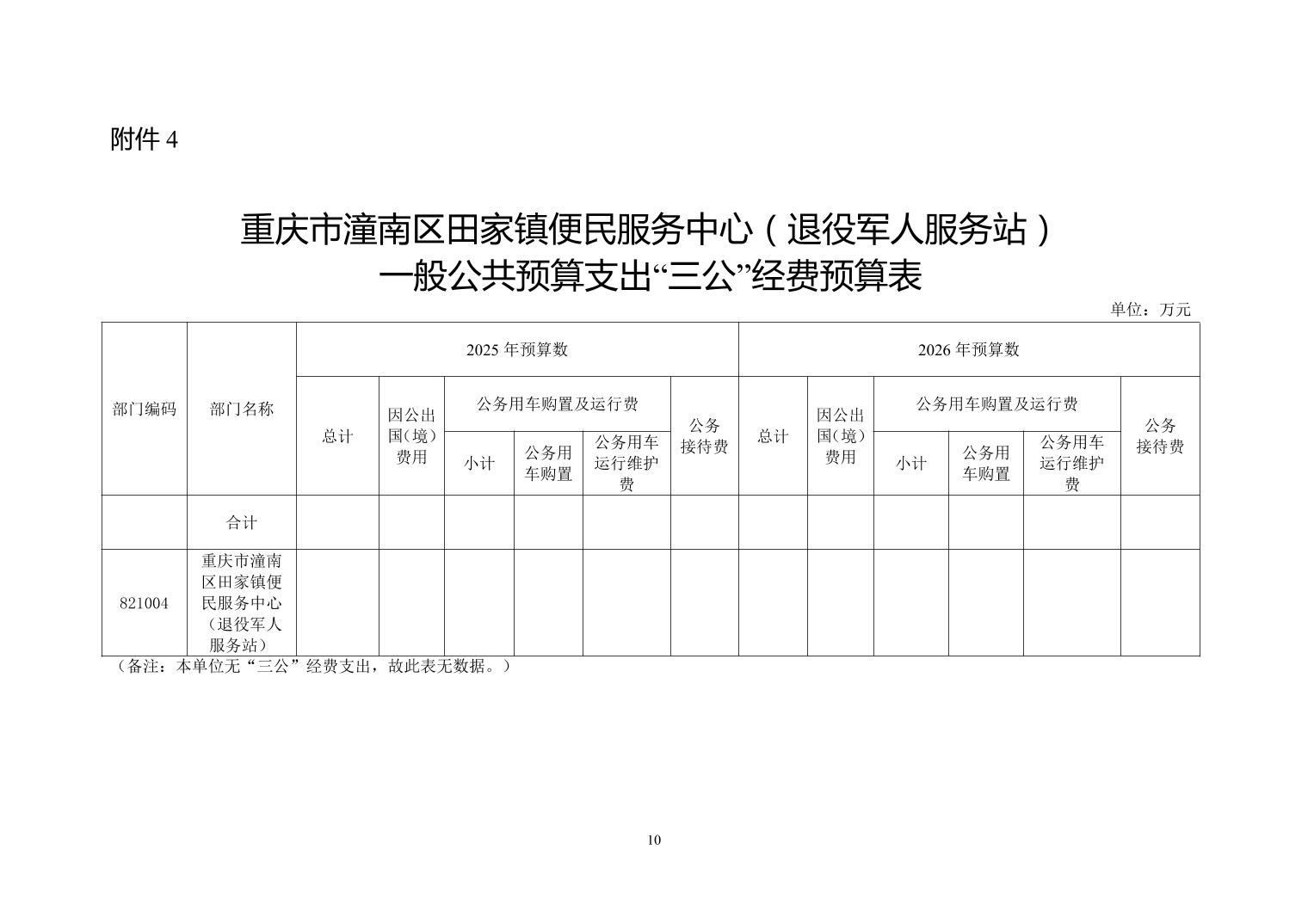 重庆市潼南区田家镇便民服务中心(退役军人服务站)2026年部门预算情况说明