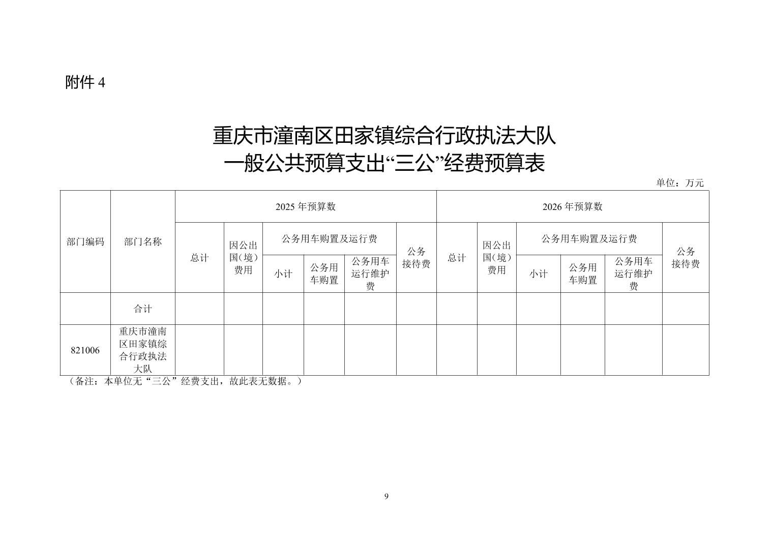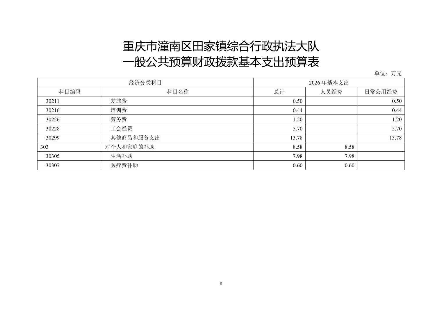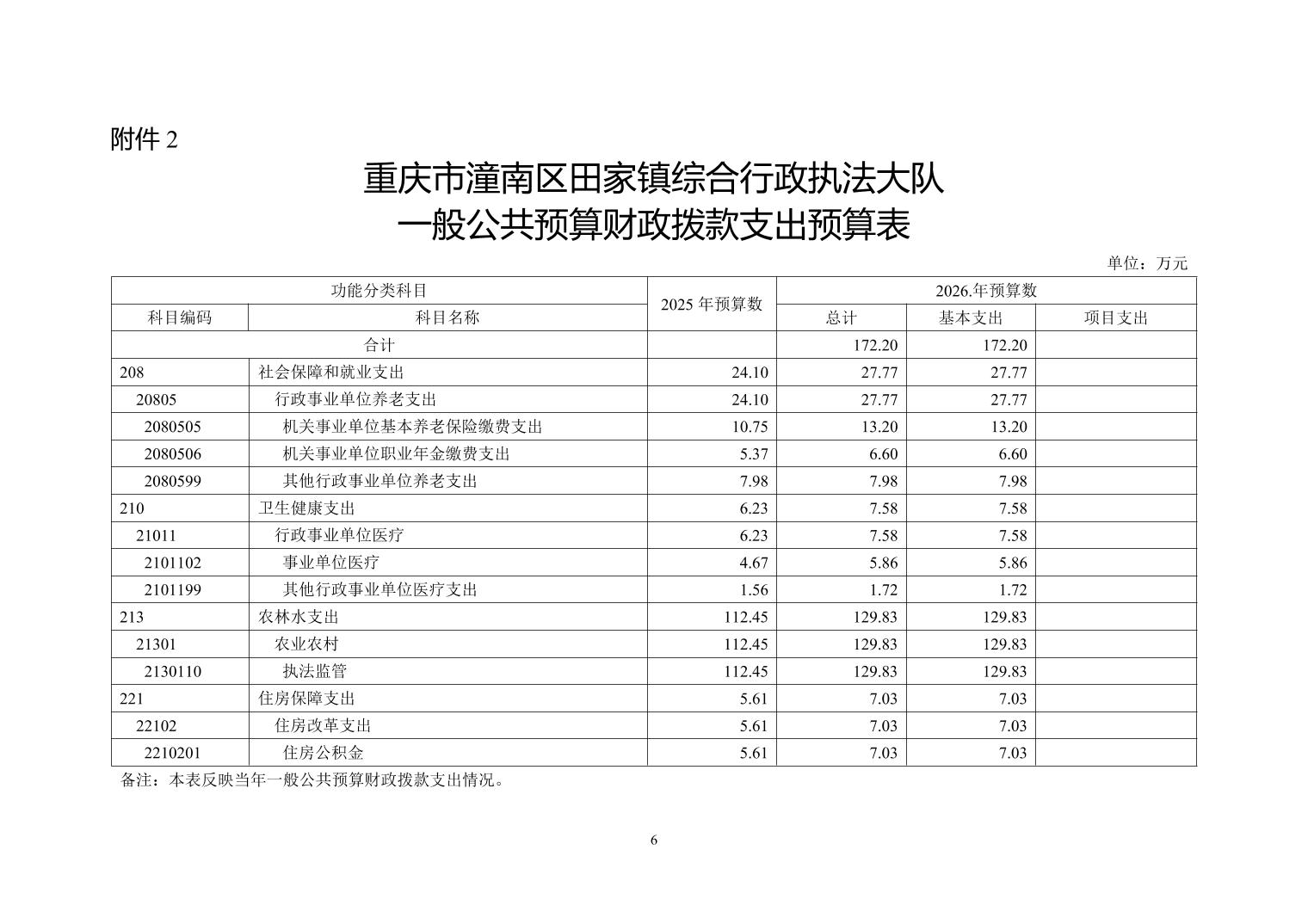 重庆市潼南区田家镇综合行政执法大队2026年部门预算情况说明