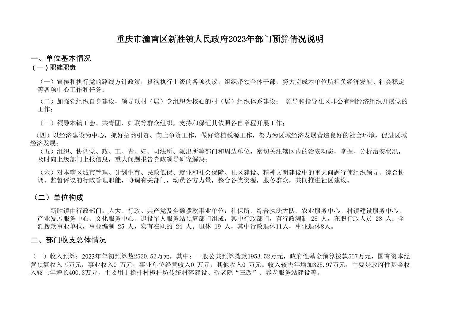 重庆市潼南区新胜镇人民政府2023年部门预算情况说明