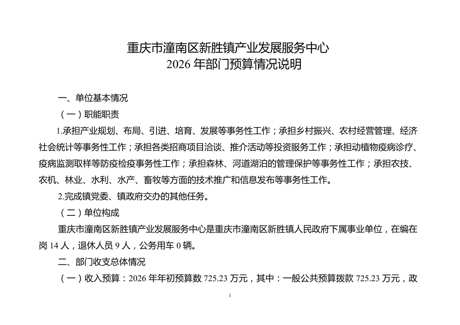 重庆市潼南区新胜镇产业发展服务中心2026年部门预算公开