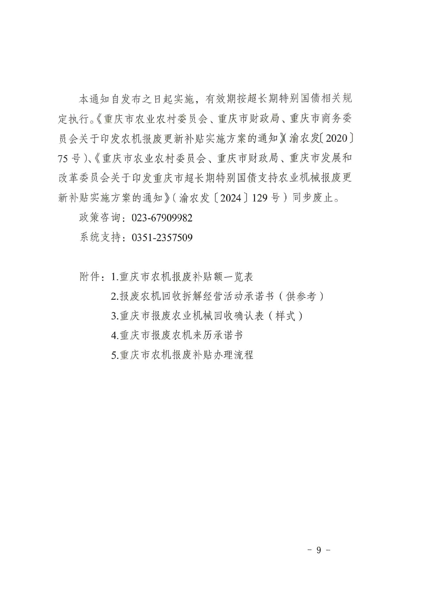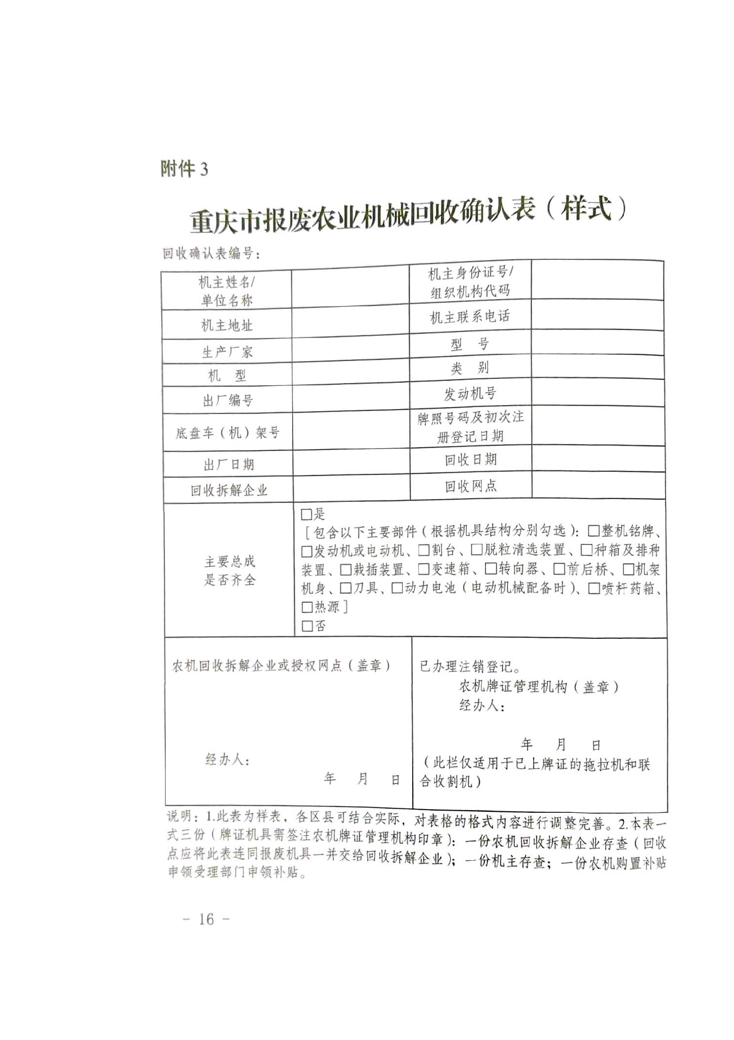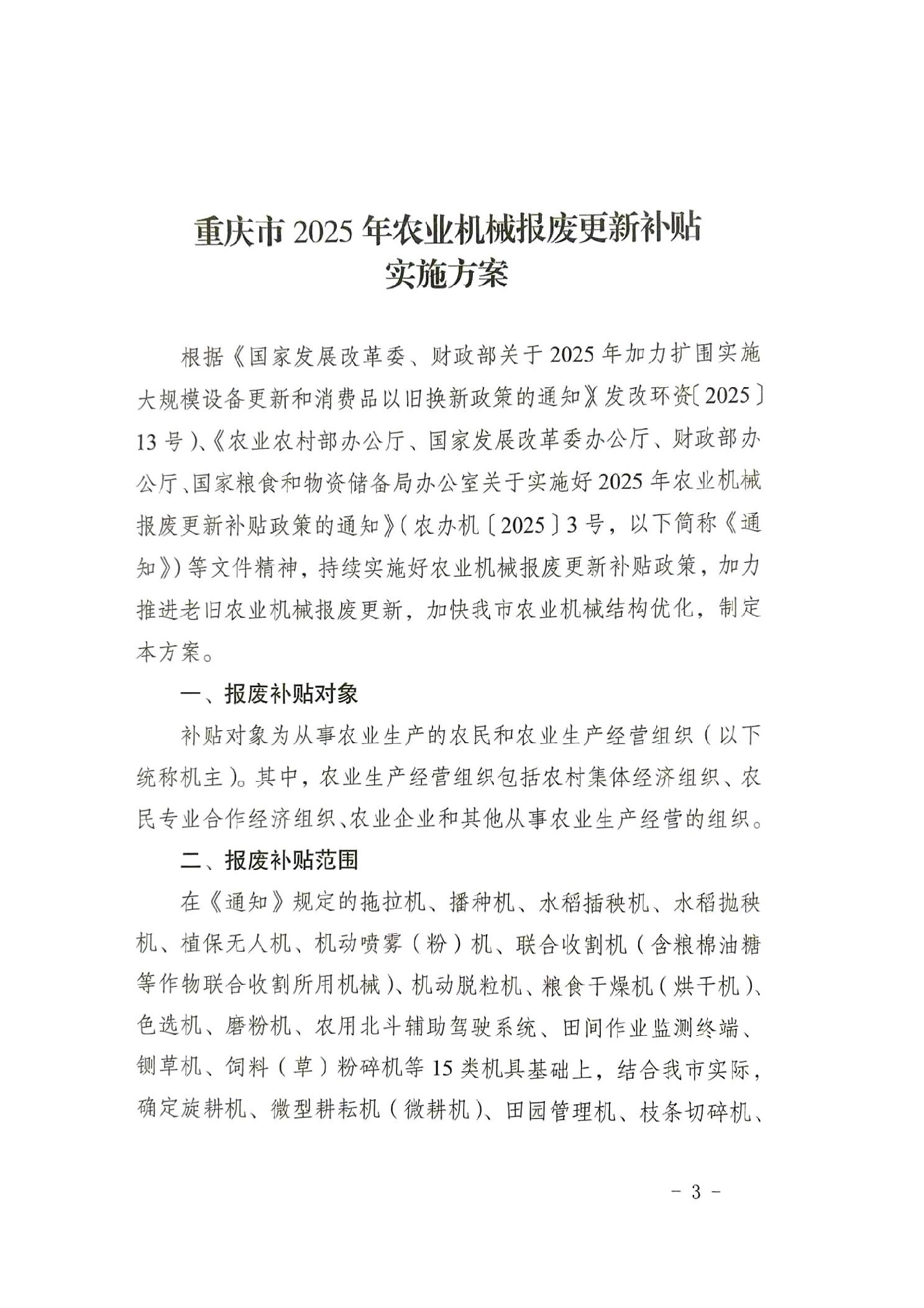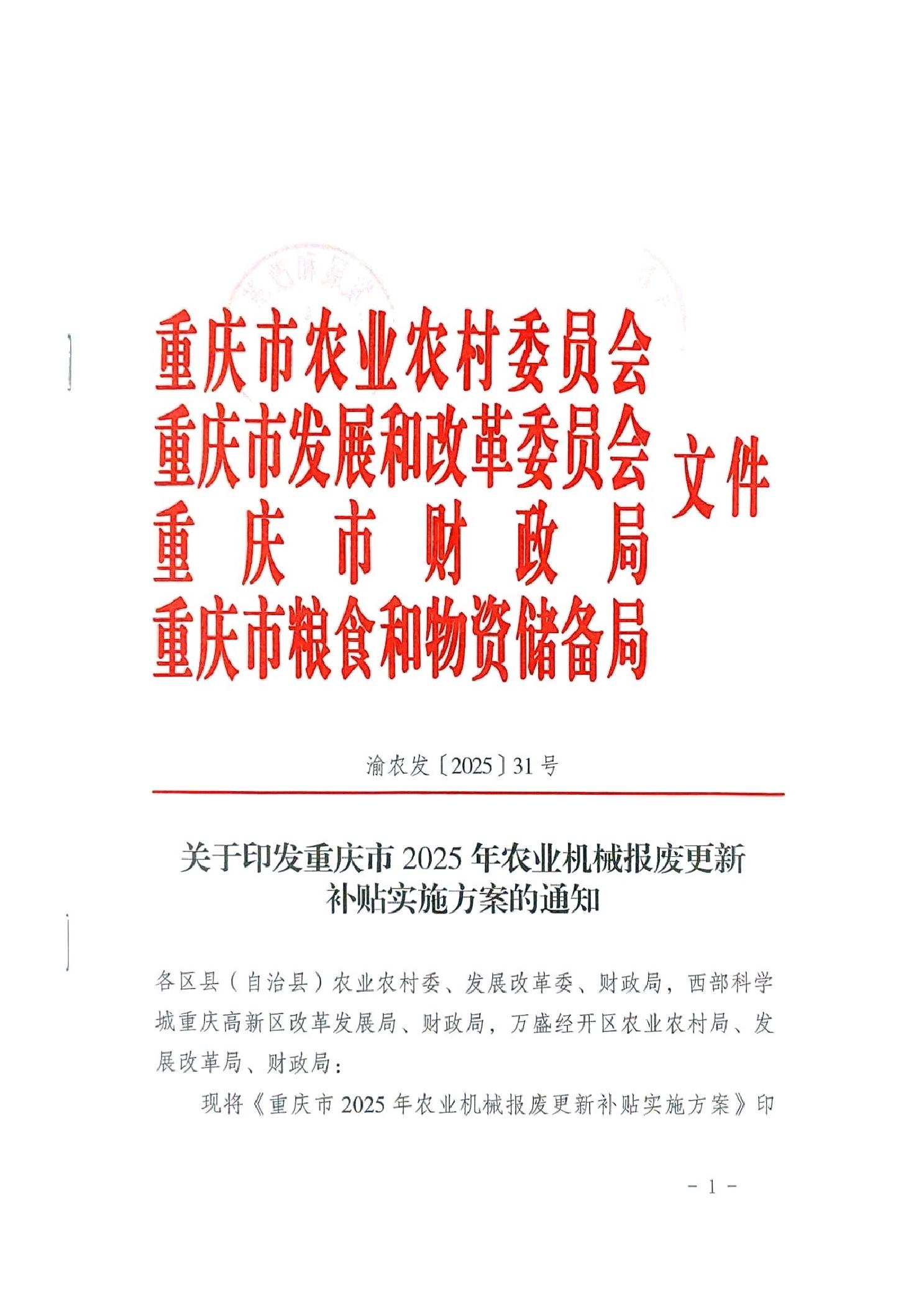 渝农发〔2025〕31号 关于印发重庆市2025年农业机械报废更新补贴实施方案的通知