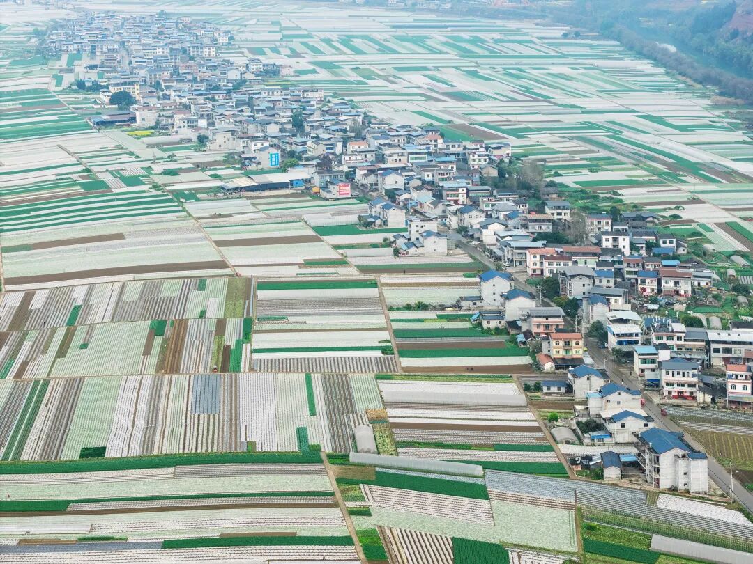 ▲2026年3月9日,正在进行春收春播的潼南区桂林蔬菜基地(无人机照片)。记者 张春晓 实习生 李子英 摄